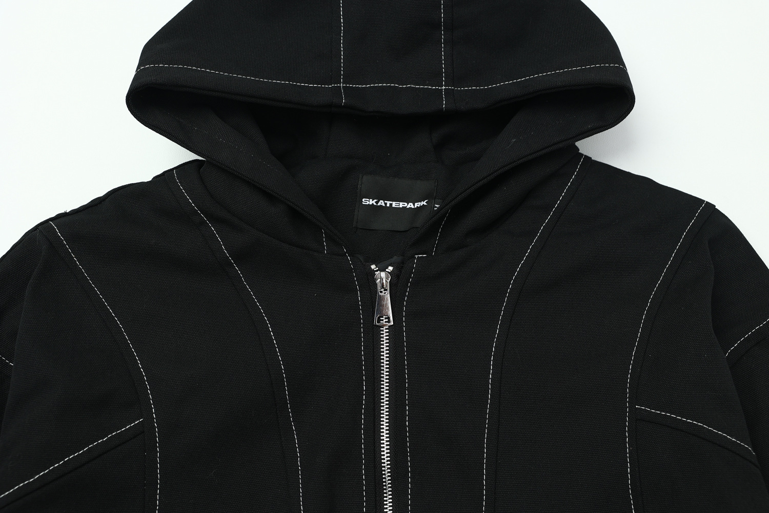 Metal Buttons Patchwork Hooded Jacket WN16109
