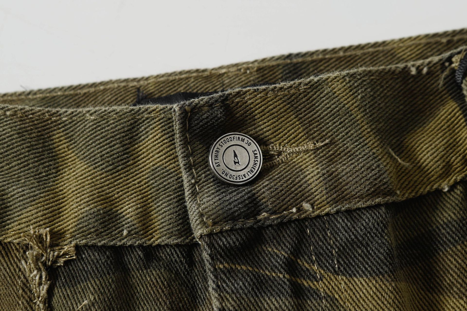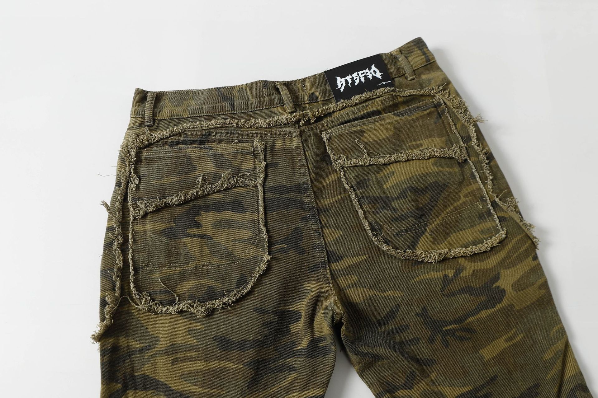Camouflage Raw Hem Wash Flare Denim Jeans WN16191