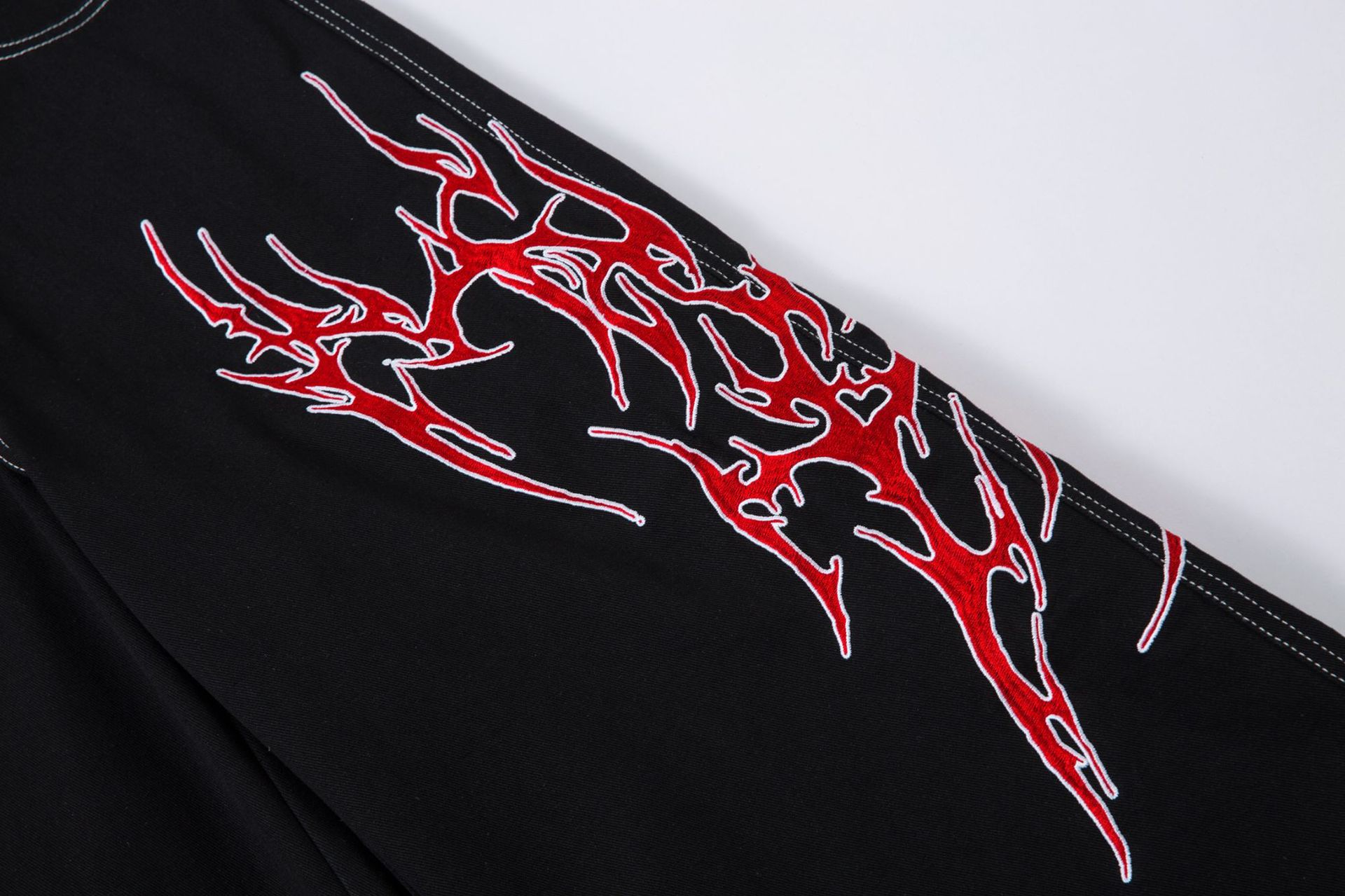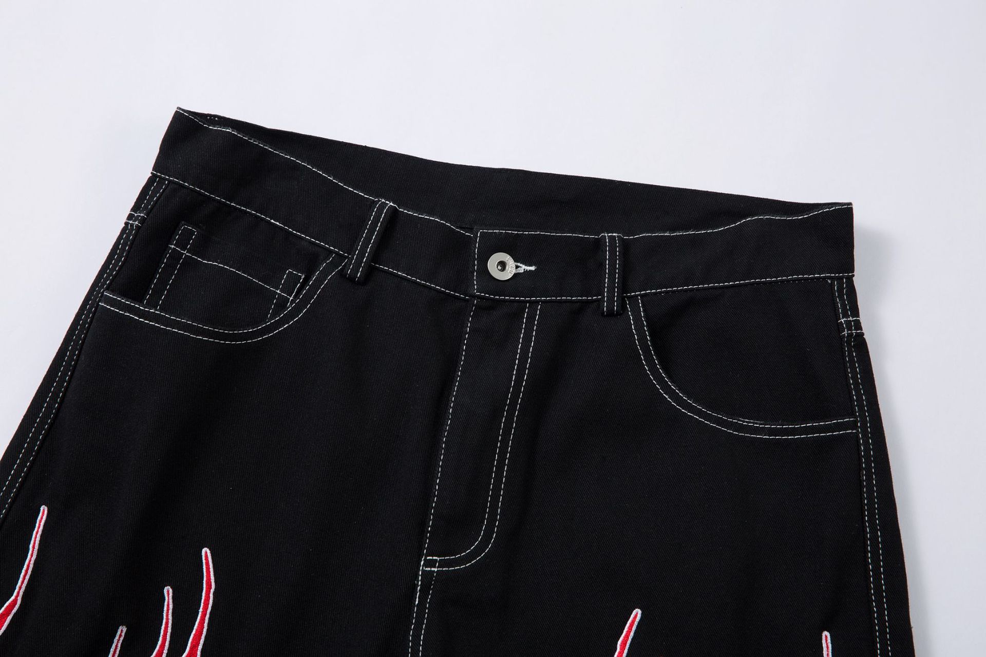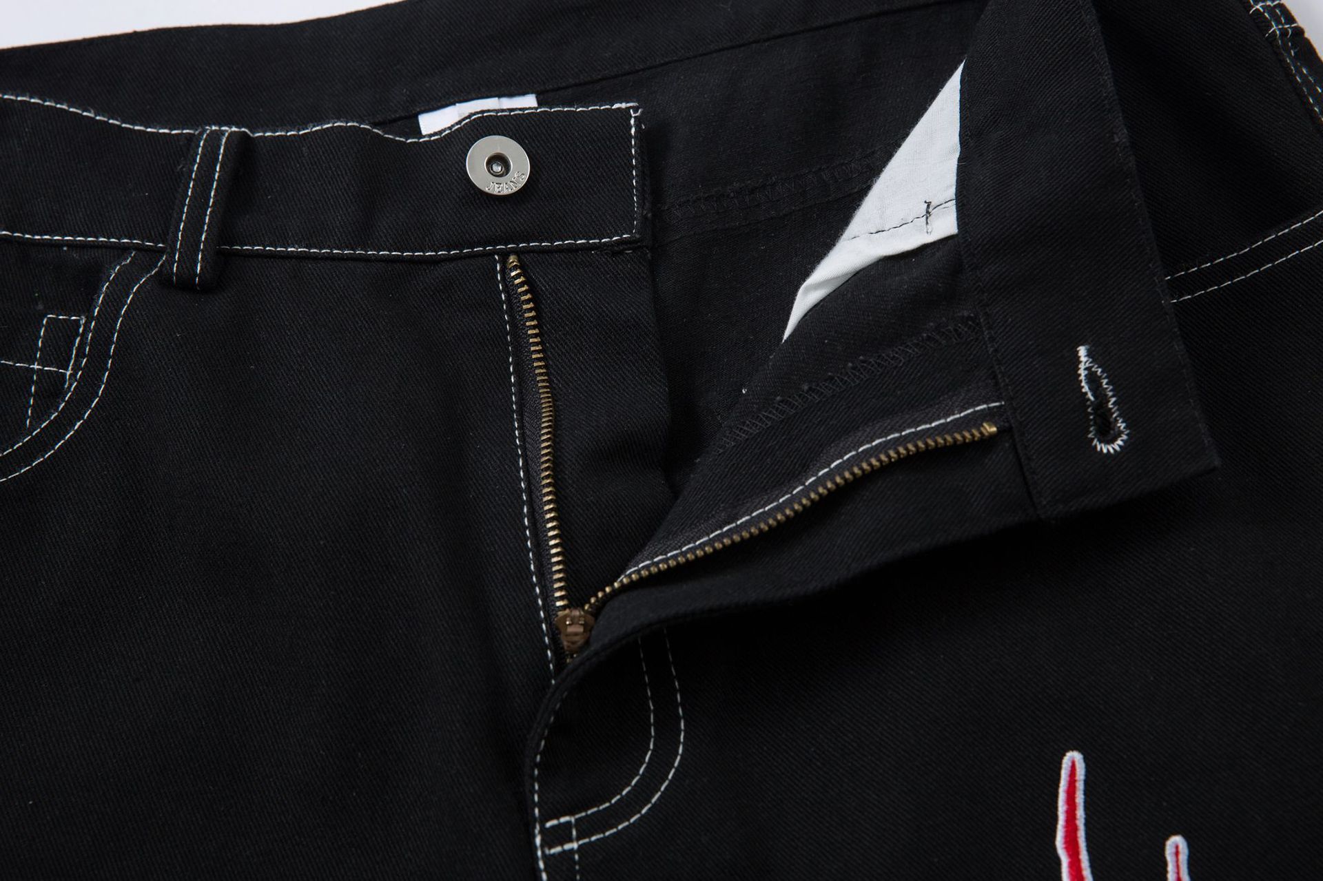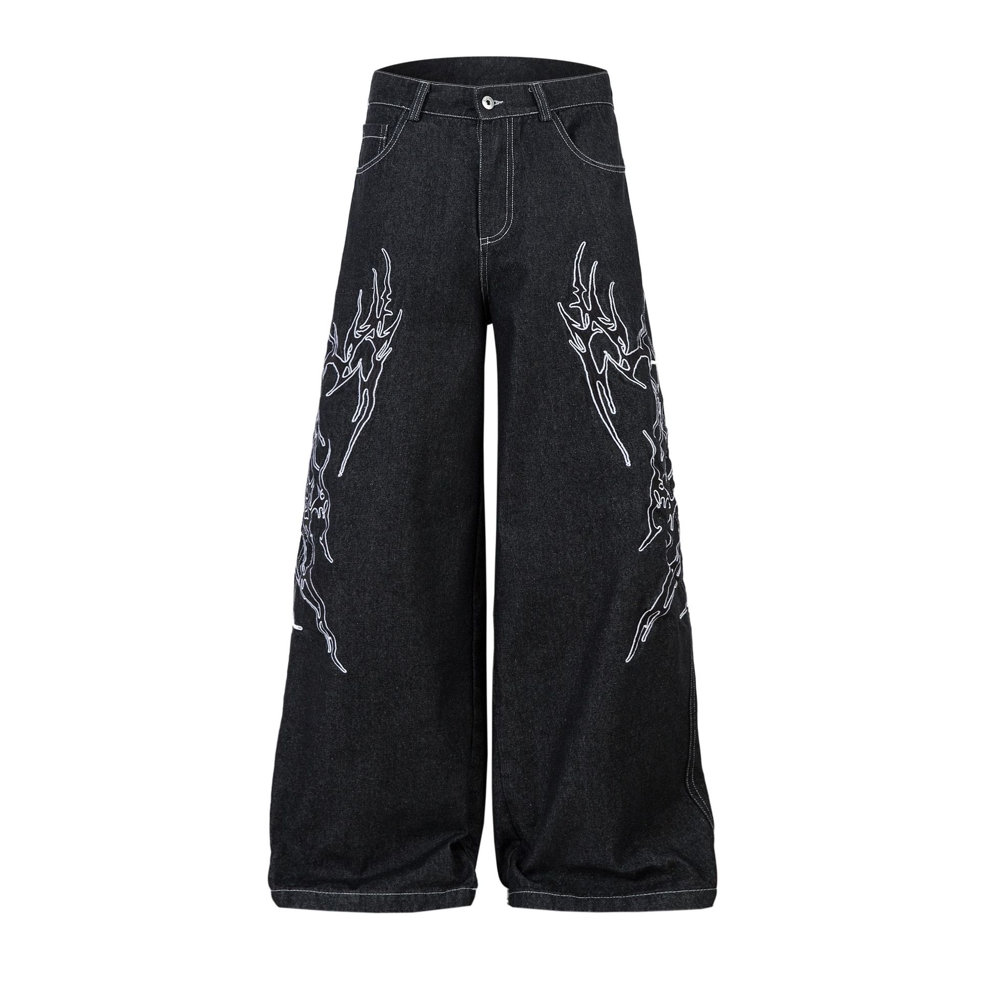 Heavyweight Embroidery Wide Leg Denim Jeans WN16195