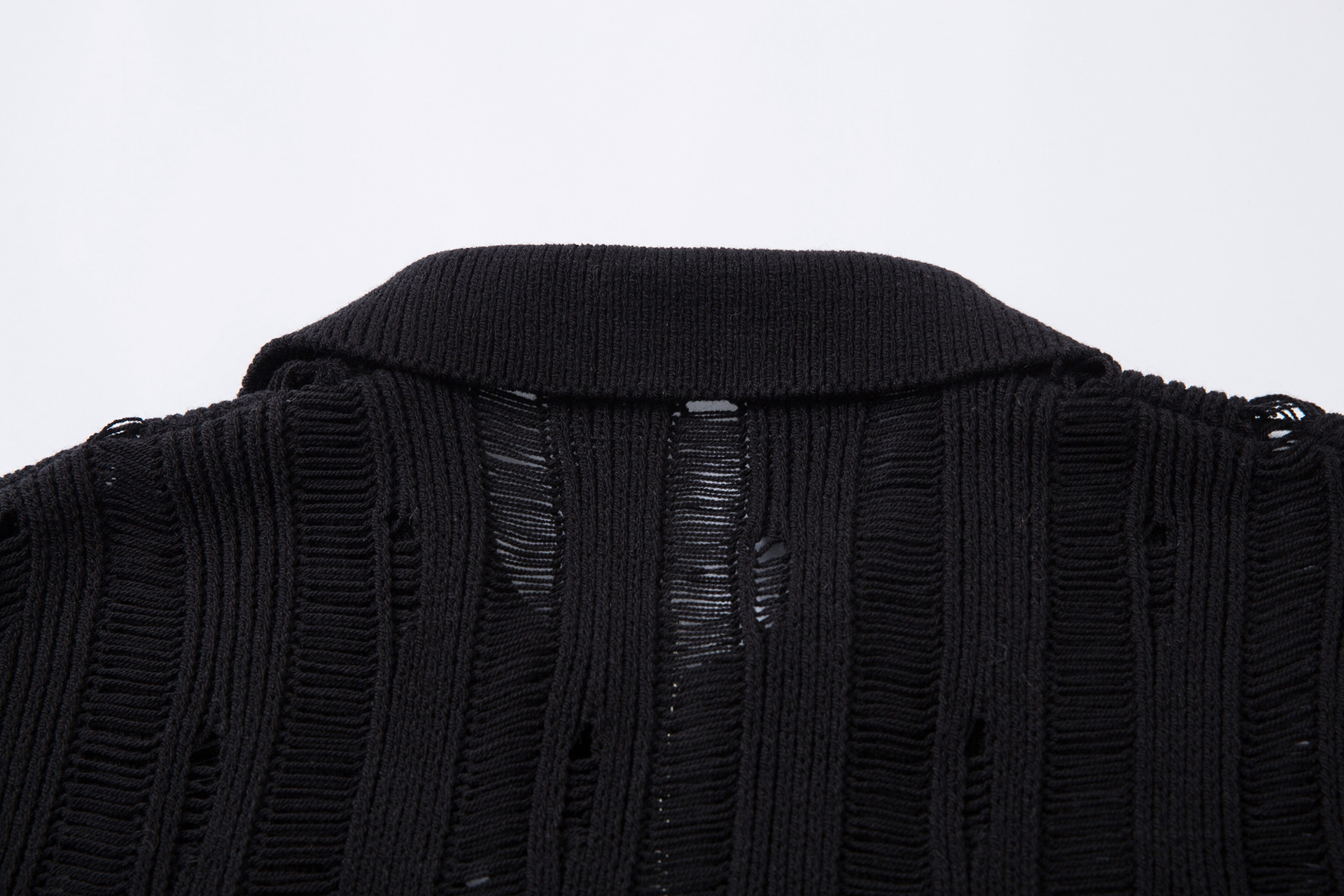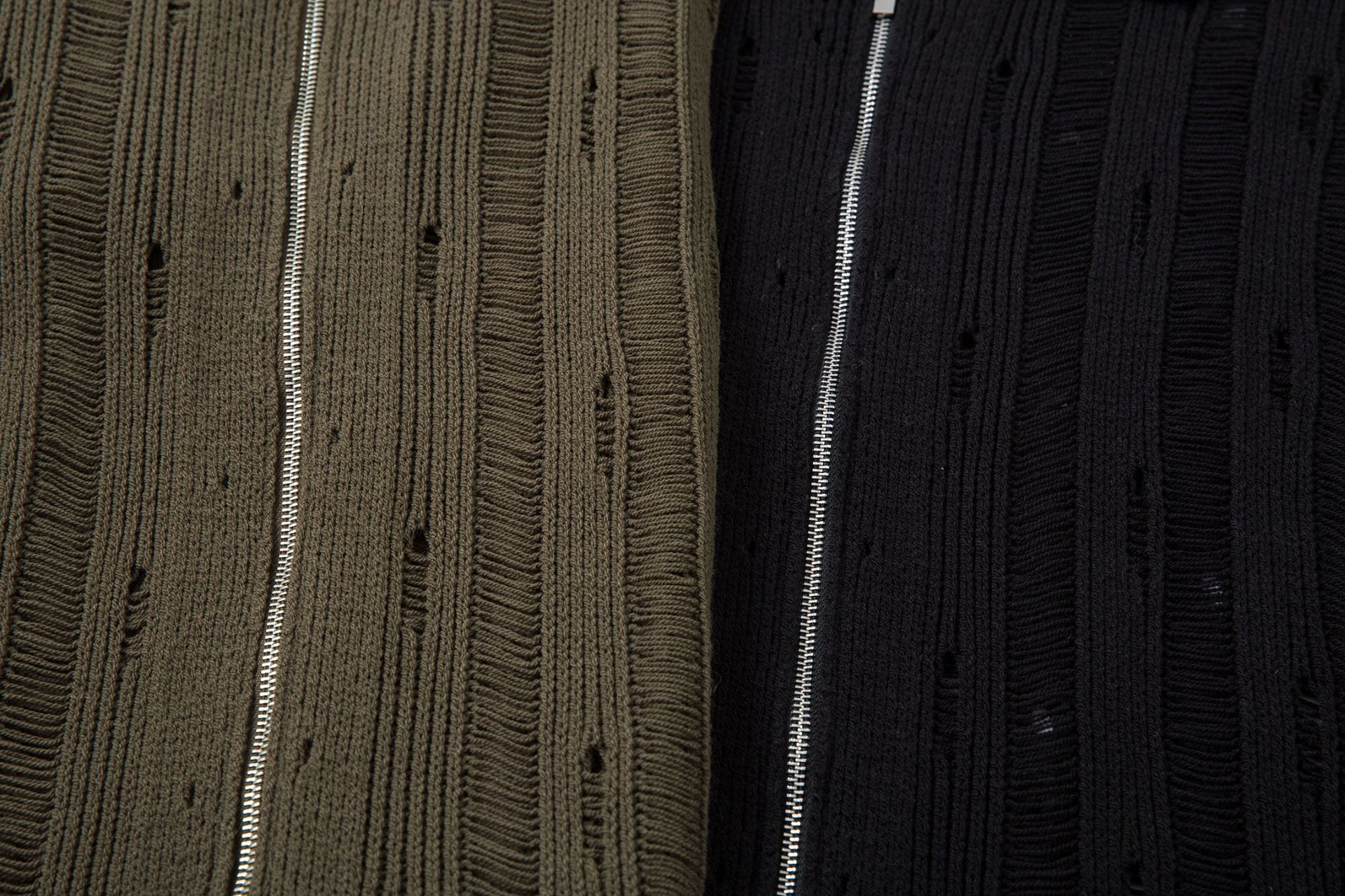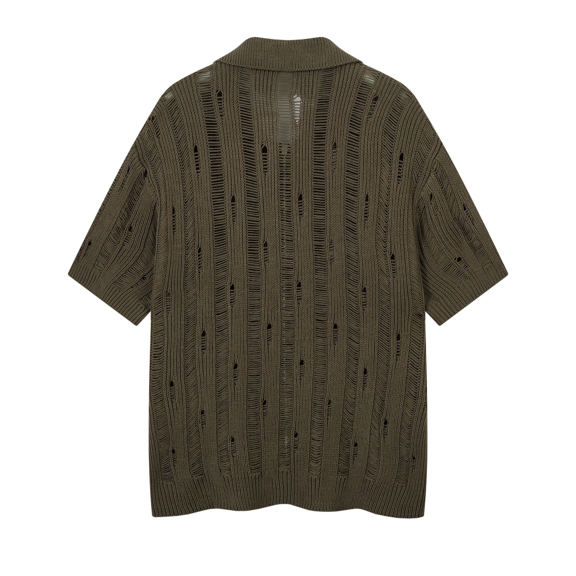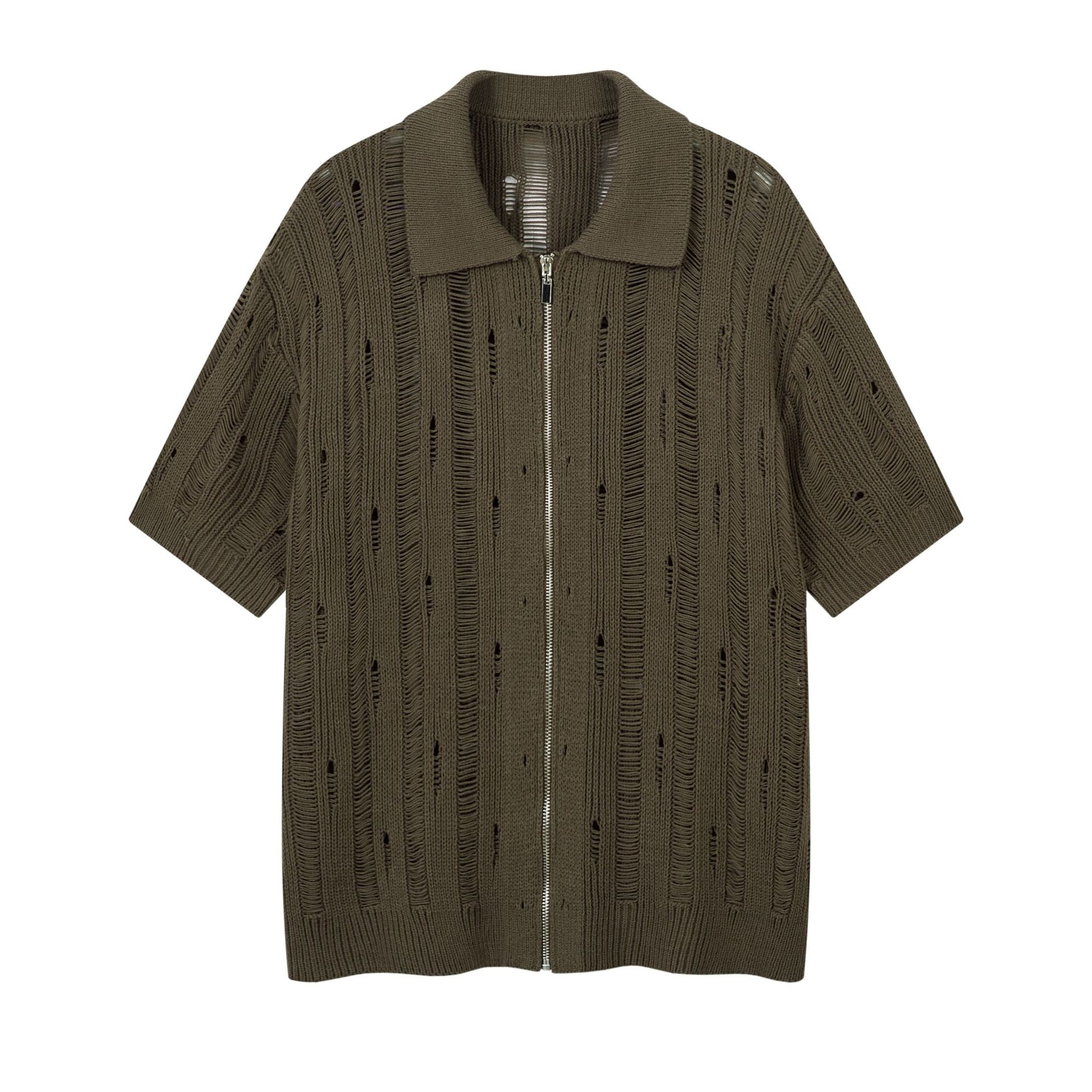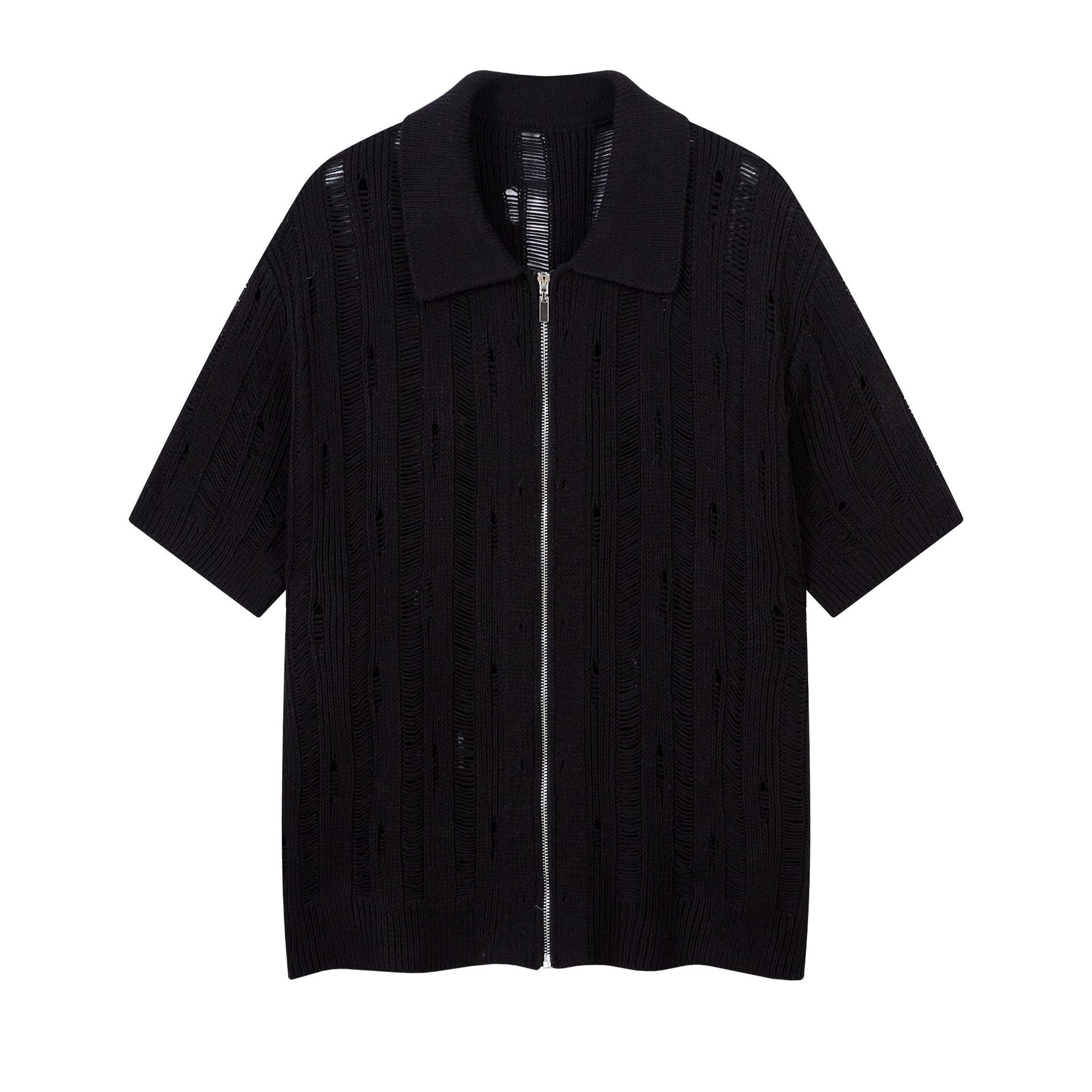 Damage Design Zipper Short Sleeve Knit Shirt WN16198