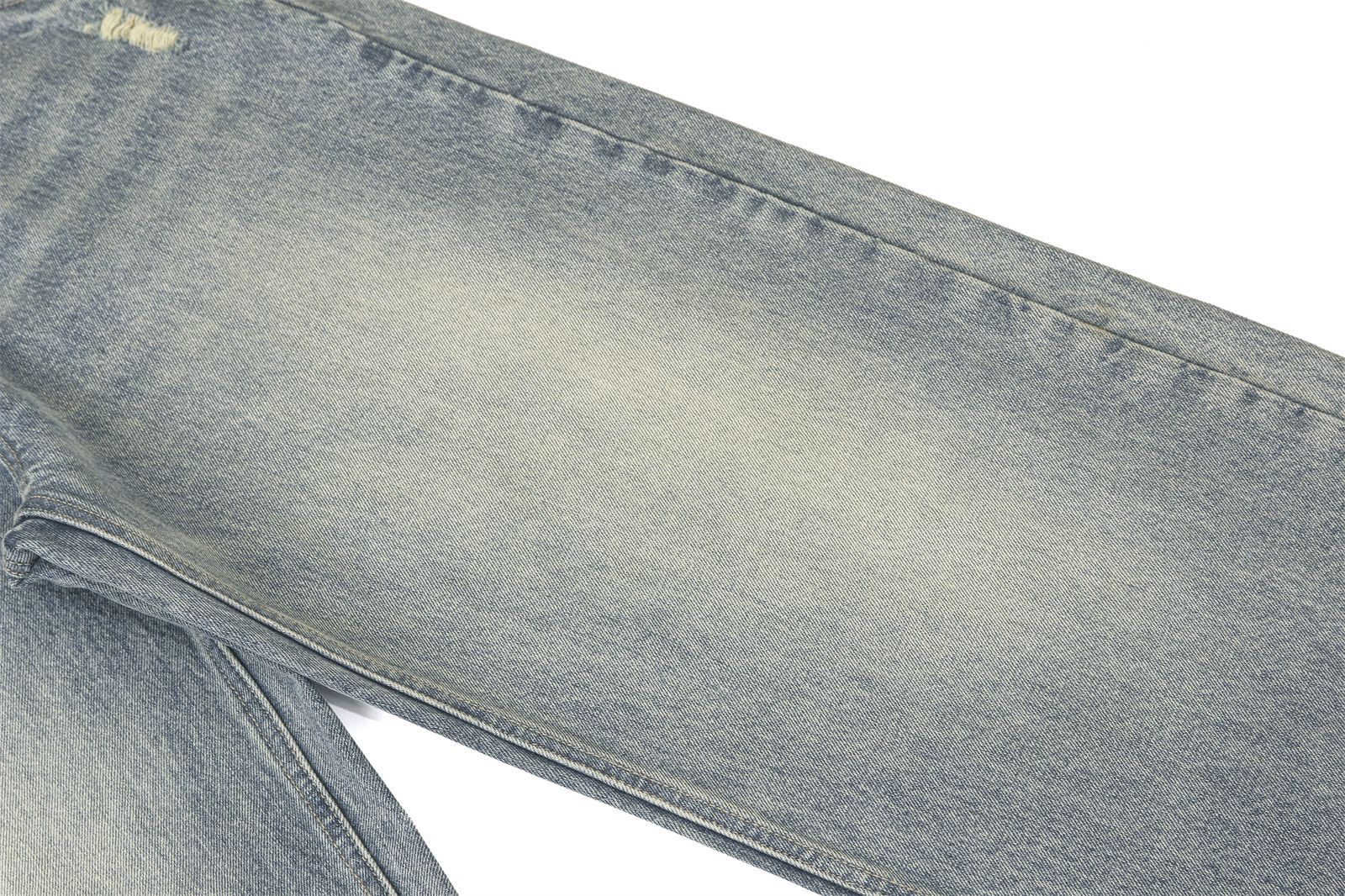 Washed Damage Wide-Leg Straight Denim Jeans WN16206