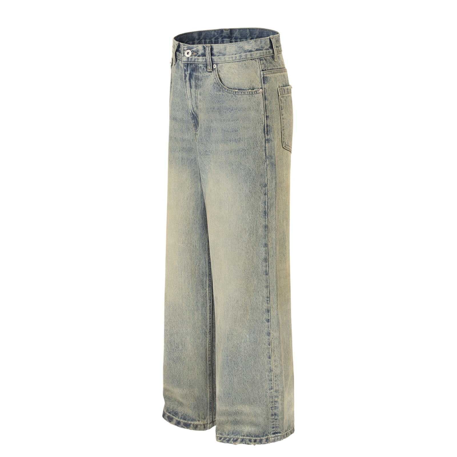 Washed Wide-Leg Straight Denim Jeans WN16208