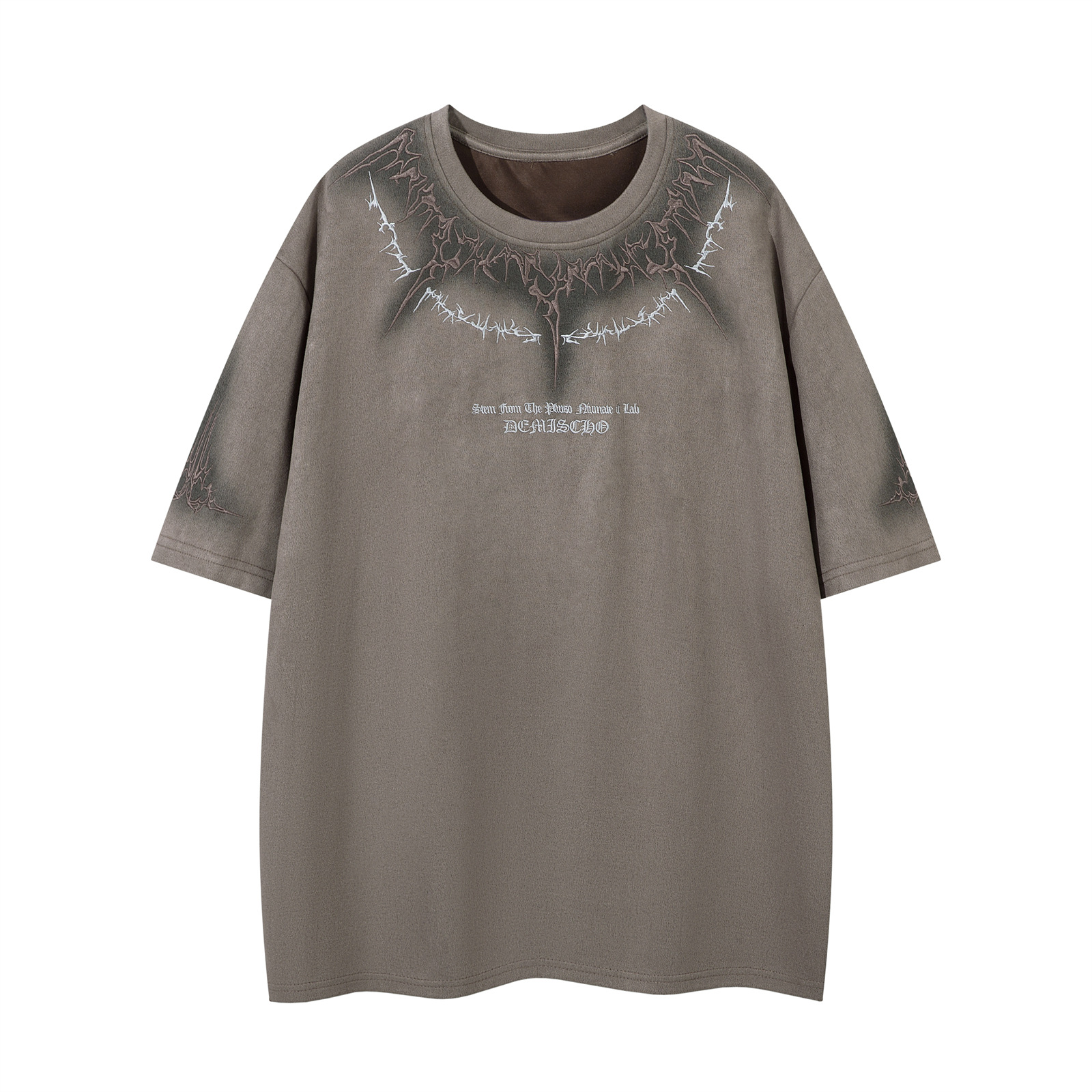 Embroidery Suede Oversize Short Sleeve T-Shirt WN16222