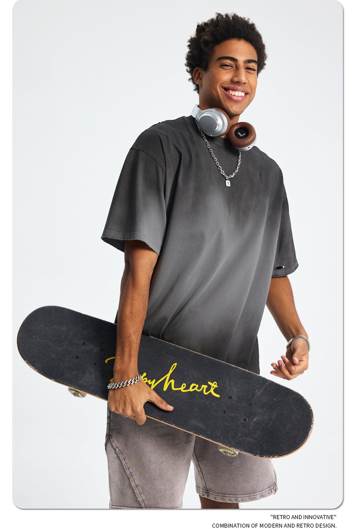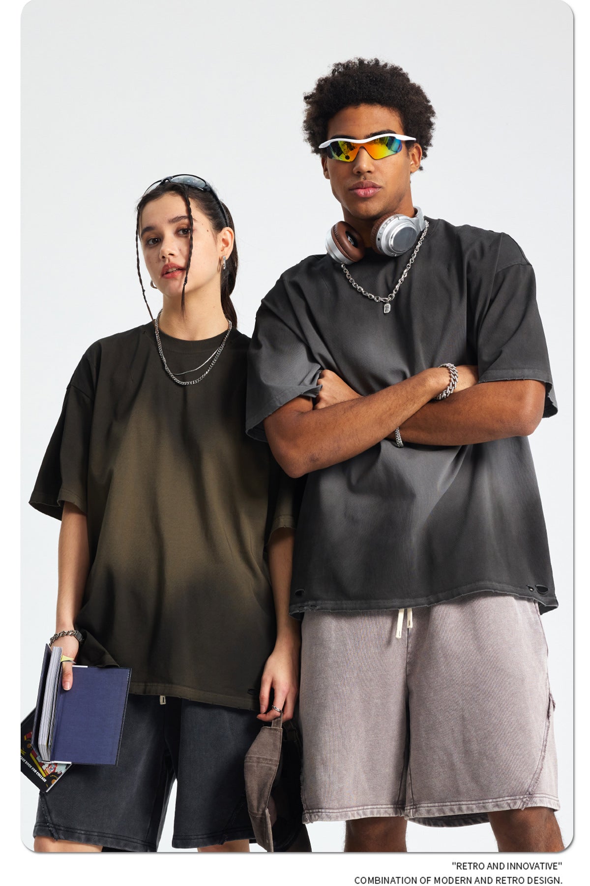 Spray Dye Washed Damage Short Sleeve T-Shirt WN16276