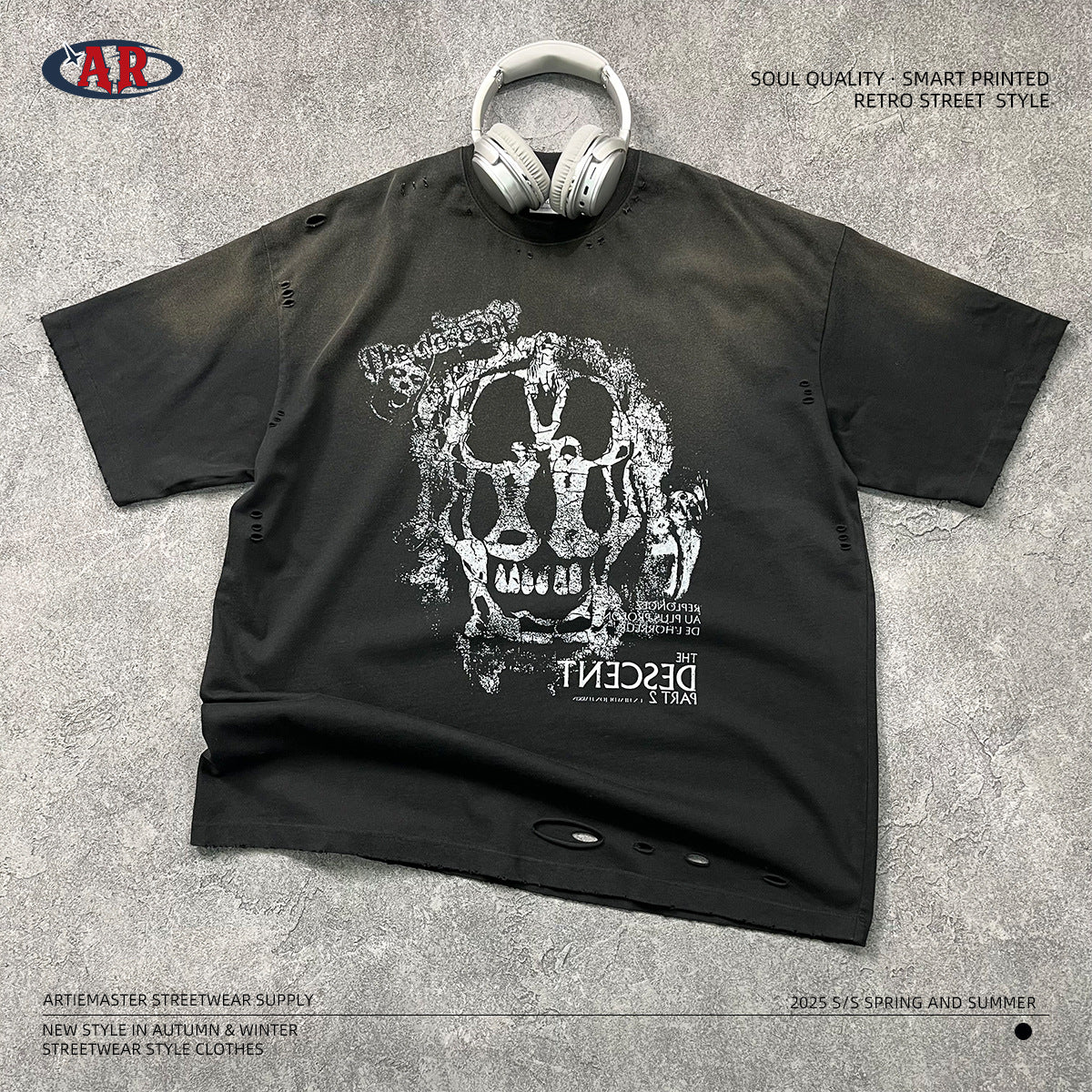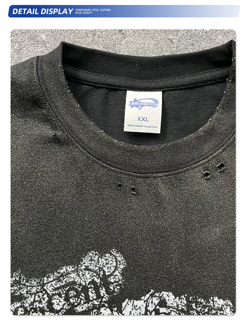 Graphic Print White Ink Digital Spray Short Sleeve T-Shirt WN16277