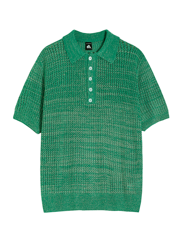 Hollow-Out Knit Short Sleeve Polo Shirt WN20259