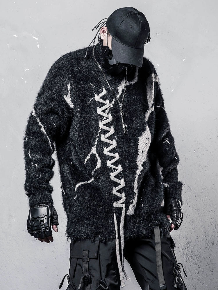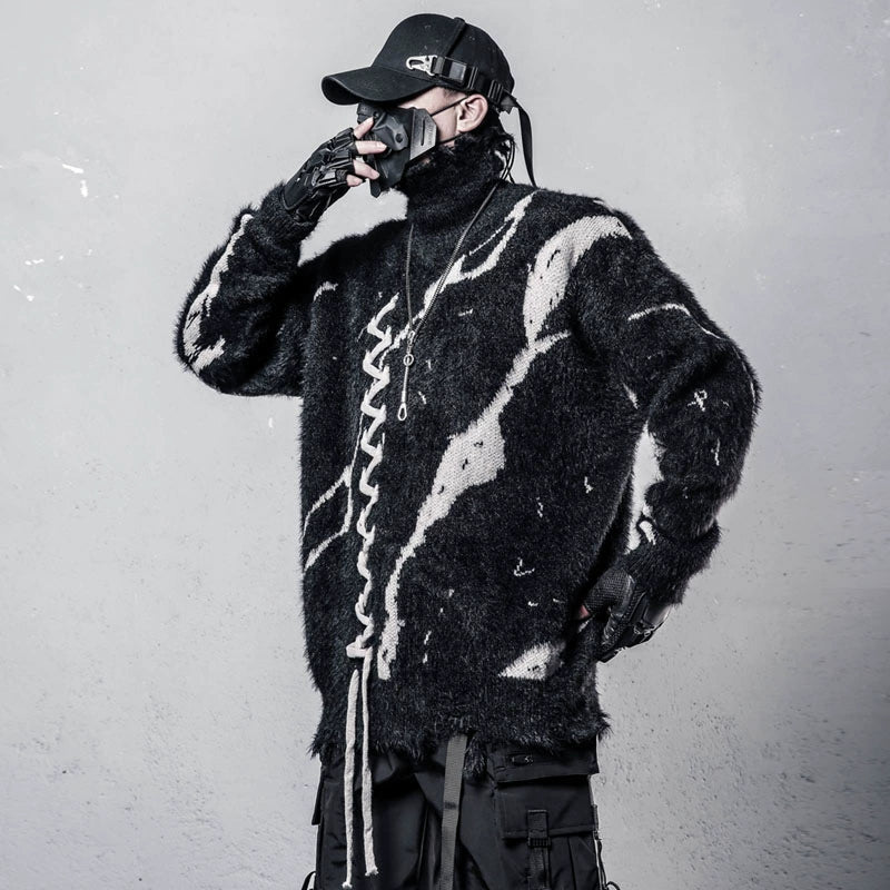 High-Neck Oversize Color Block Knit Sweater WN22329