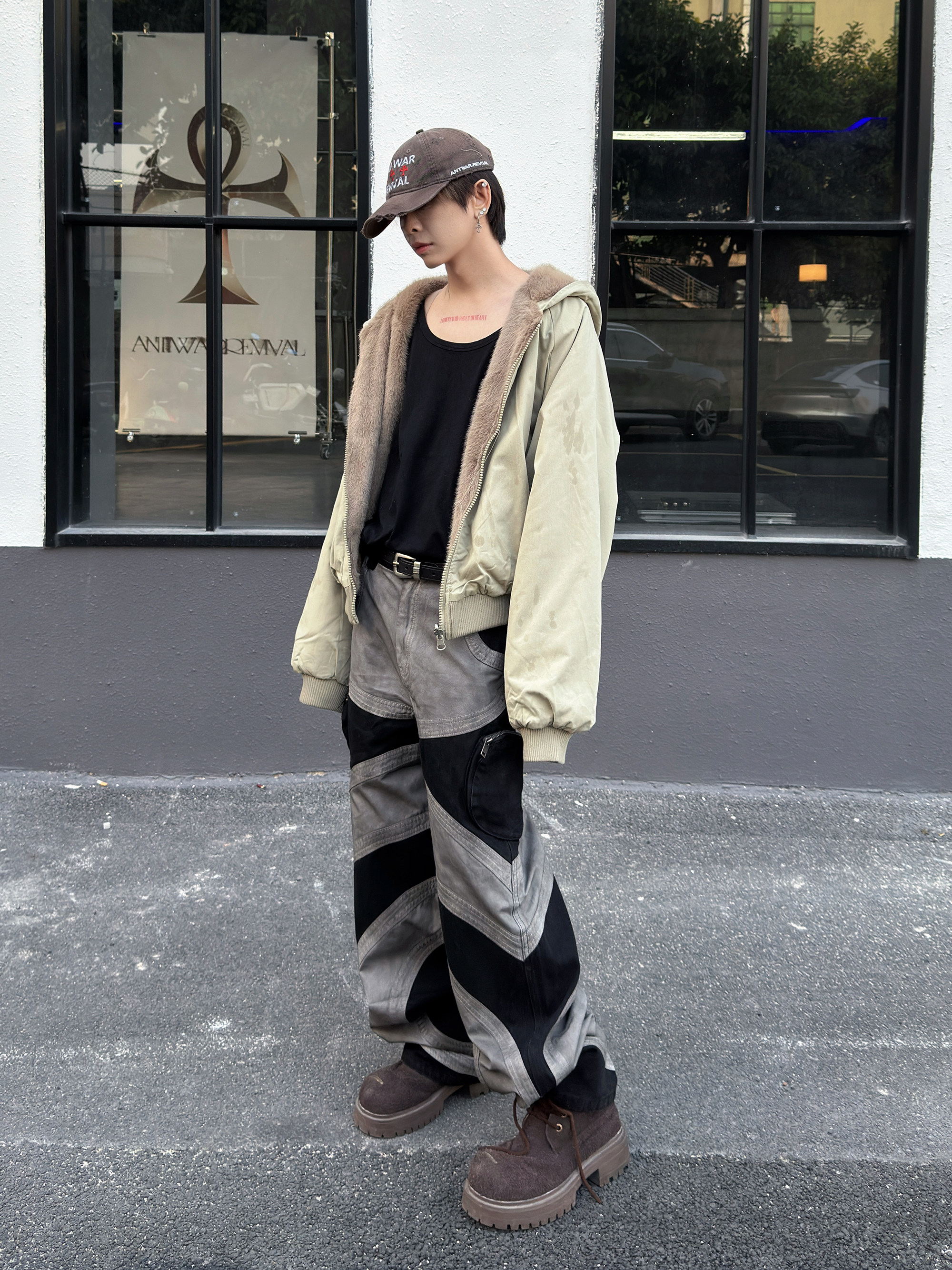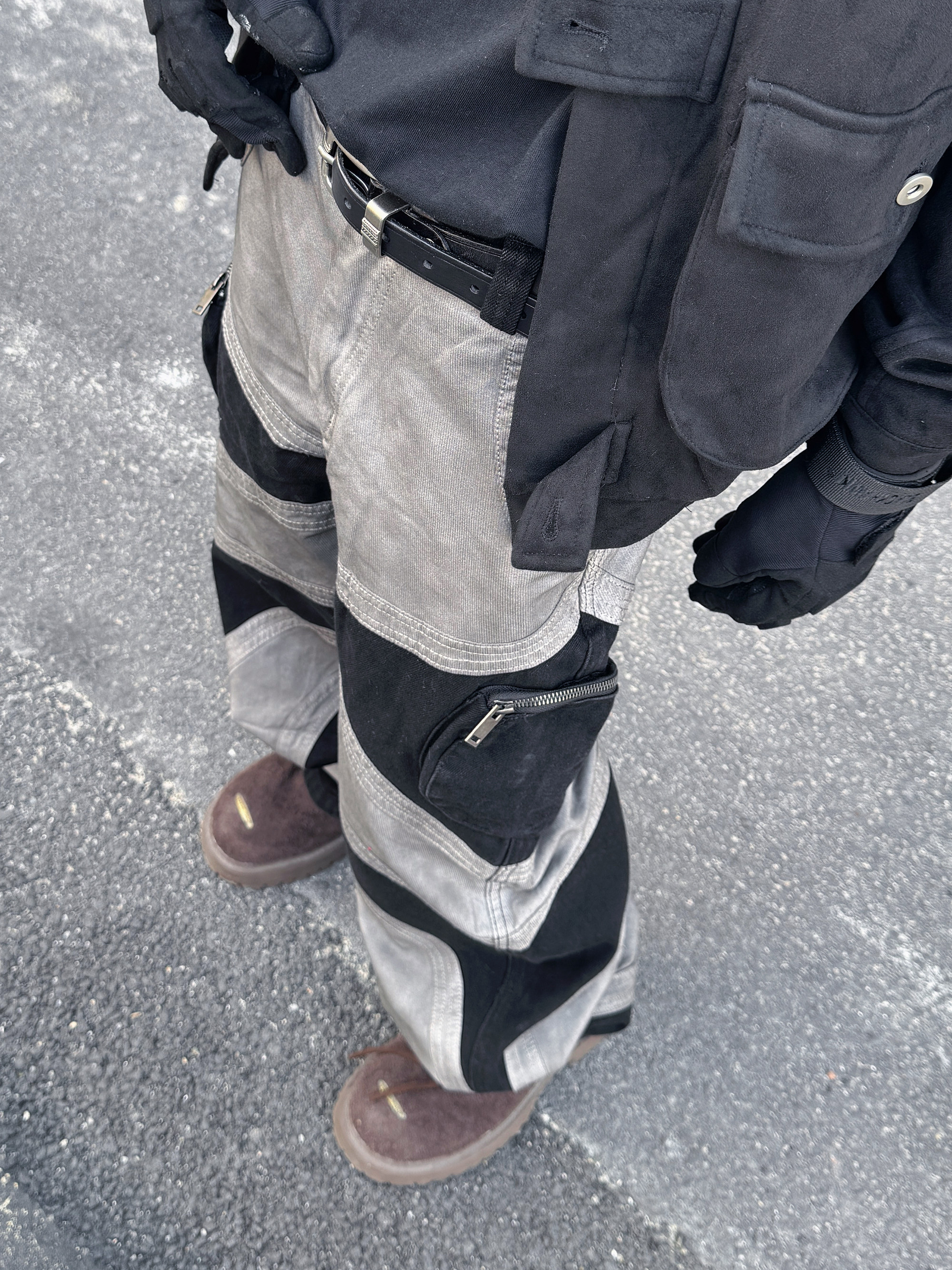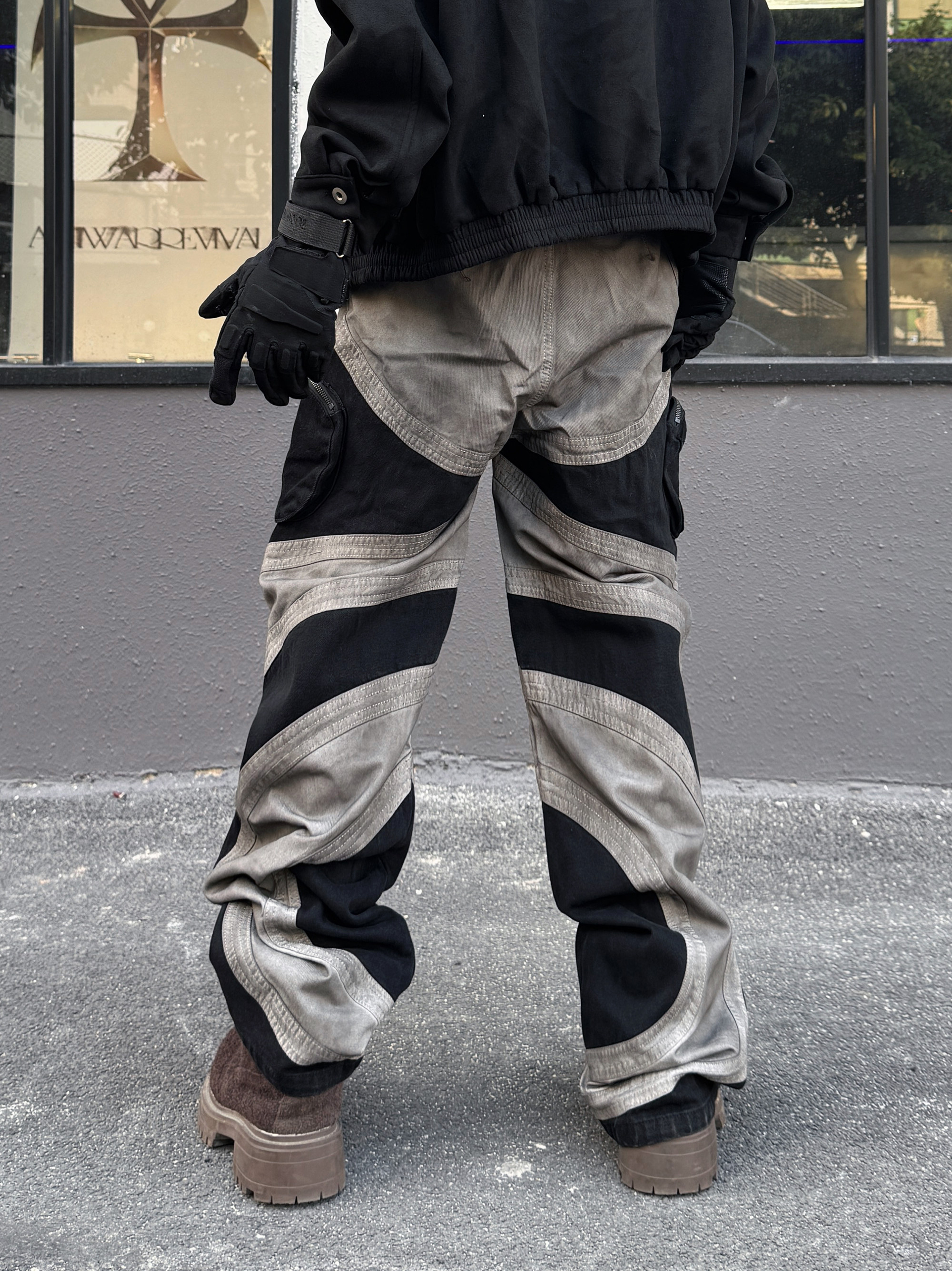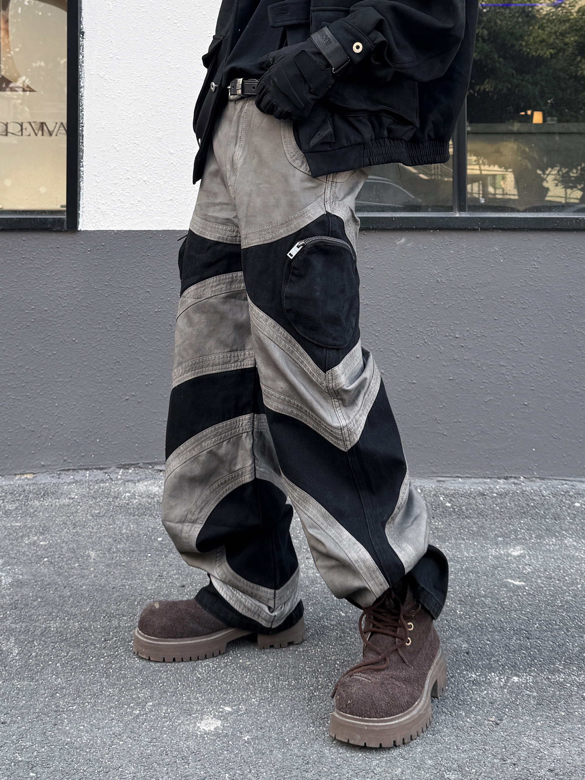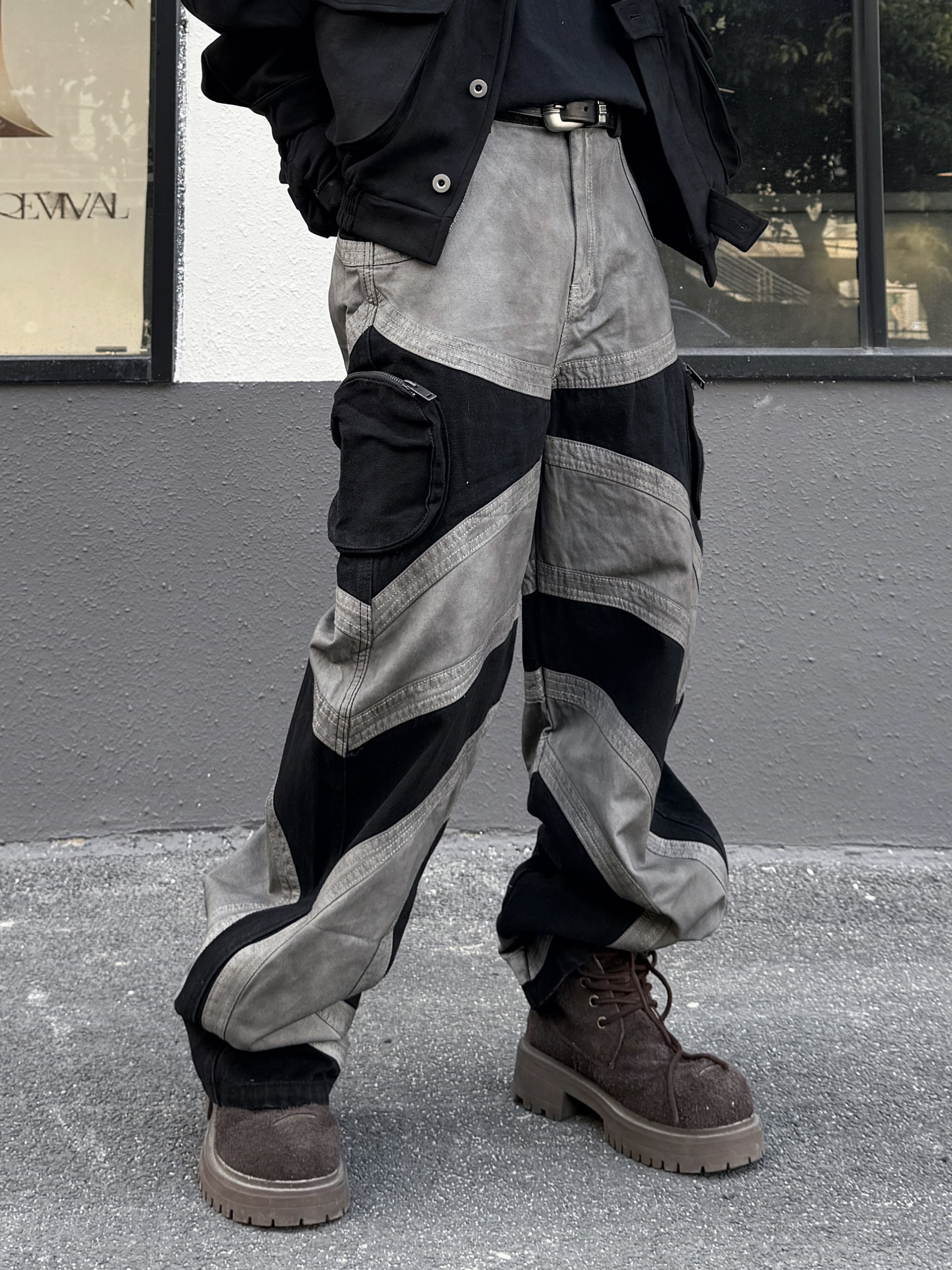 Damage Wash Patchwork Wide Leg Pants WN23021