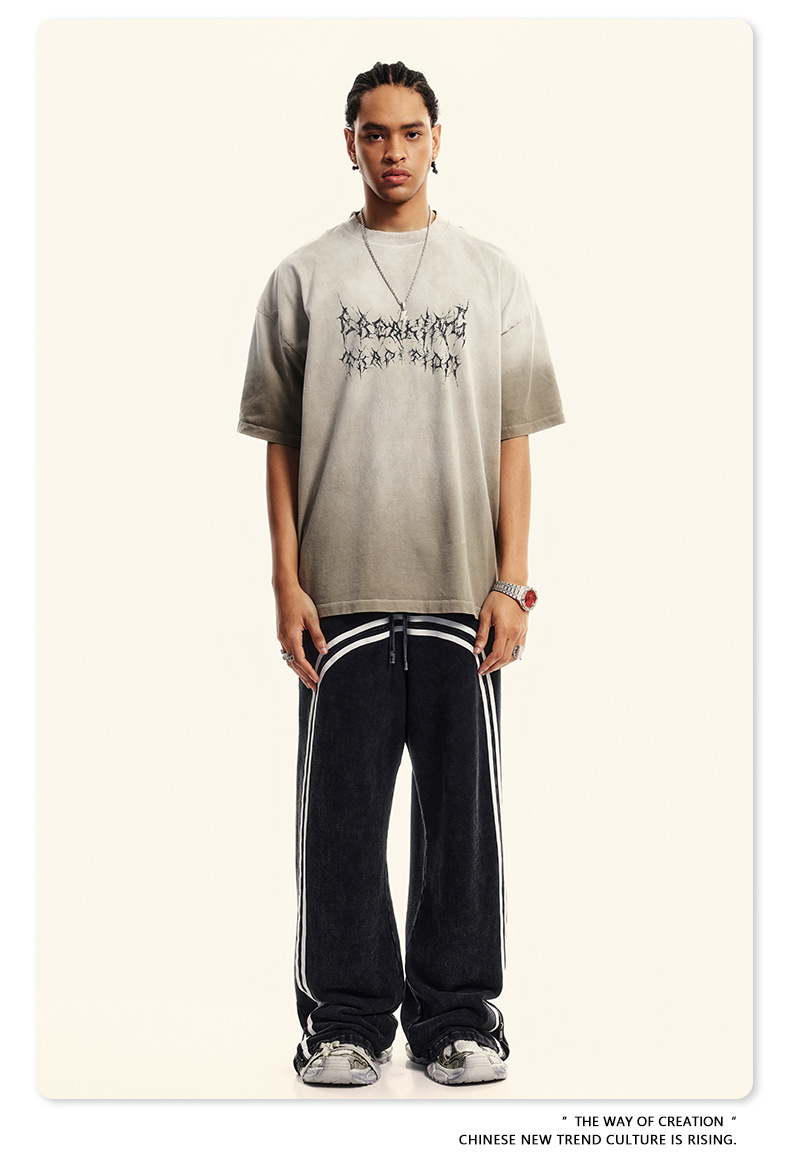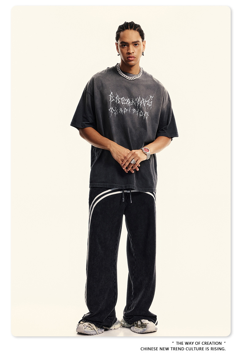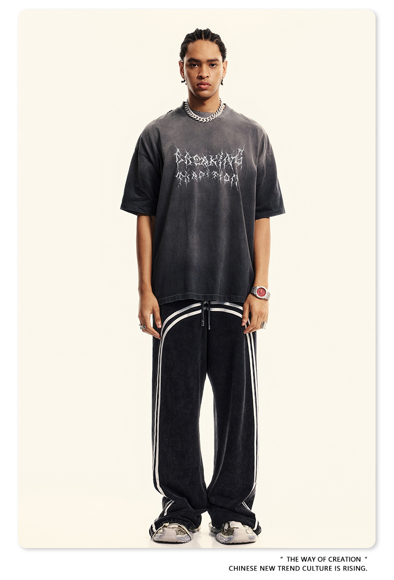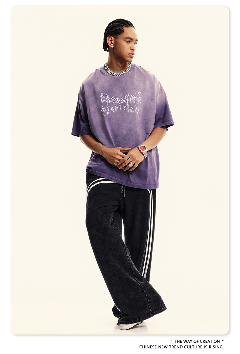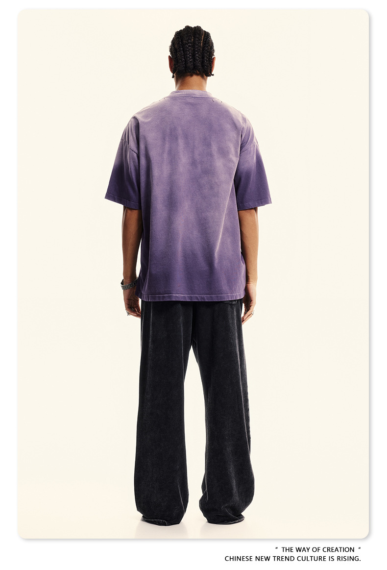 Washed Damage Print Oversize Short-sleeve T-shirt WN6400
