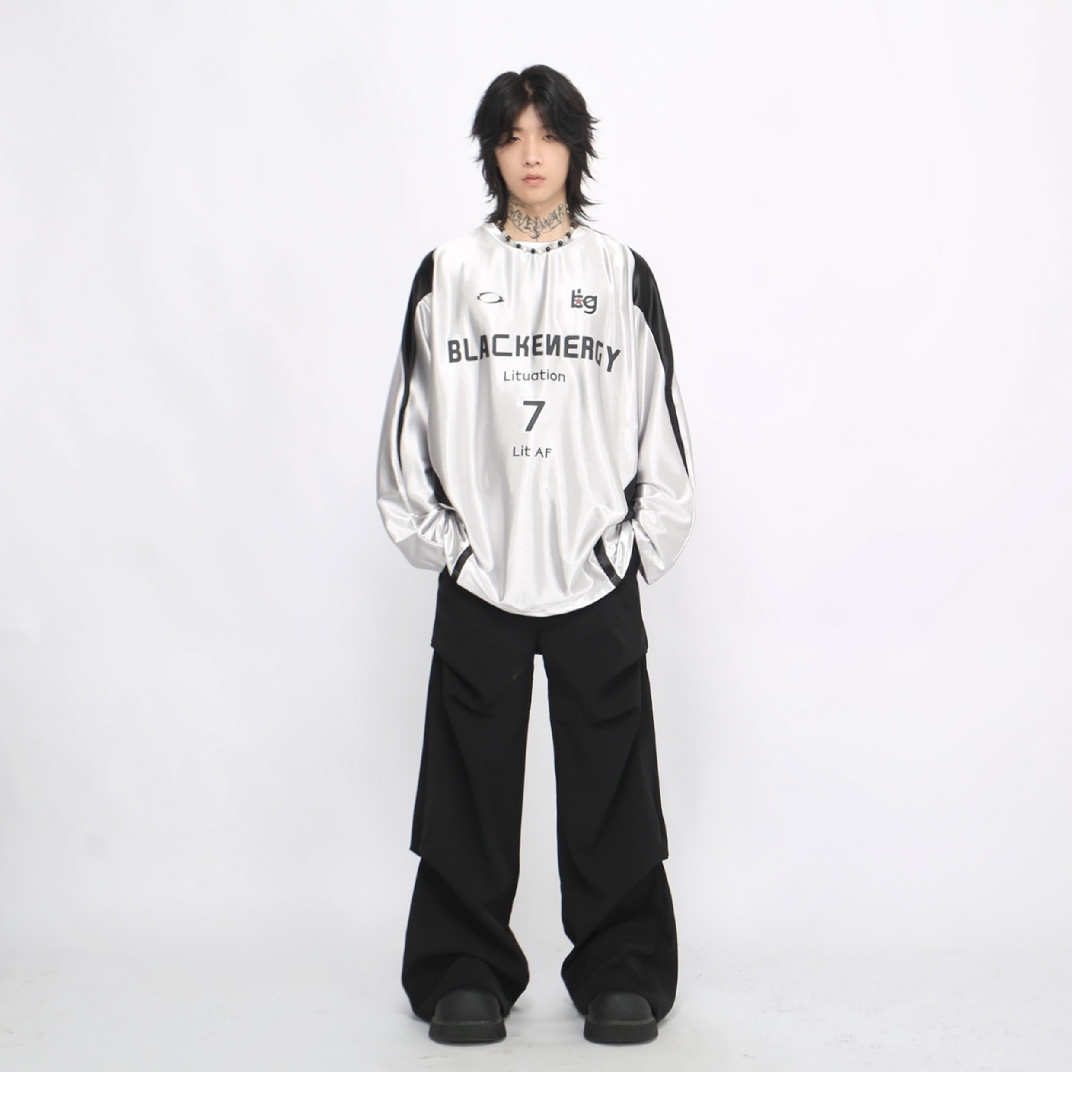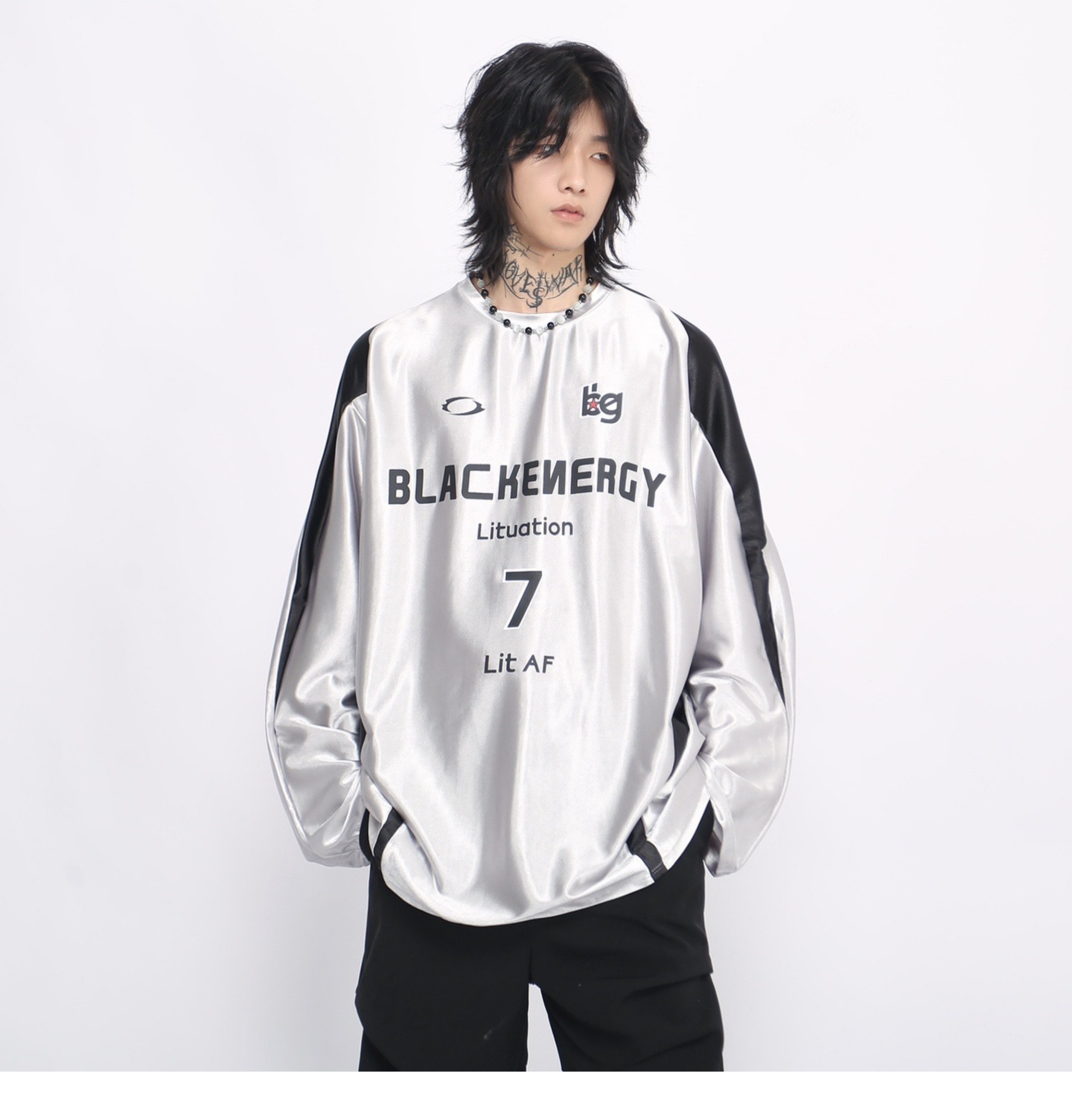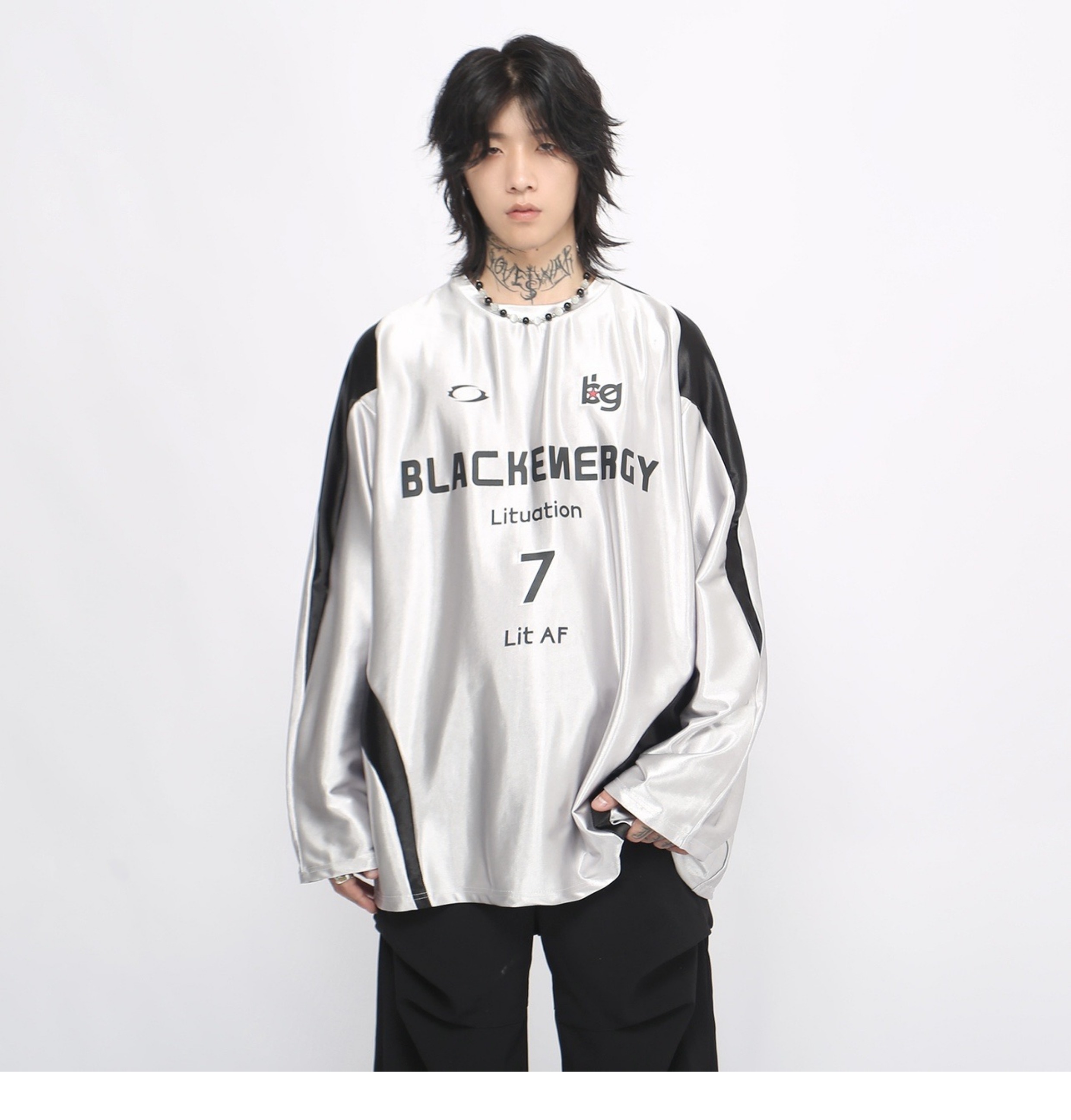 Silver Sporty Jersey Raglan Long Sleeve T-Shirt WN8373