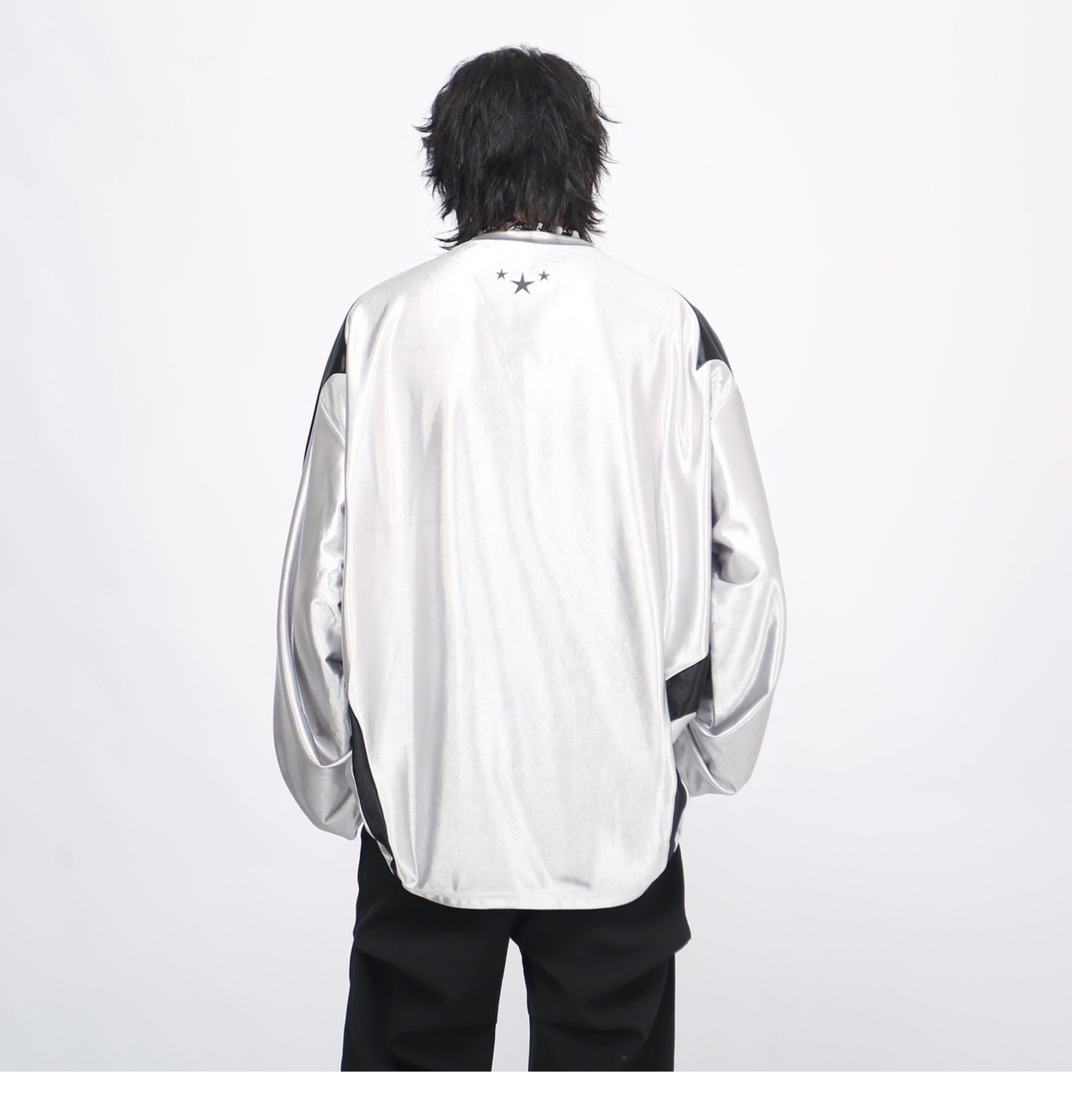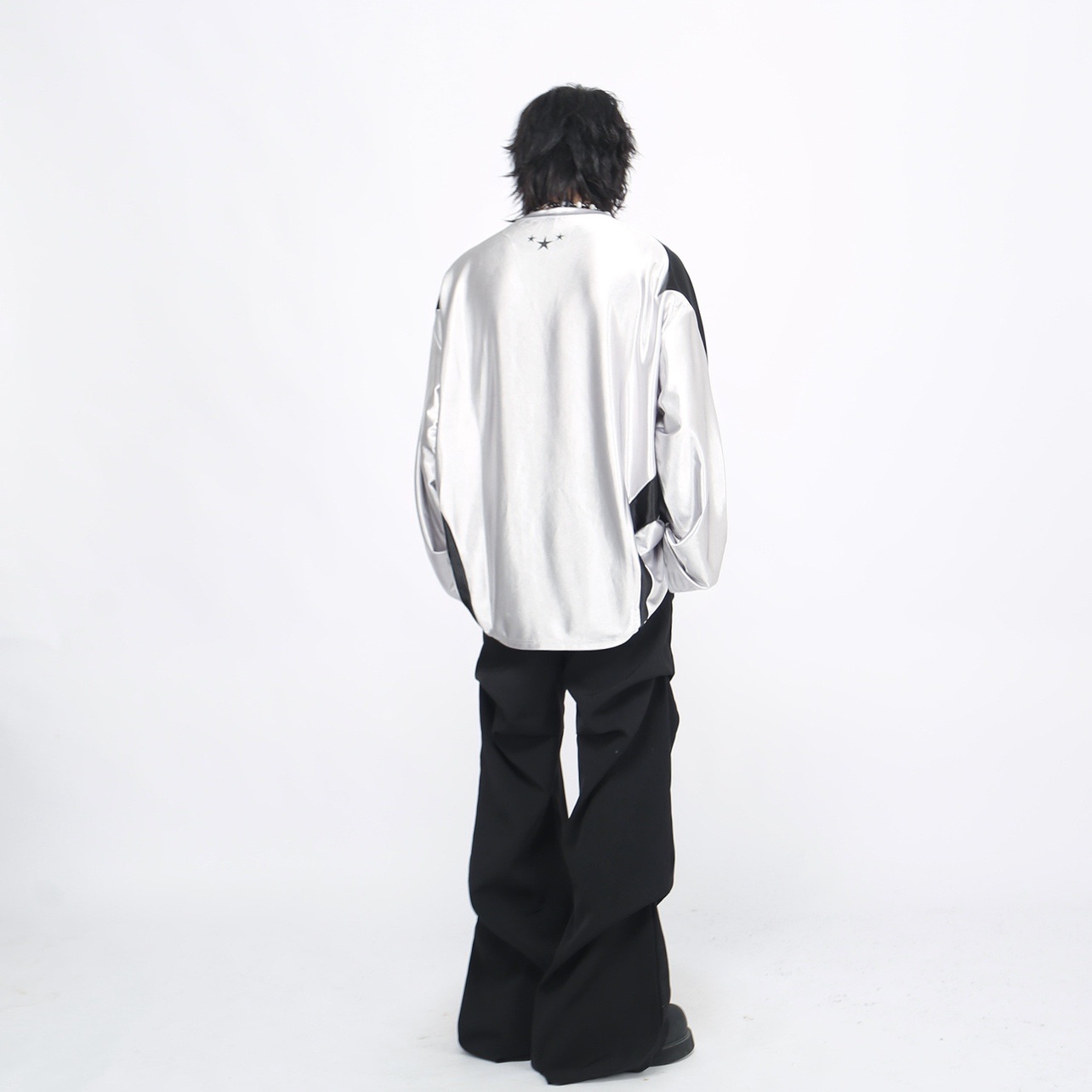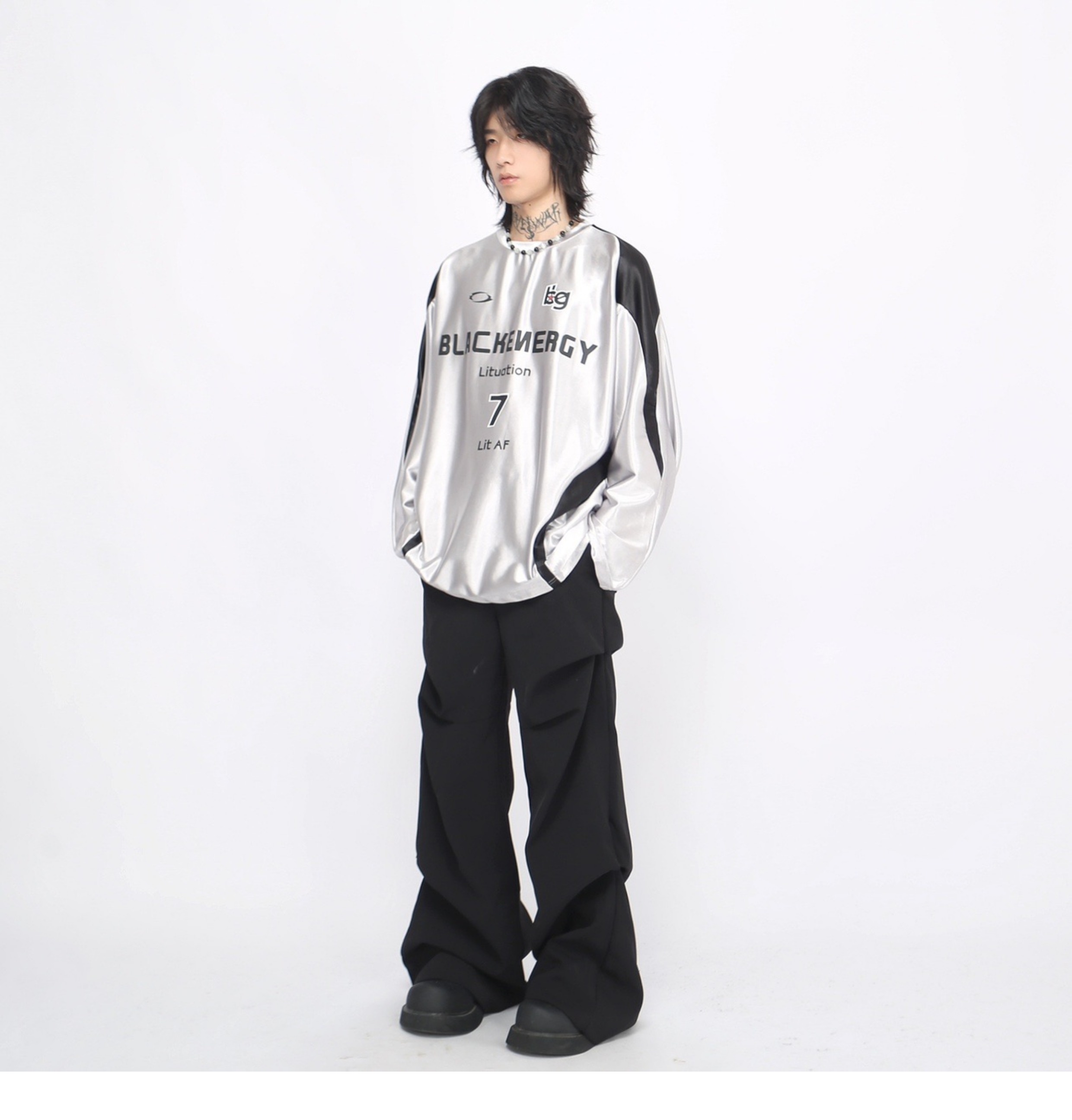 Silver Sporty Jersey Raglan Long Sleeve T-Shirt WN8373