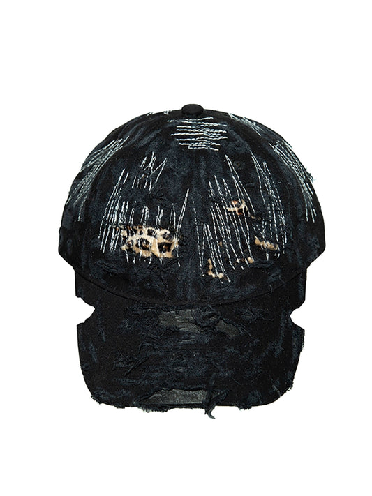 Irregular Brim Leopard Patchwork Damage Cap WN21092