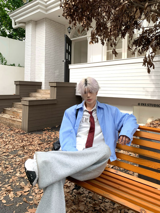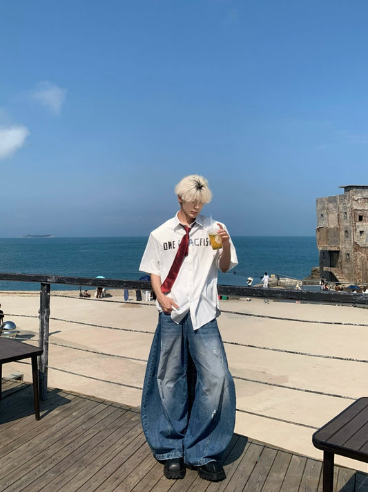 Paint Denim Short Sleeve Shirt & Wide Leg Denim Jeans Setup WN19866