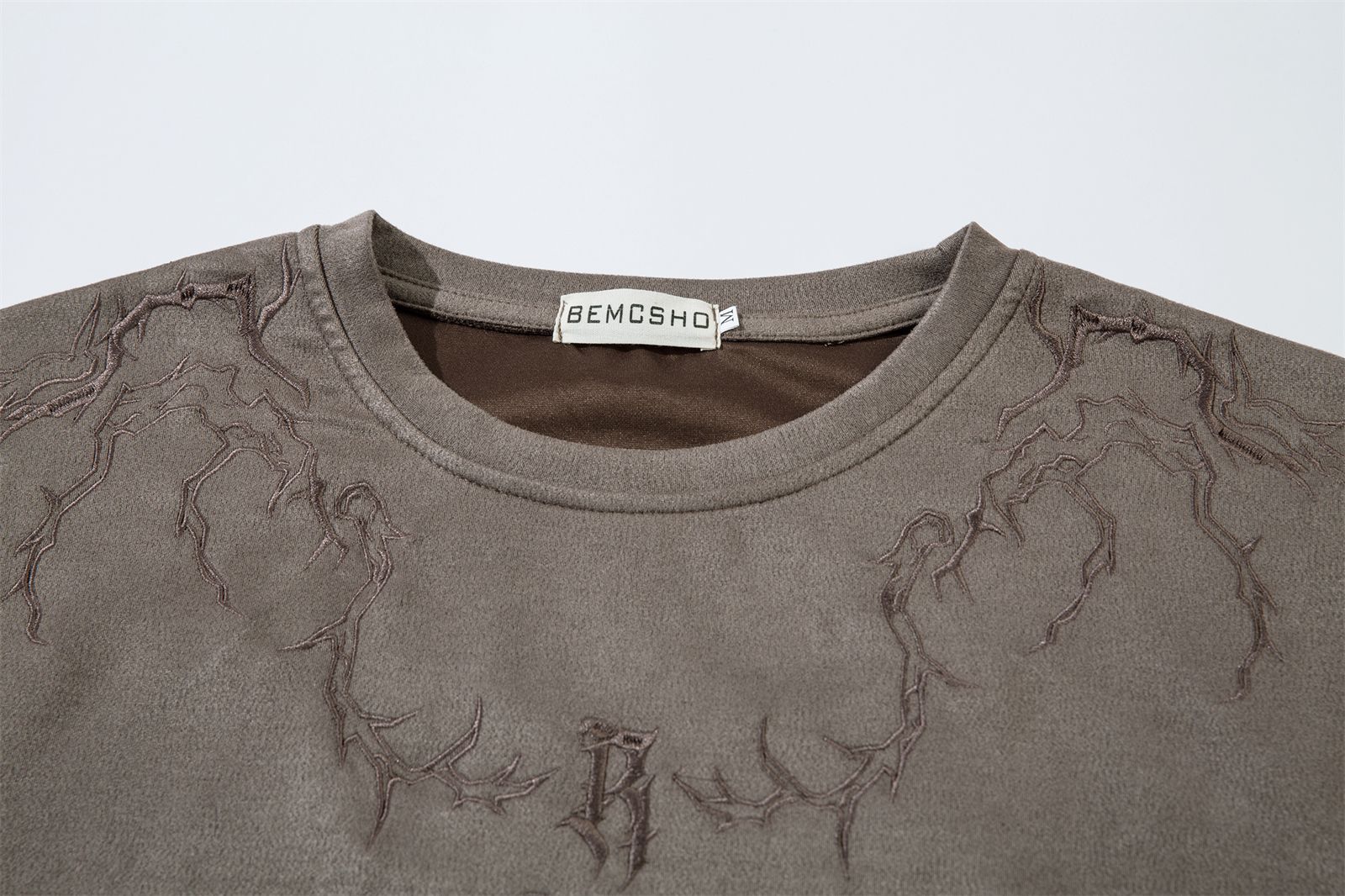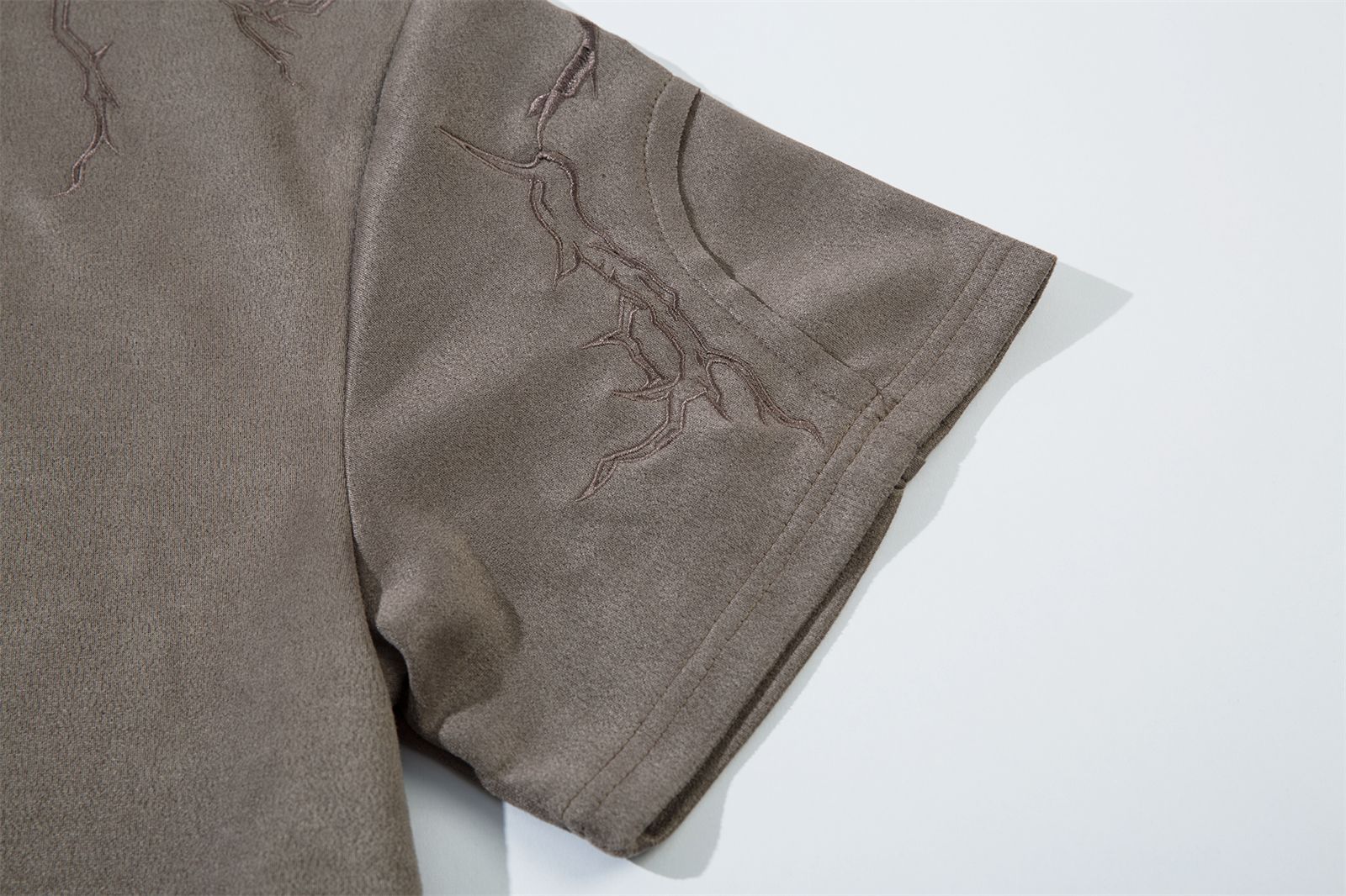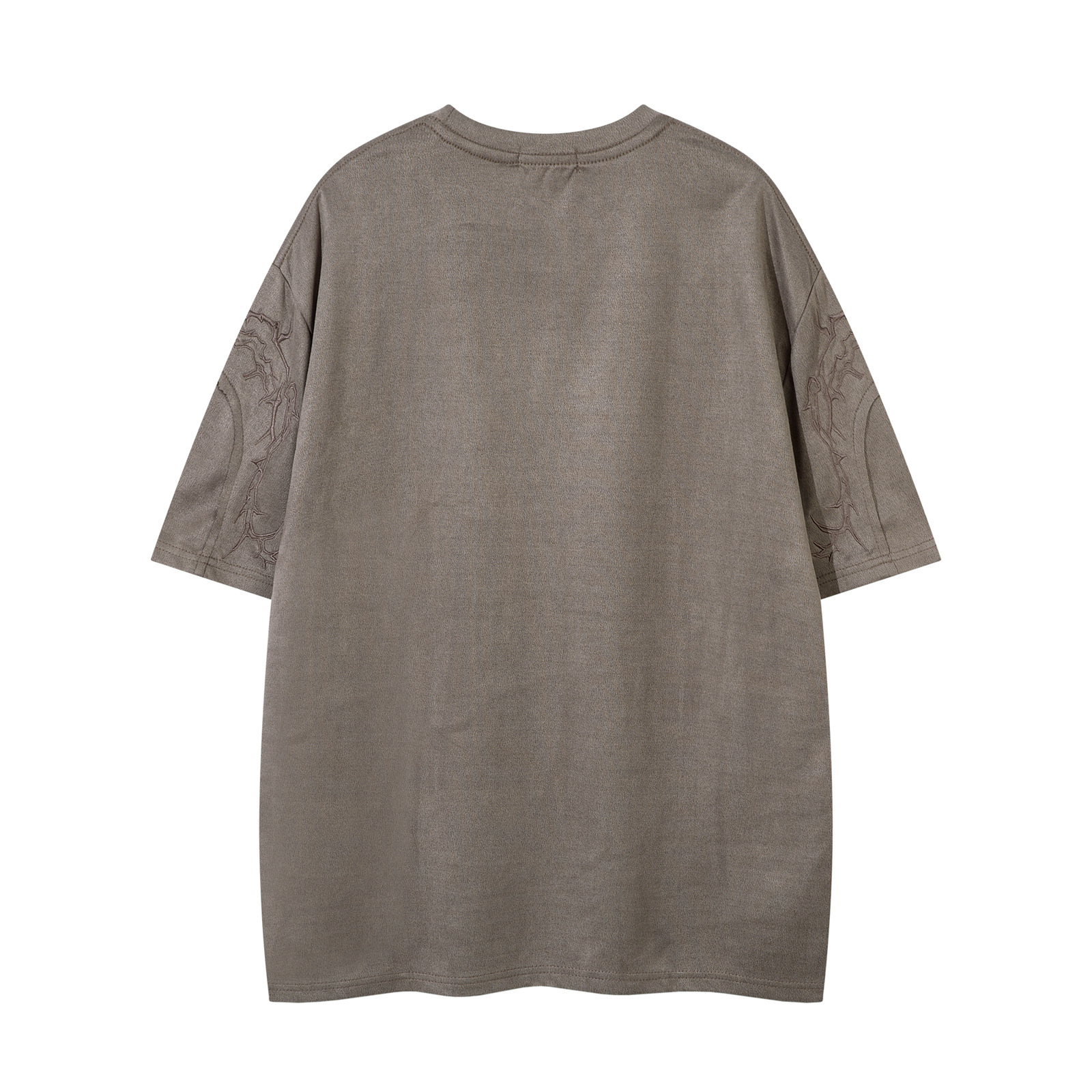 3D Embroidery Suede Oversize Short Sleeve T-Shirt WN15078