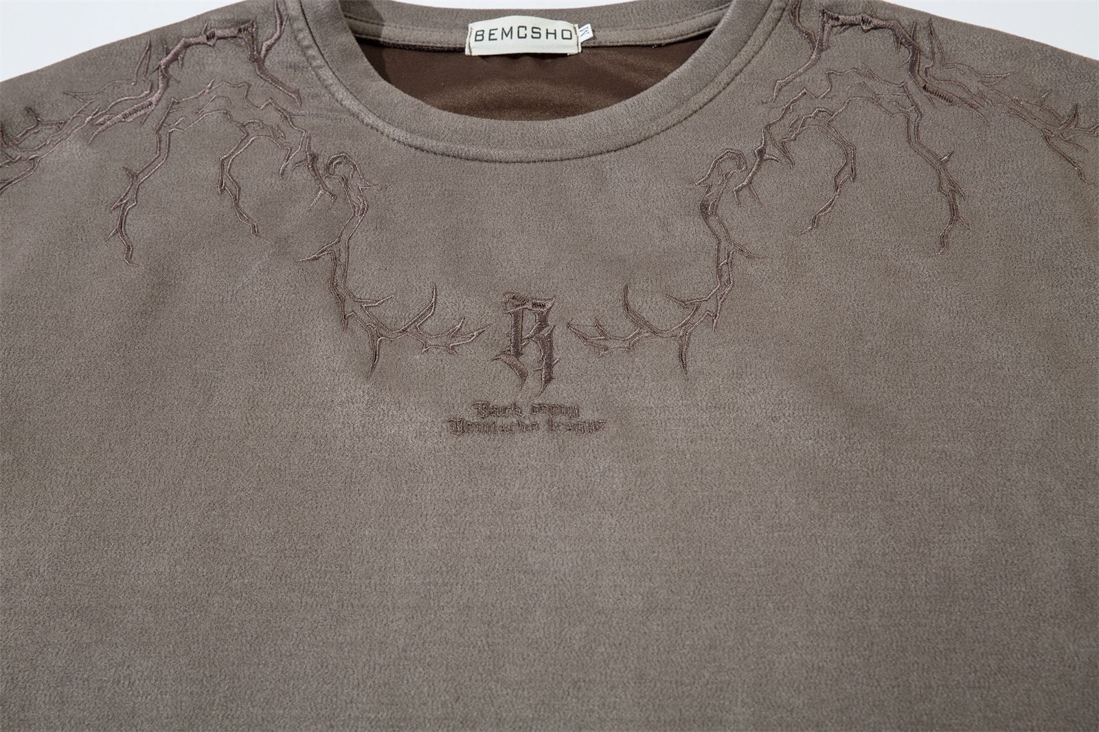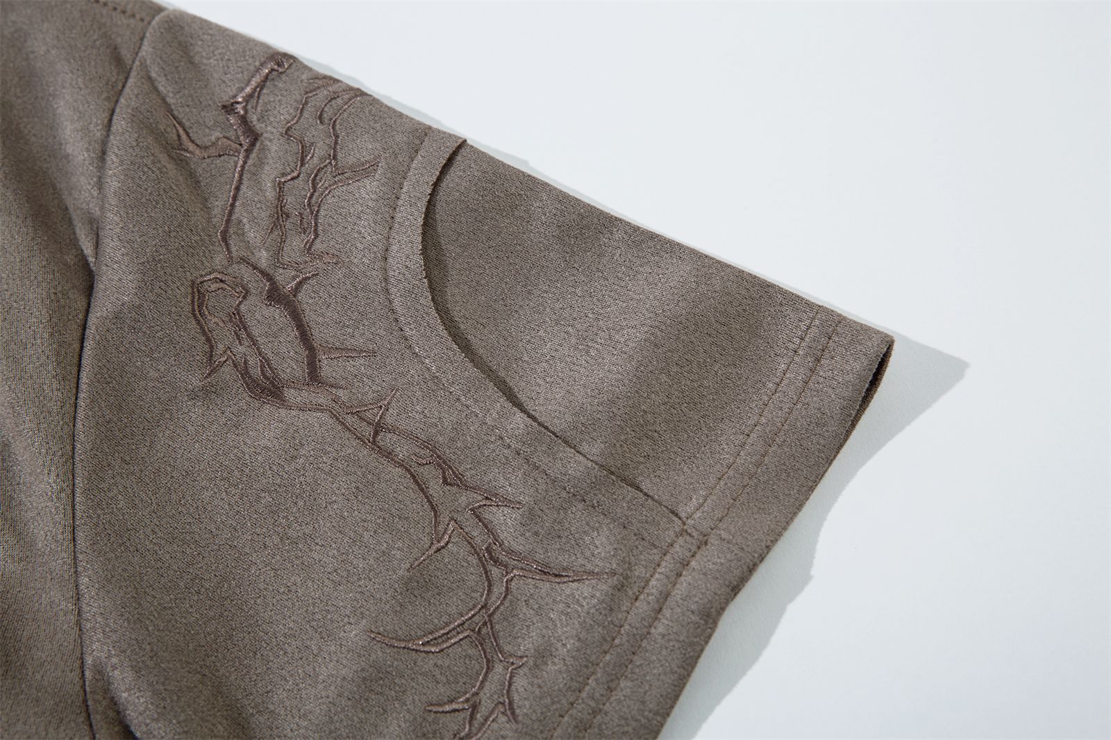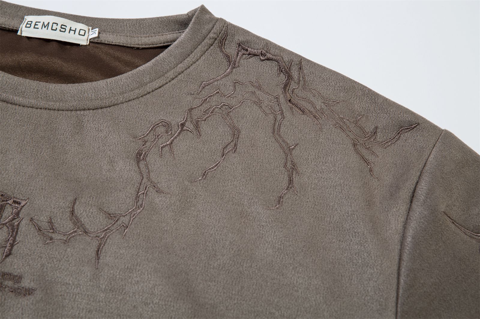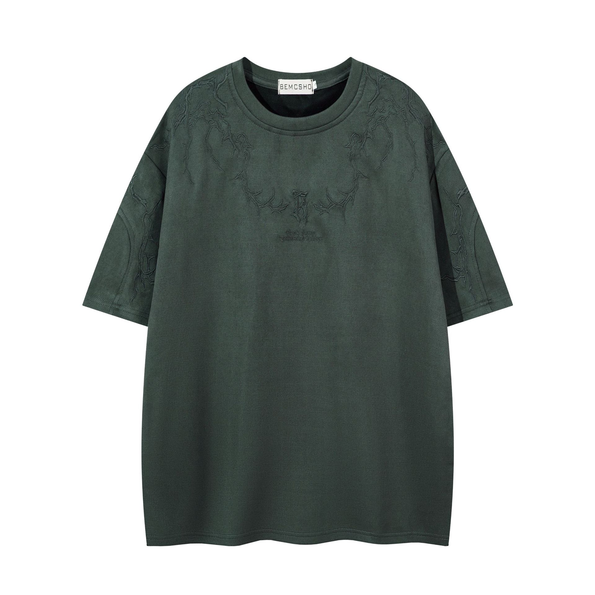 3D Embroidery Suede Oversize Short Sleeve T-Shirt WN15078