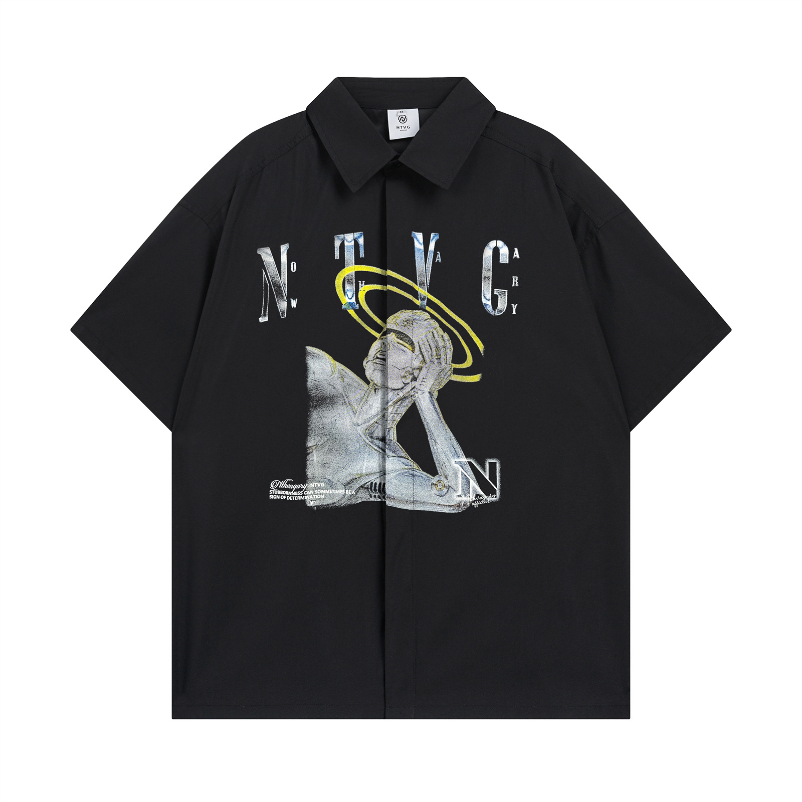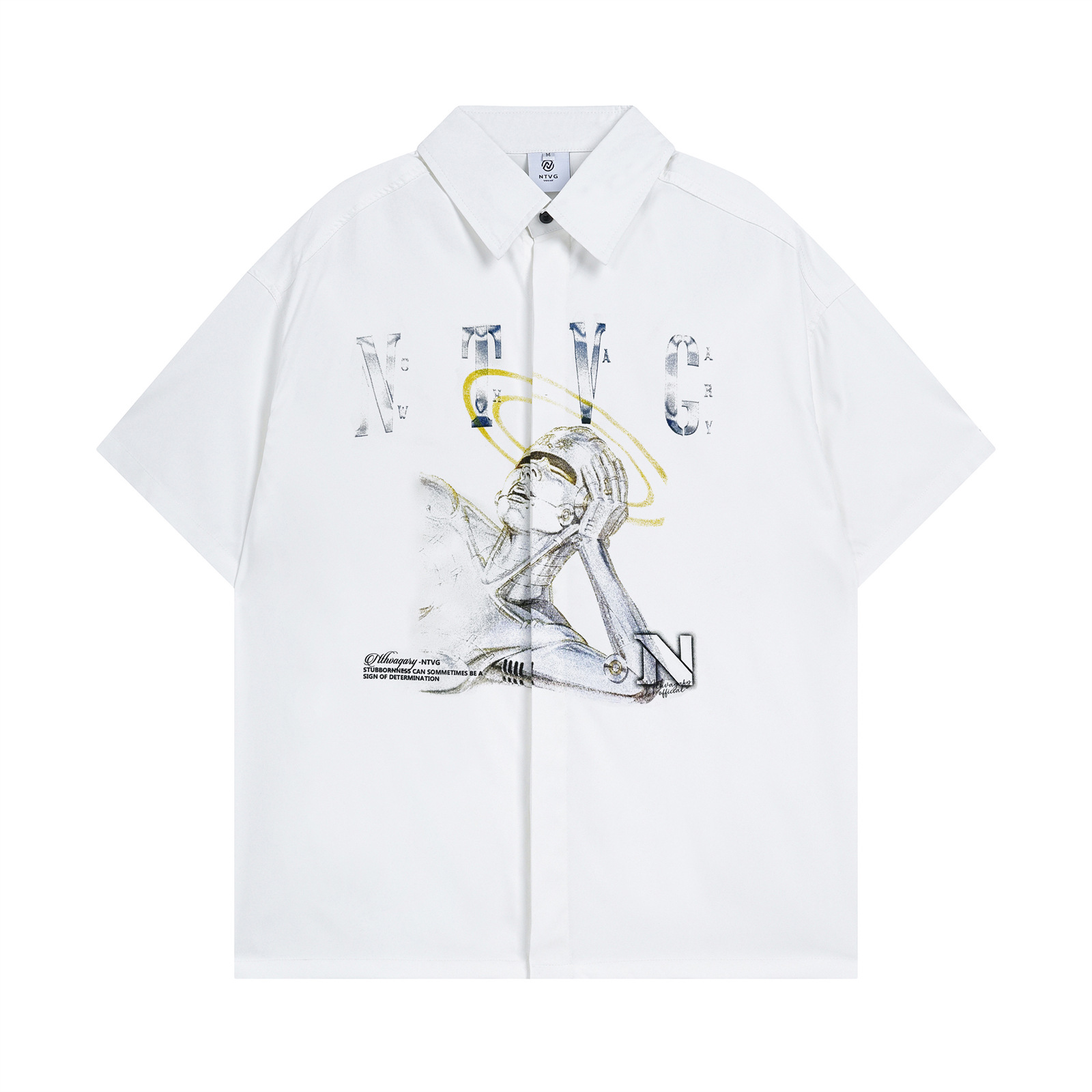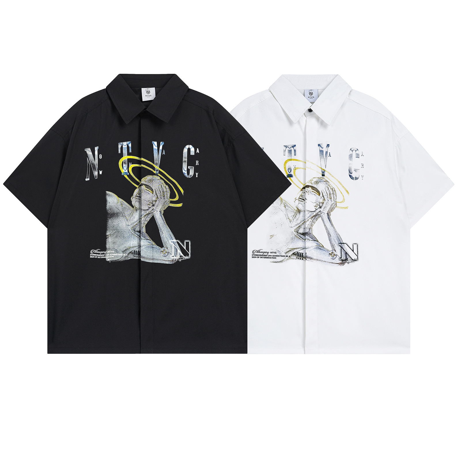 Graffiti Print Polo Collar Oversize Short Sleeve Shirt WN15096