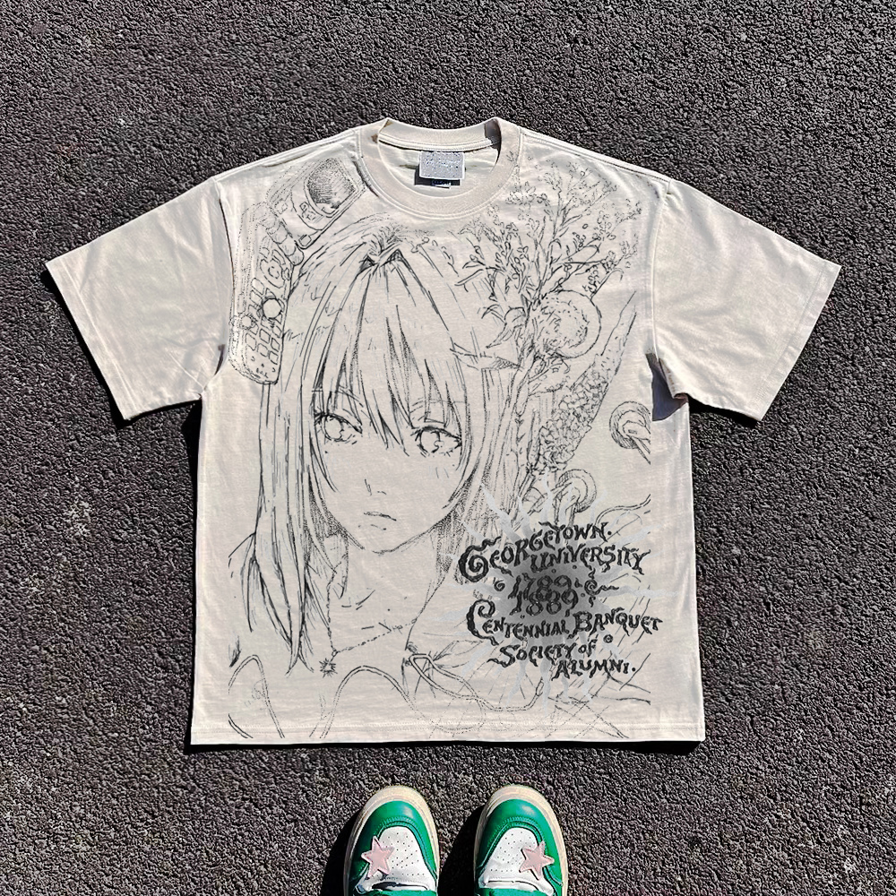 Illustration Print Oversize Short Sleeve T-Shirt WN16730
