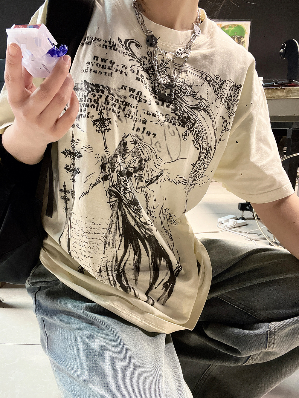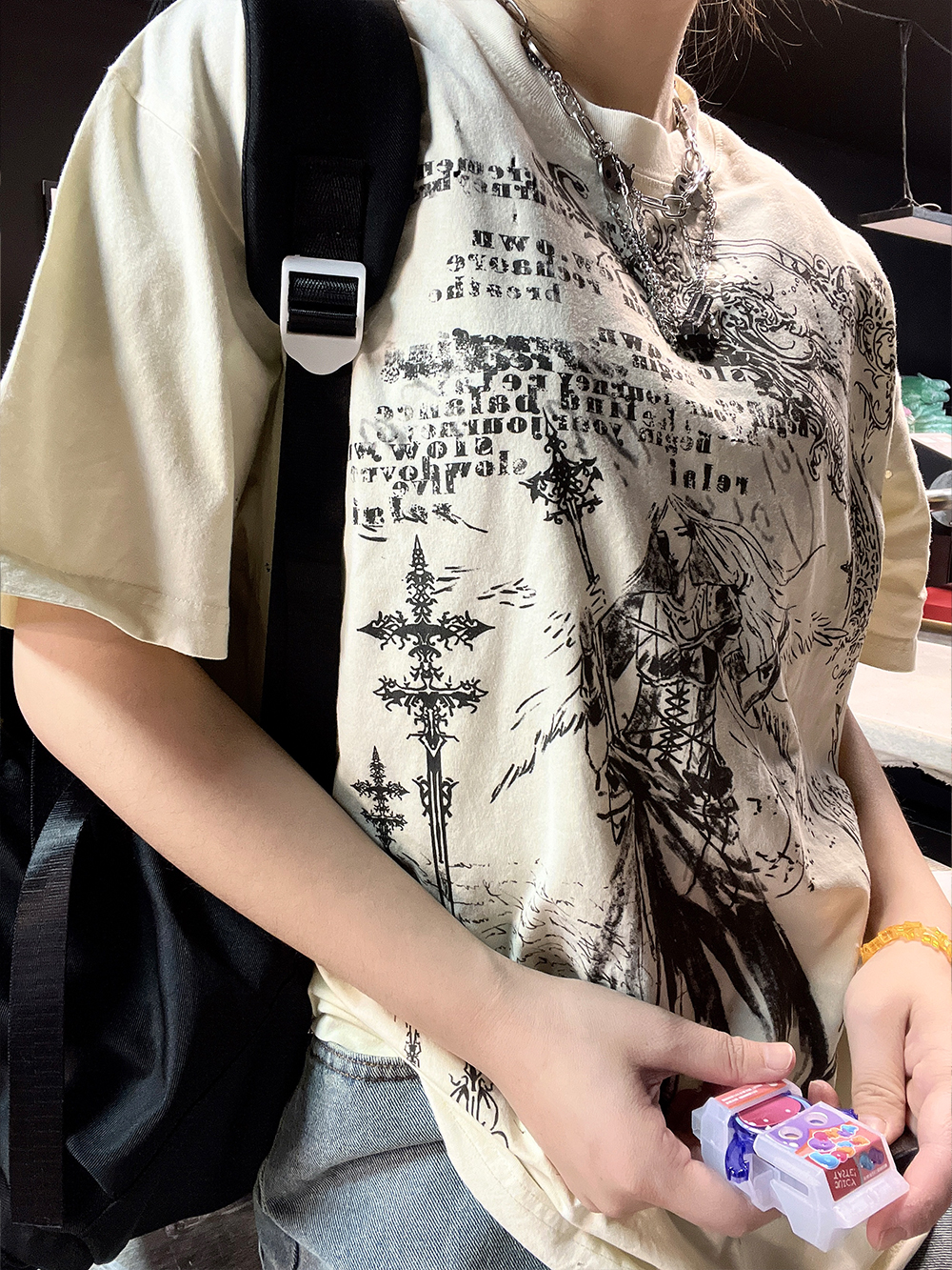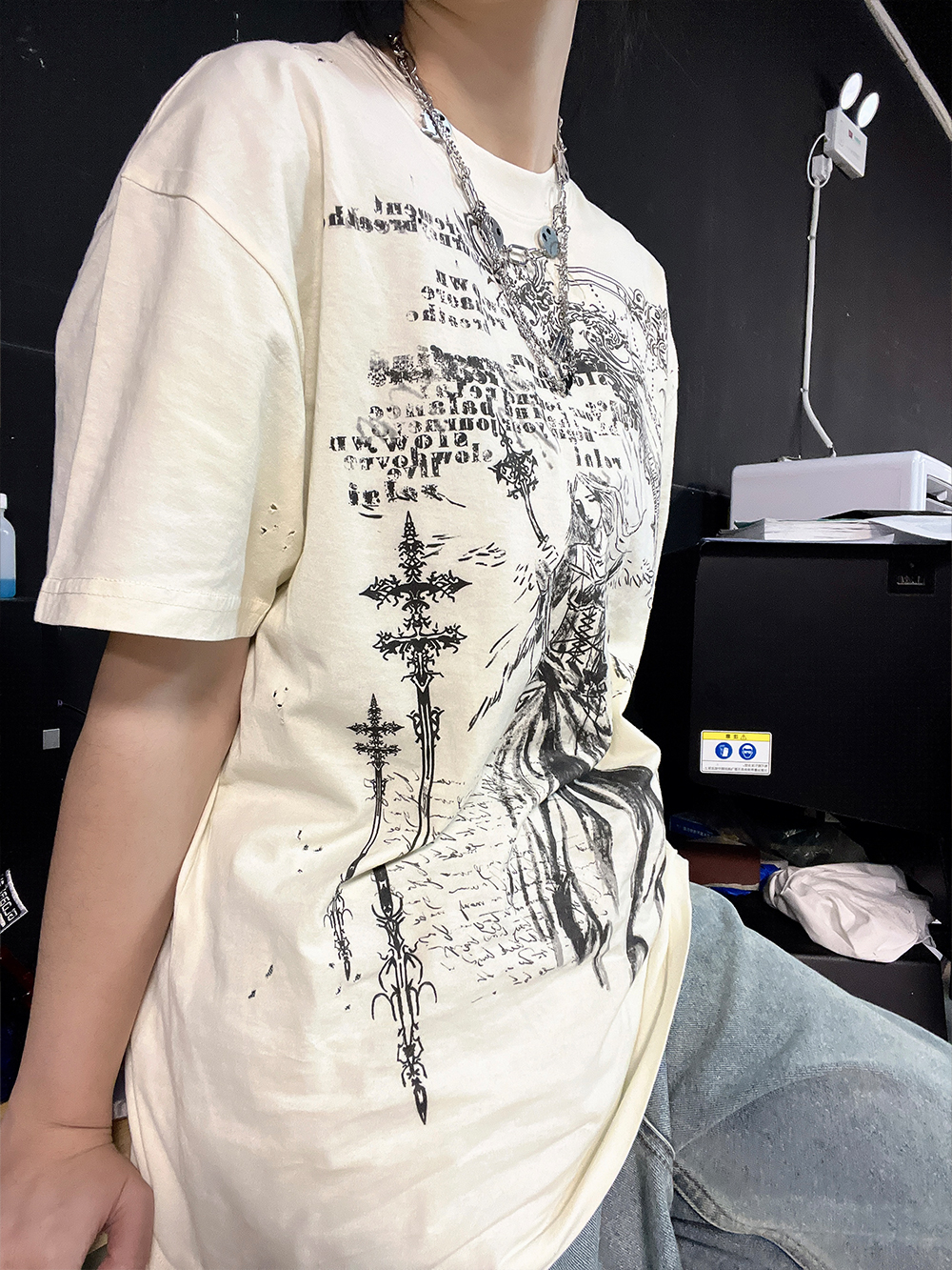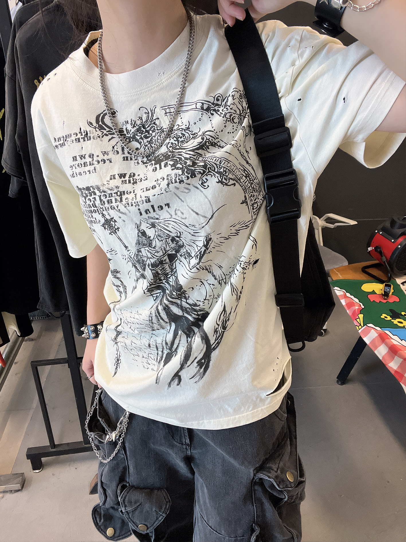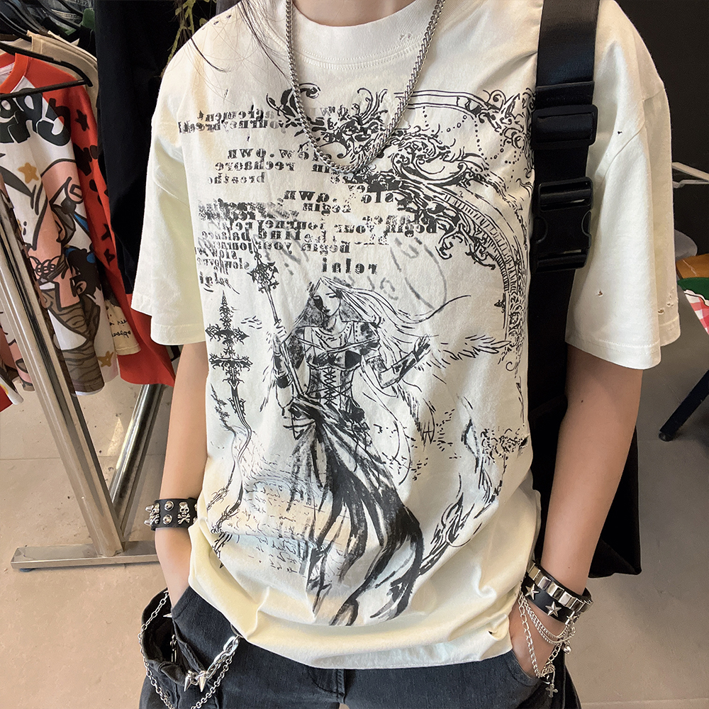 Ilustration Art Print Oversize Short Sleeve T-Shirt WN16734