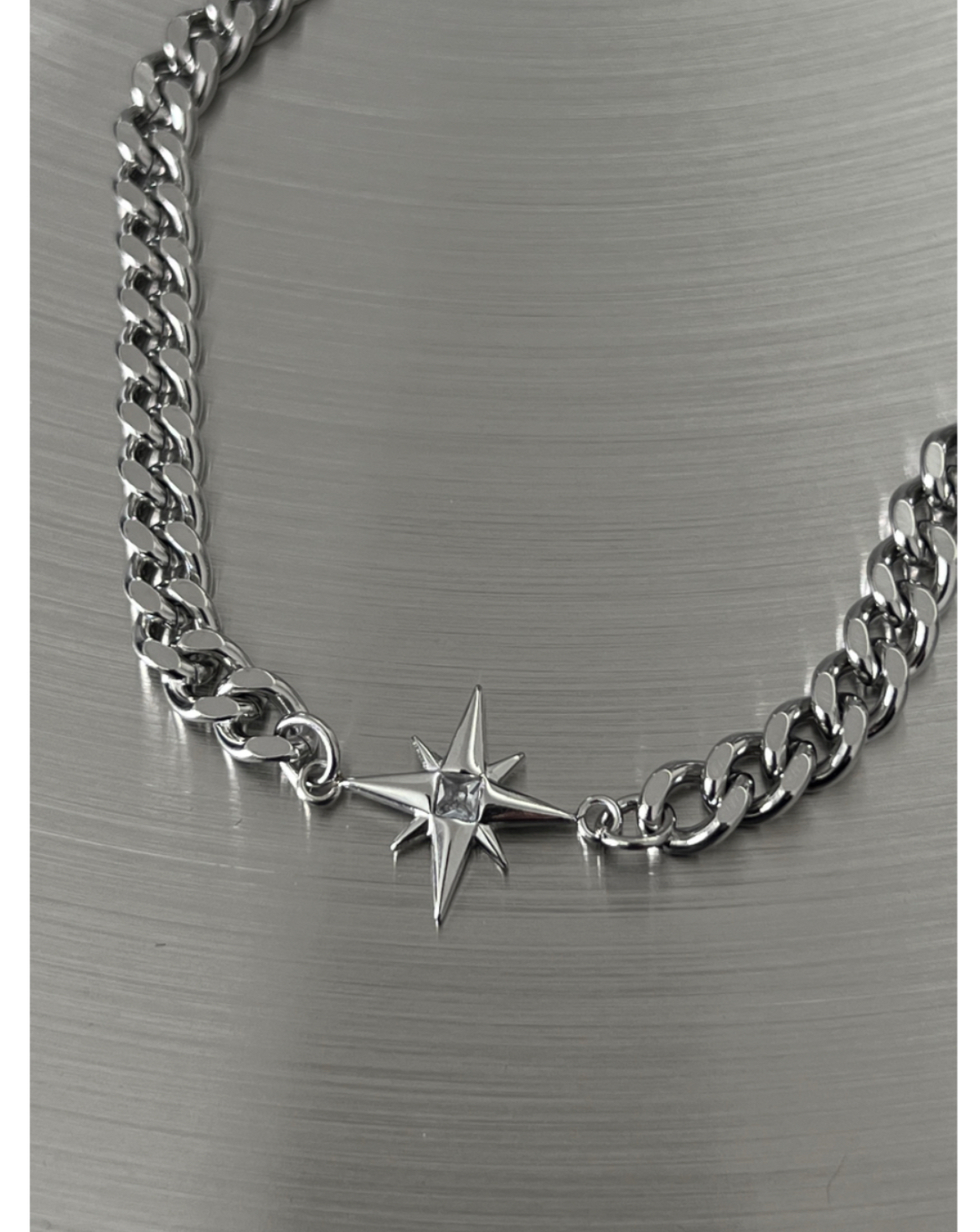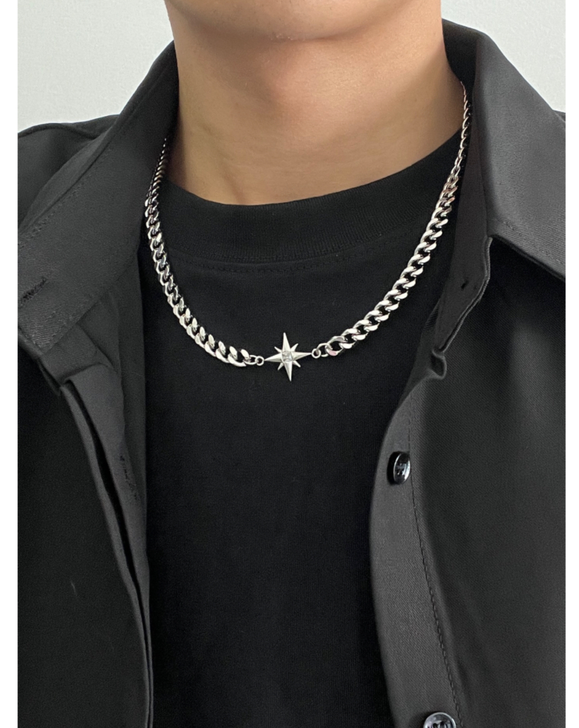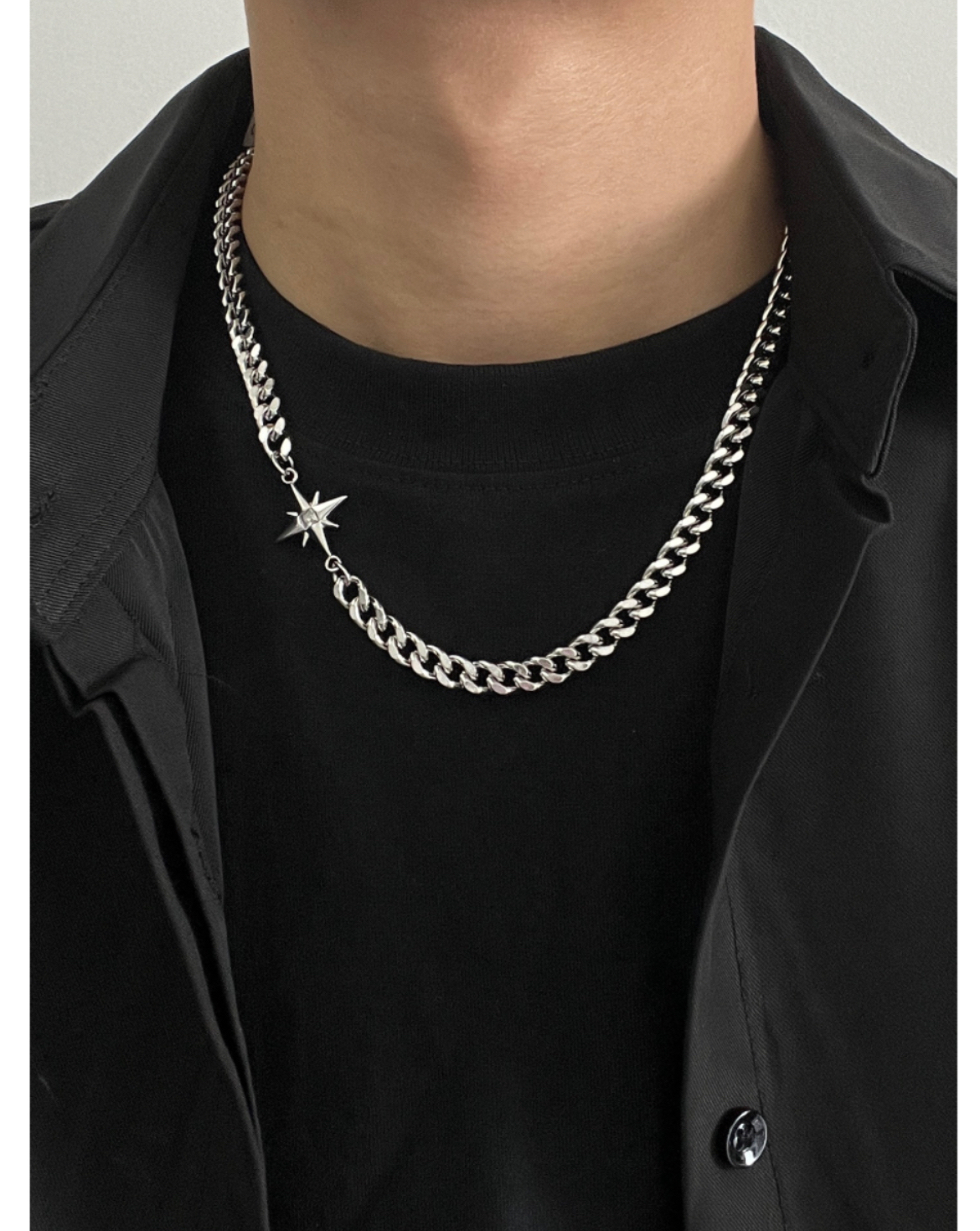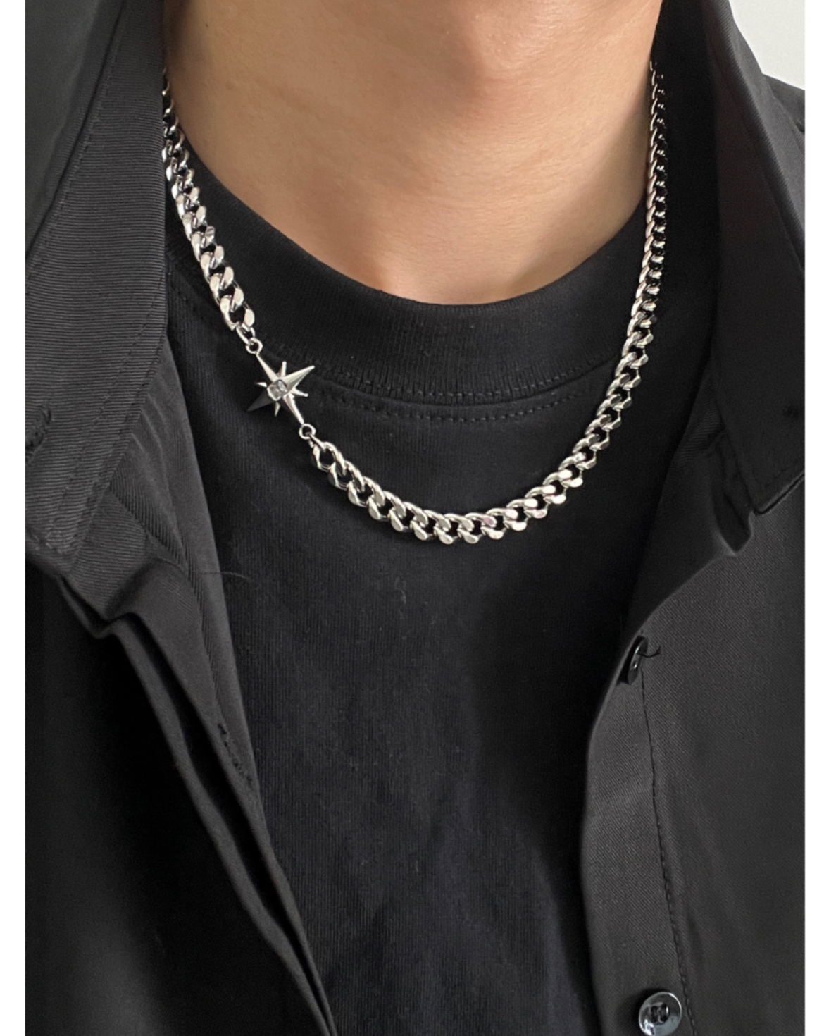 Starburst Cuban Chain Titanium Steel Necklace WN19251