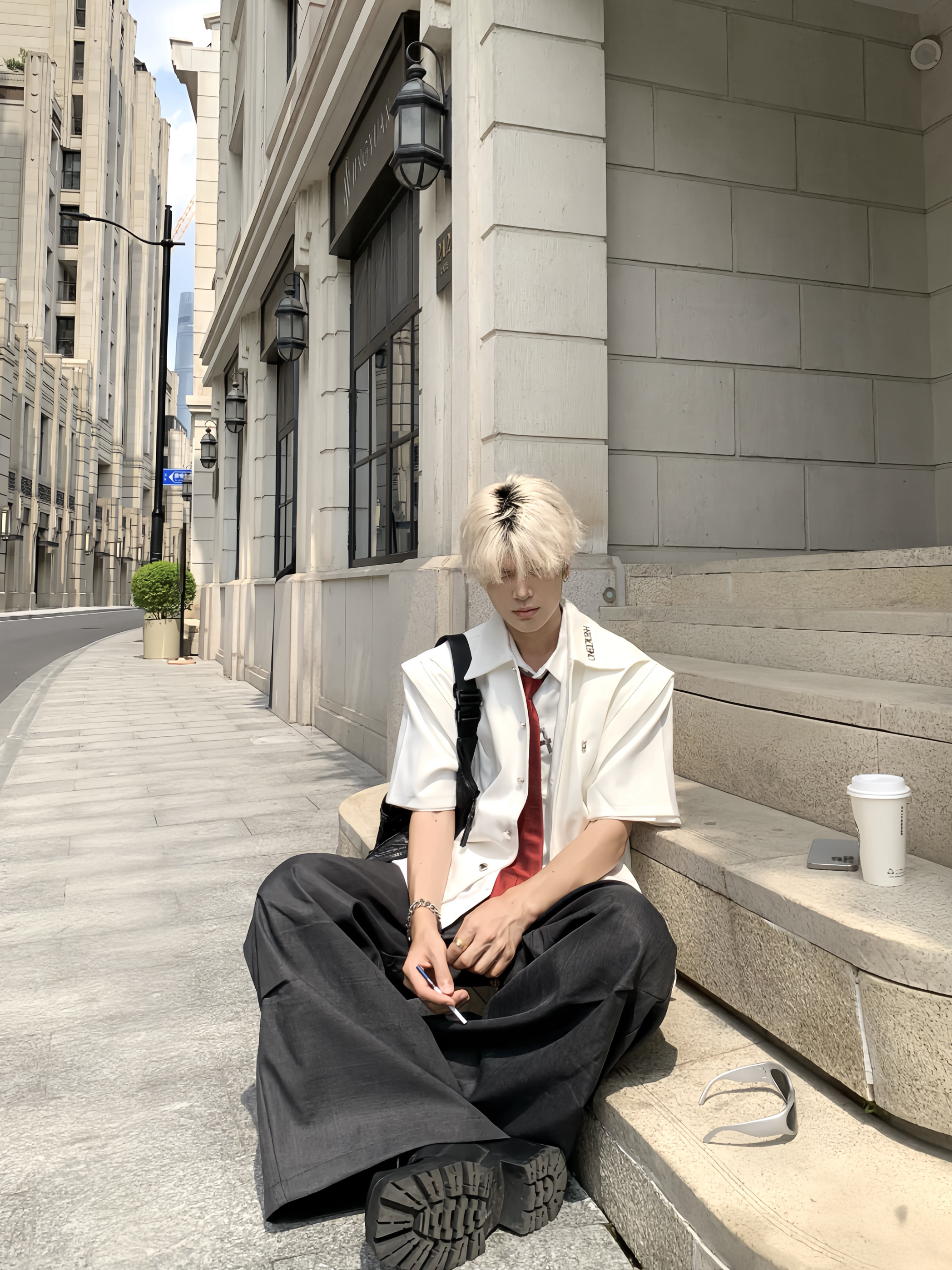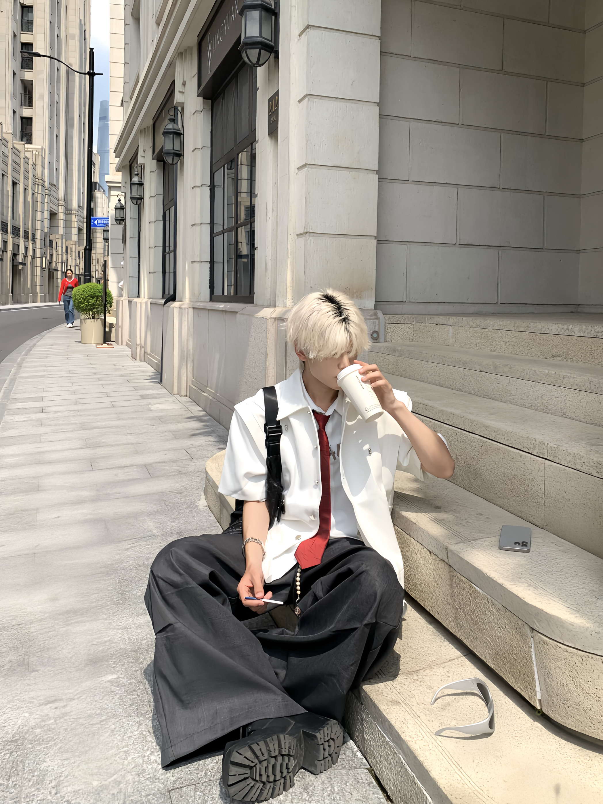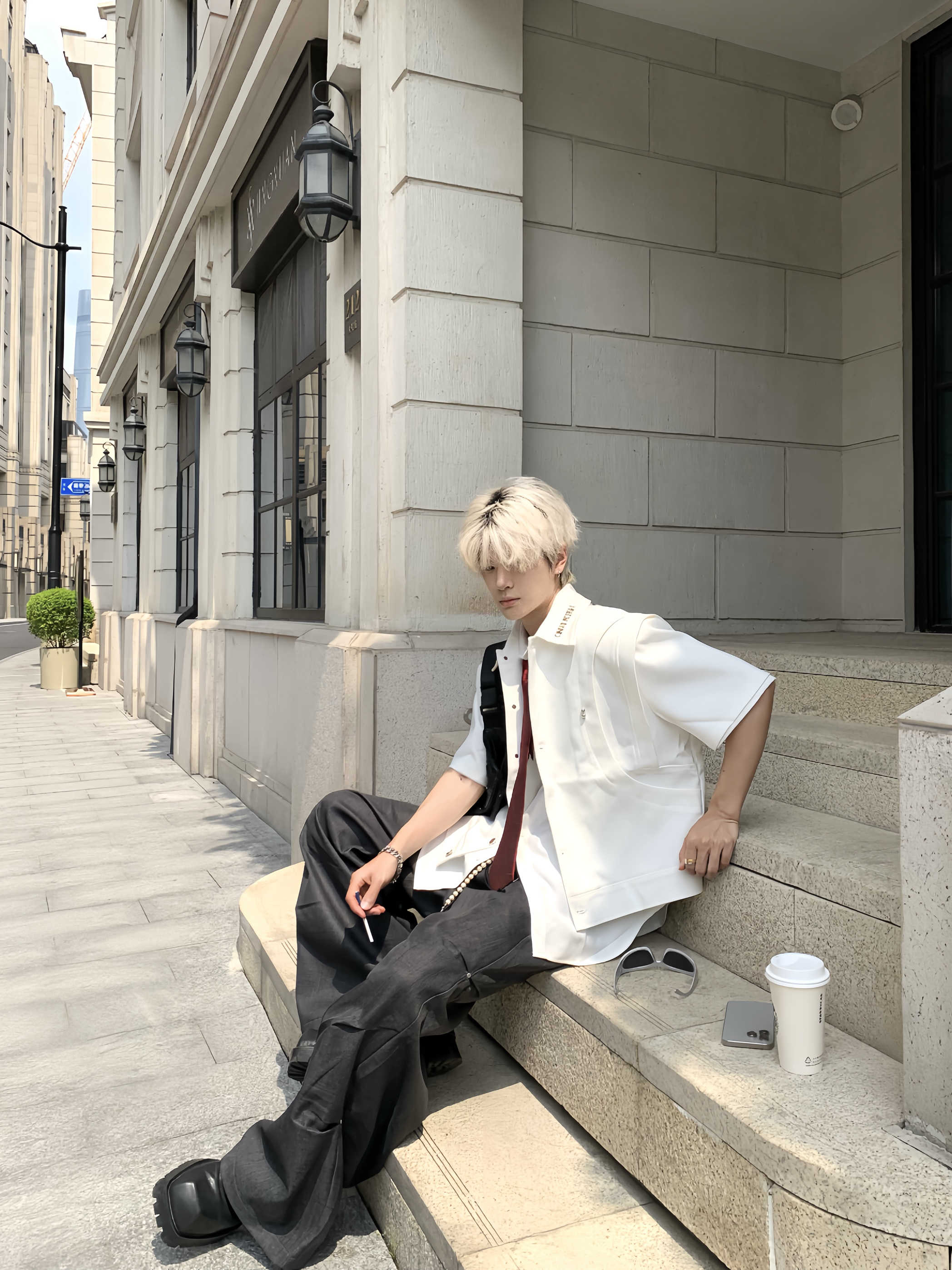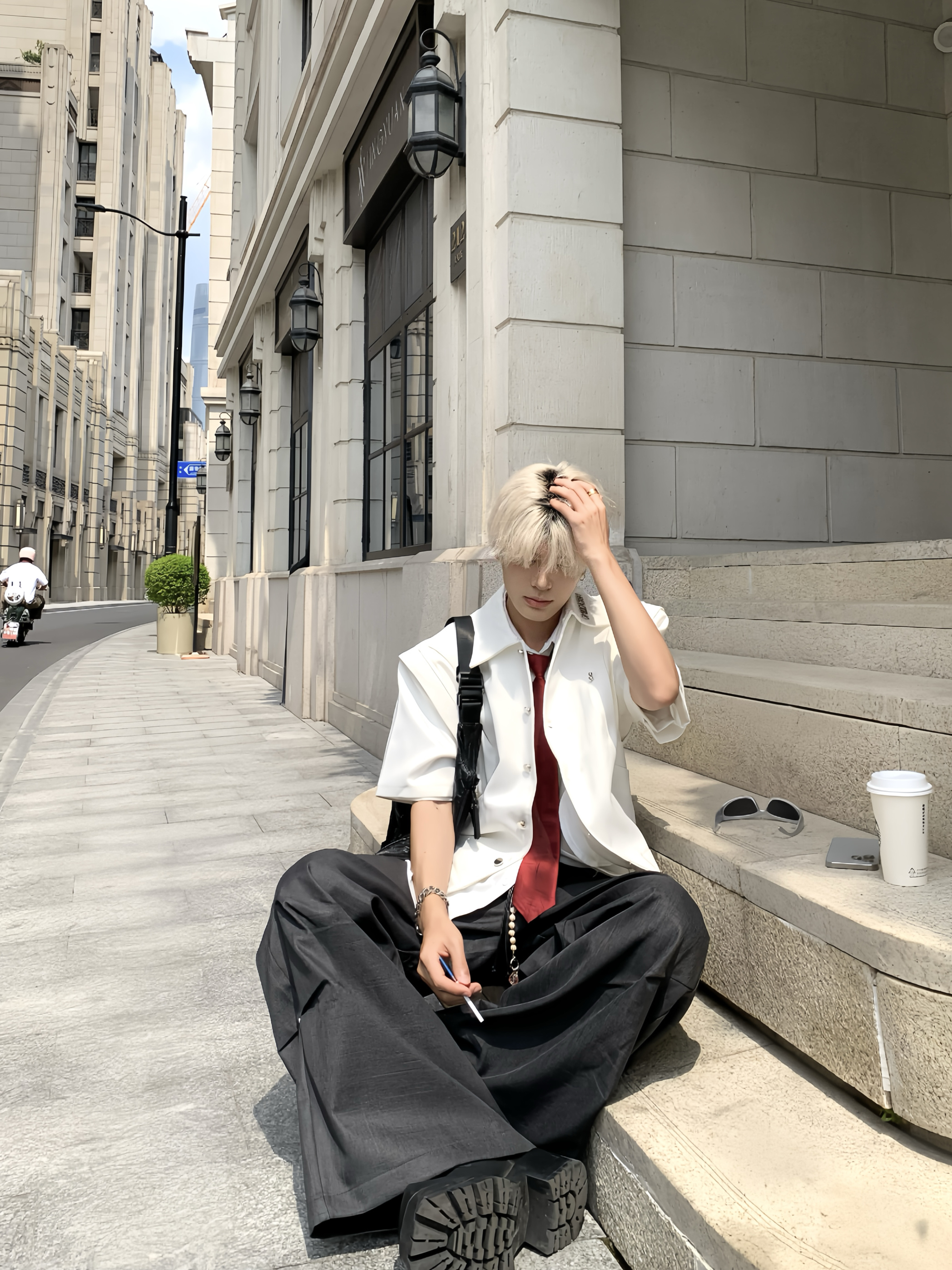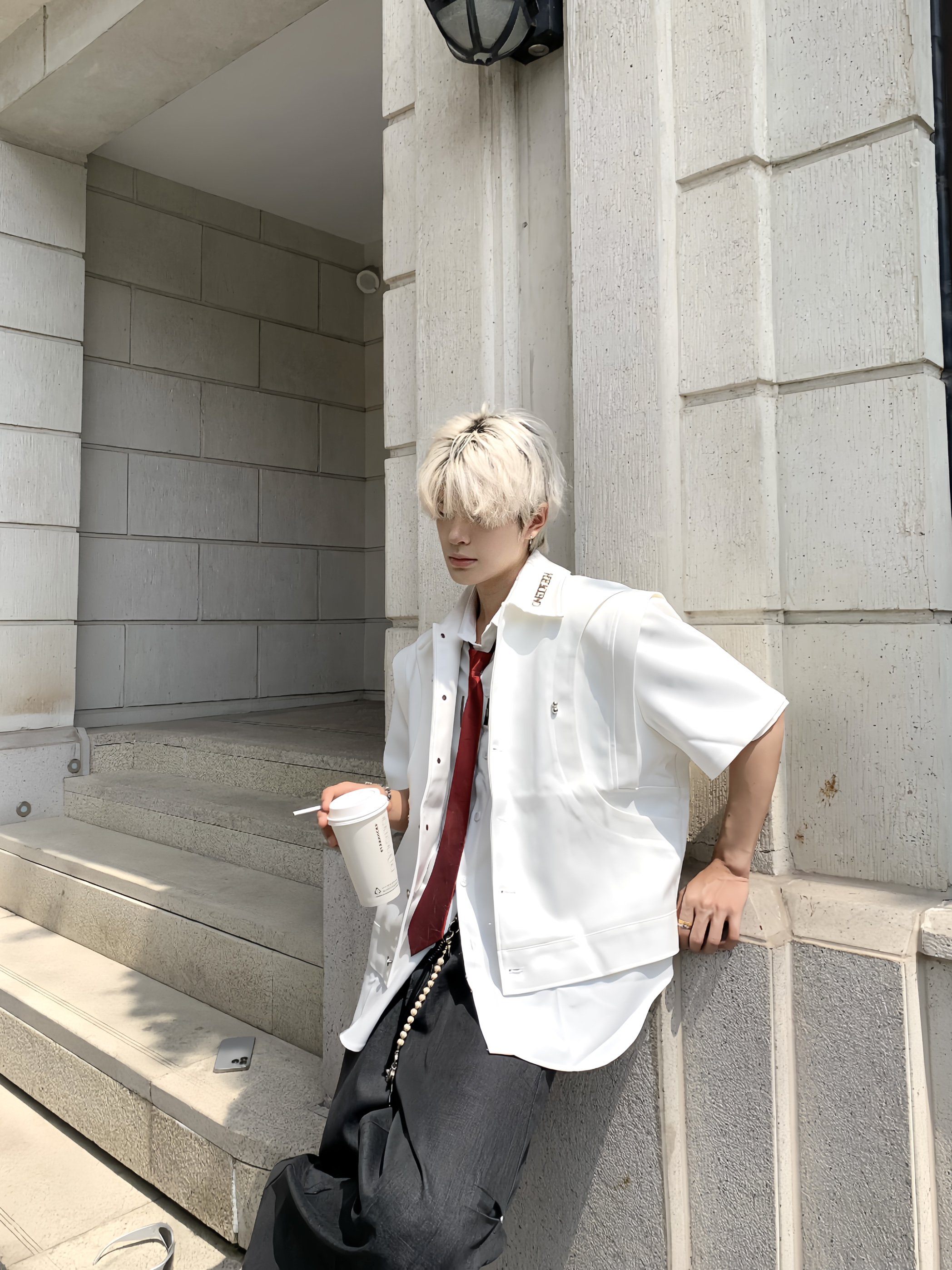 Double-Layer Stand-Collar Long & Short Sleeve Shirt WN19725
