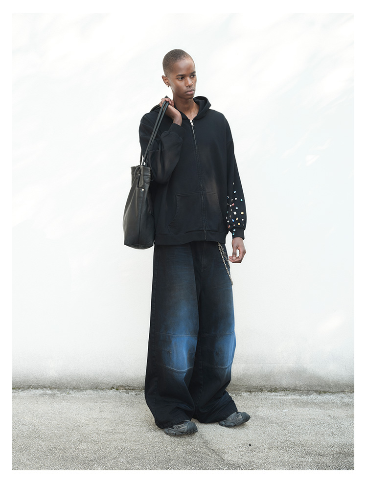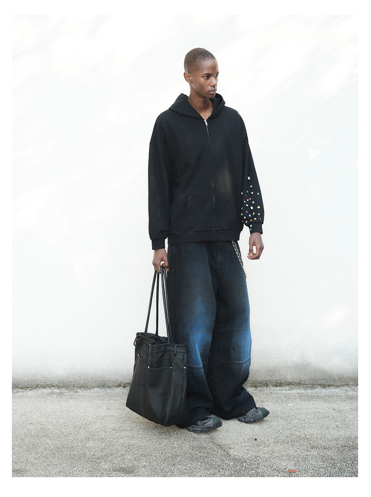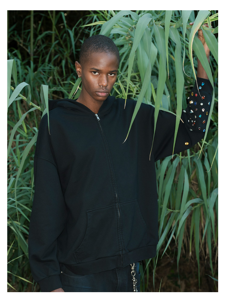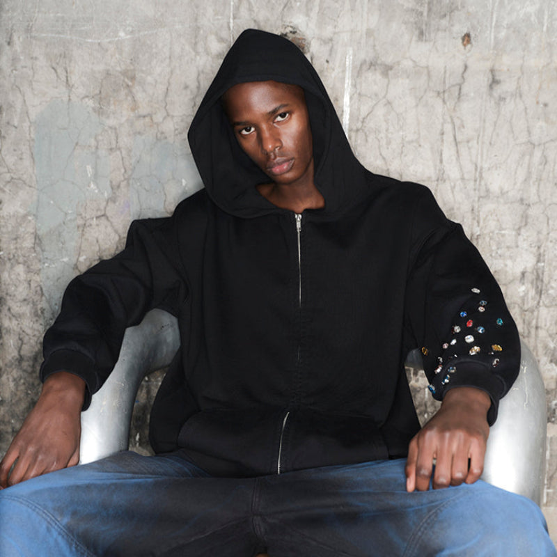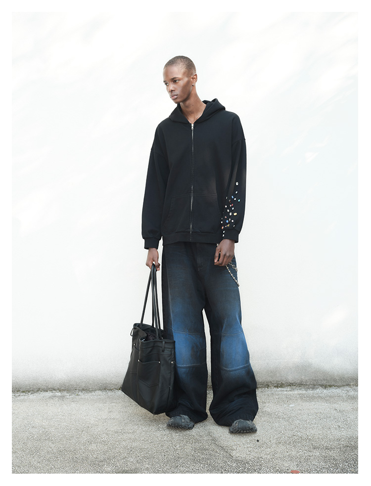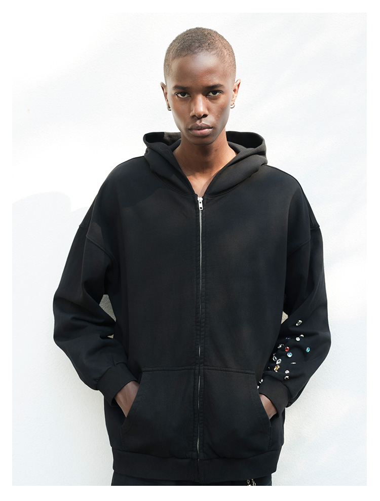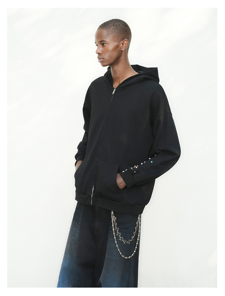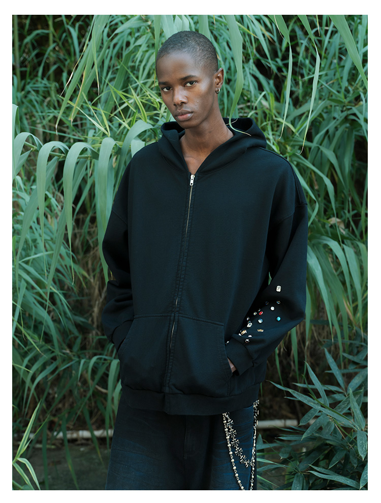Gem Decoration Oversize Zipper Hoodie WN21281