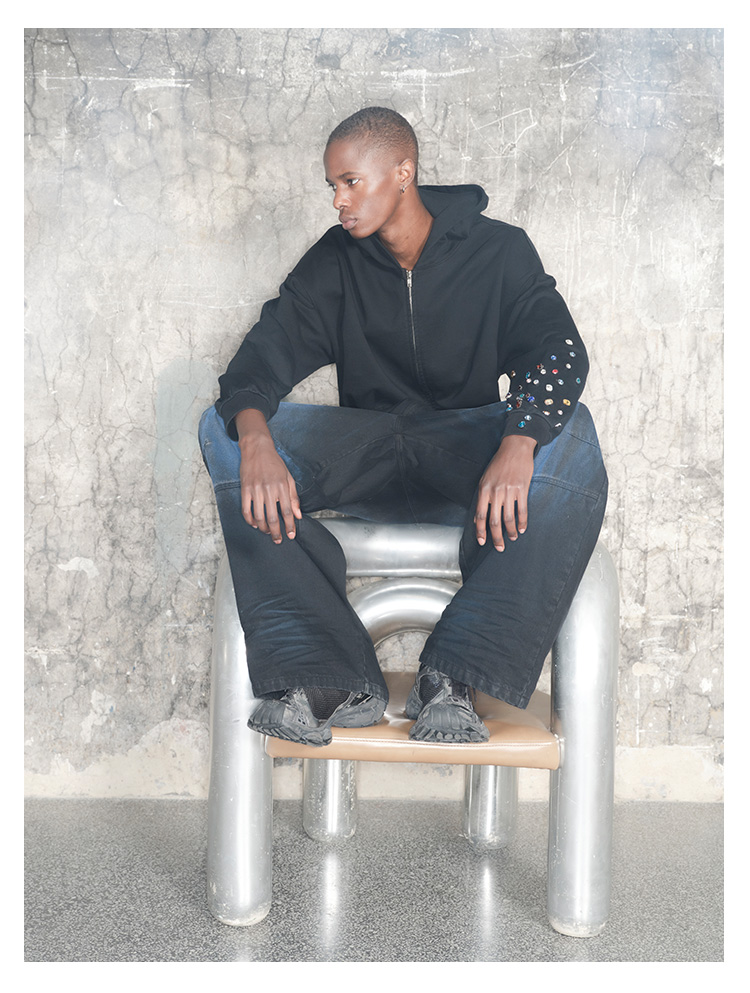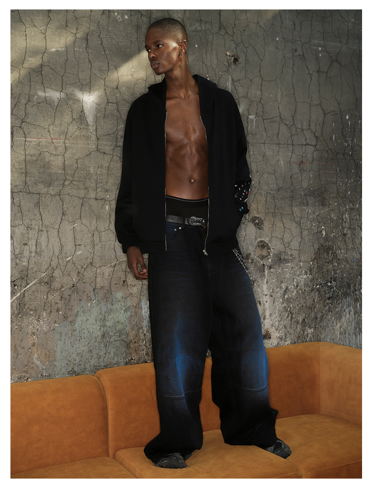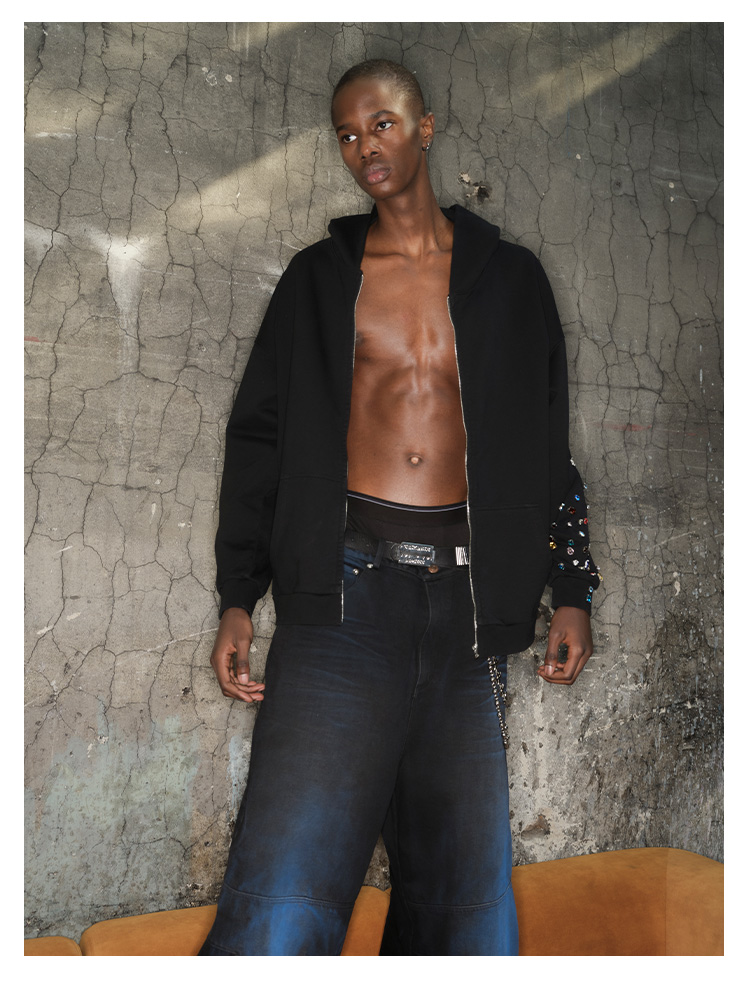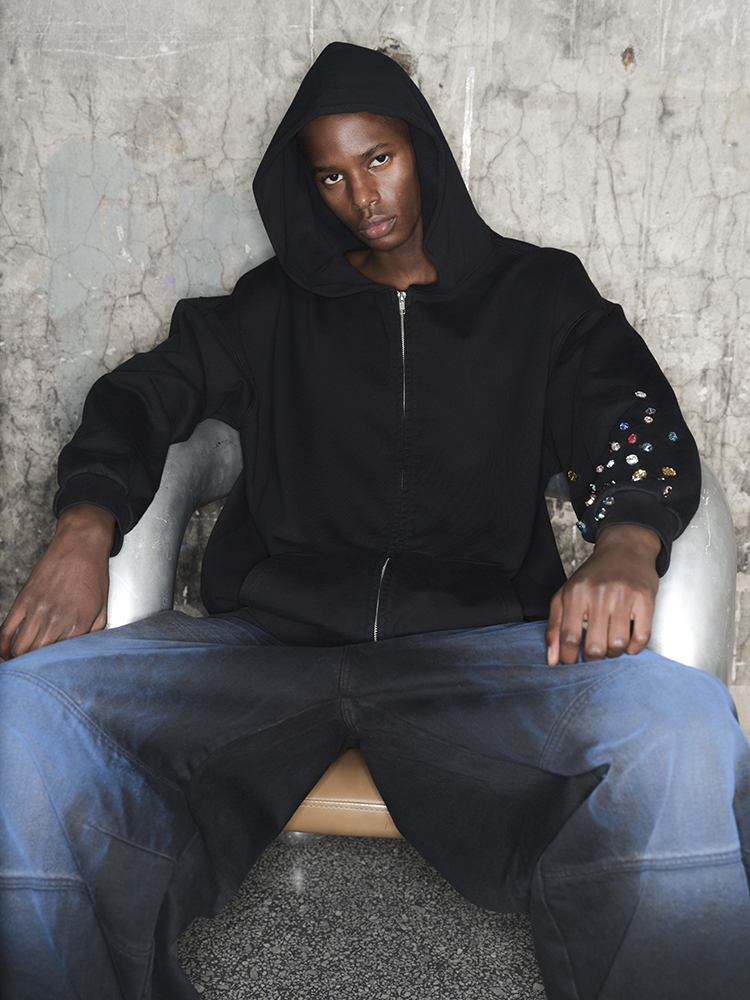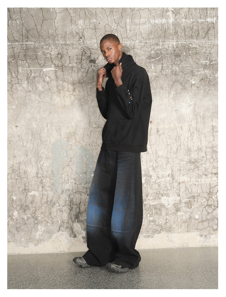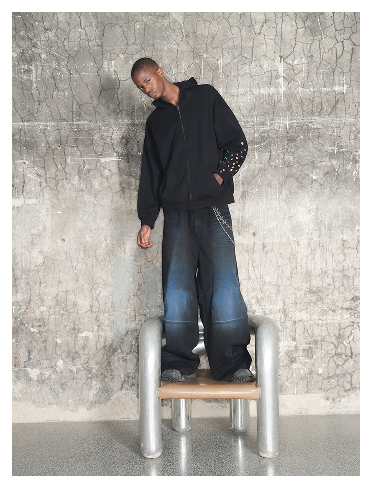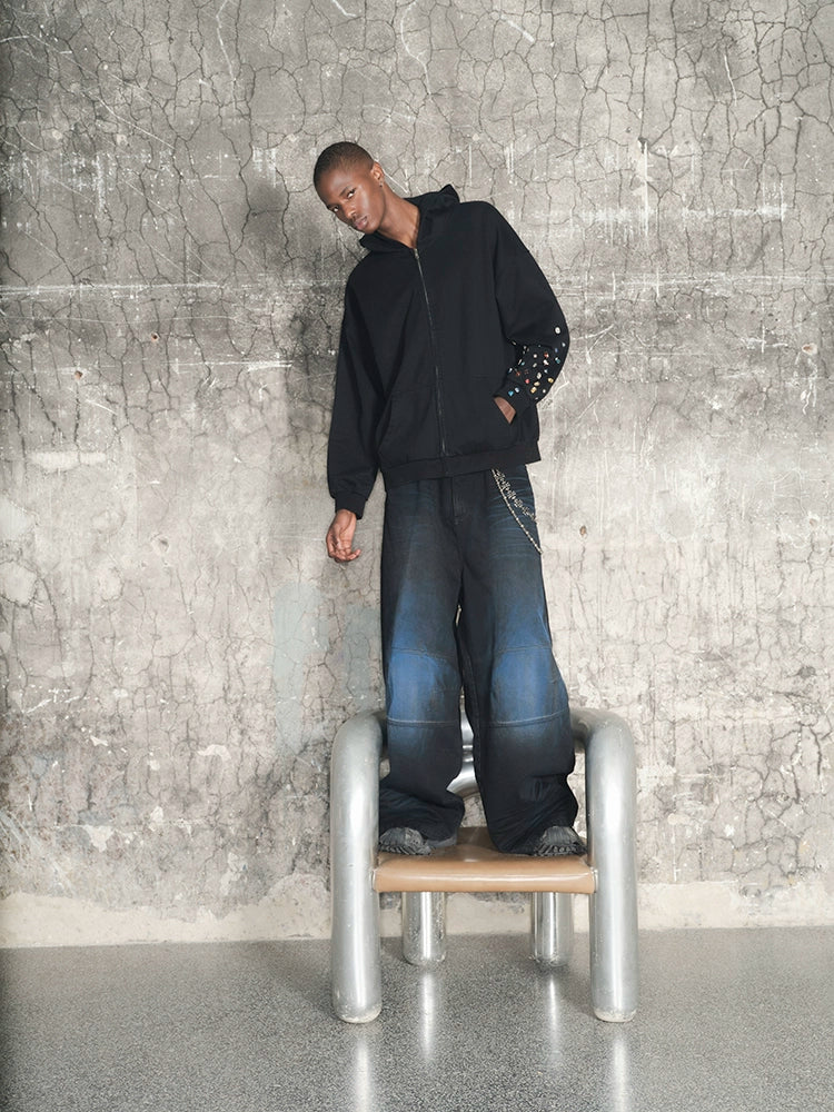 Gem Decoration Oversize Zipper Hoodie WN21281