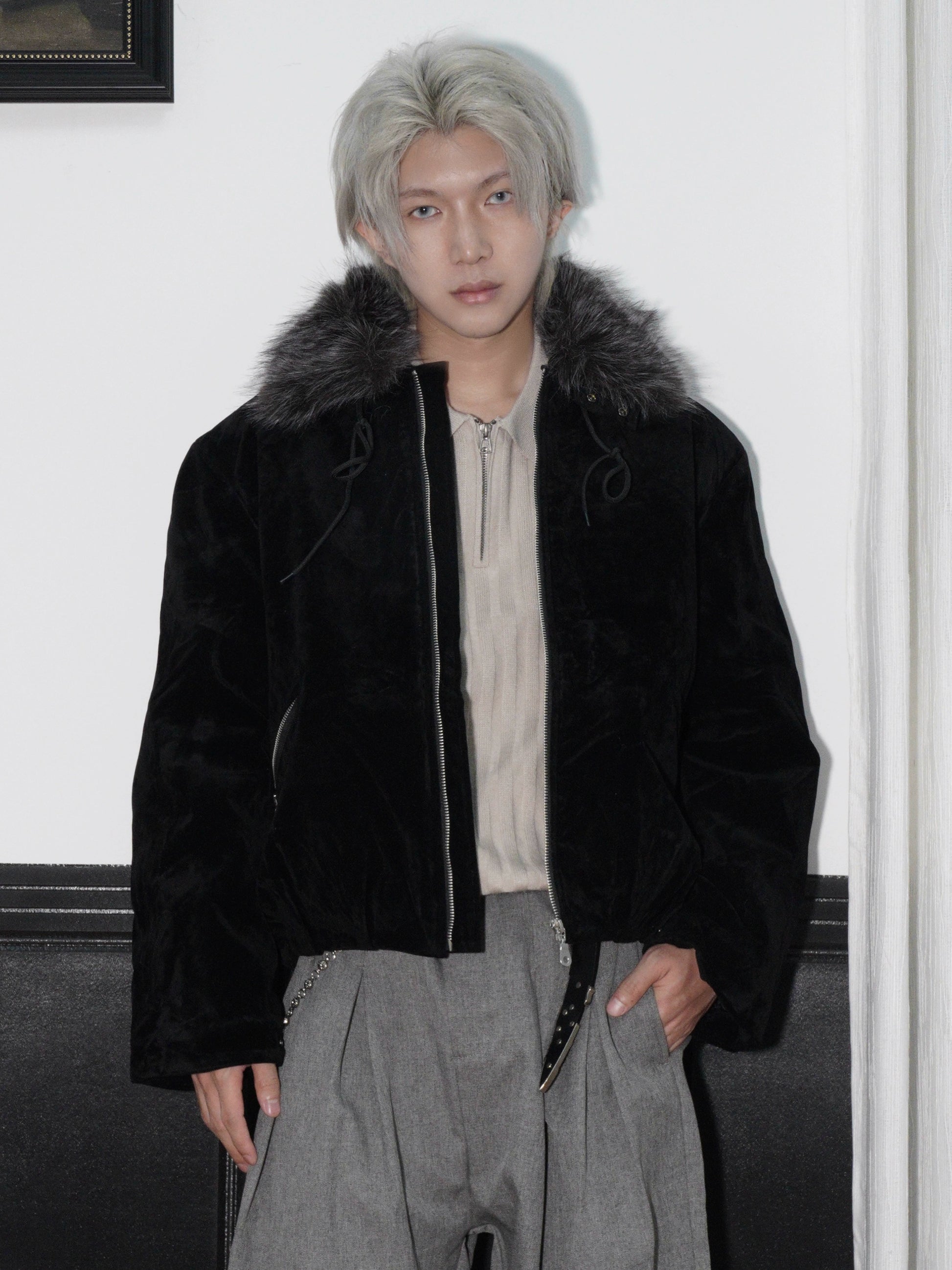 Detachable Fake Fur-Collar Suede Zipper Jacket WN22170