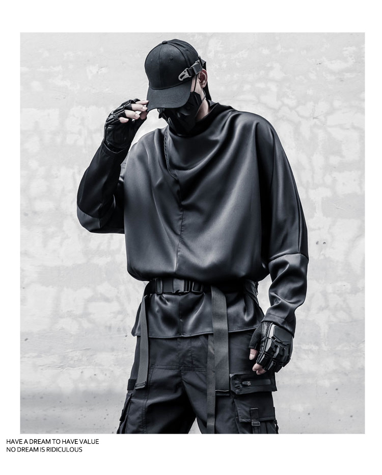 High-Neck Batwing Long Sleeve T-Shirt WN22320