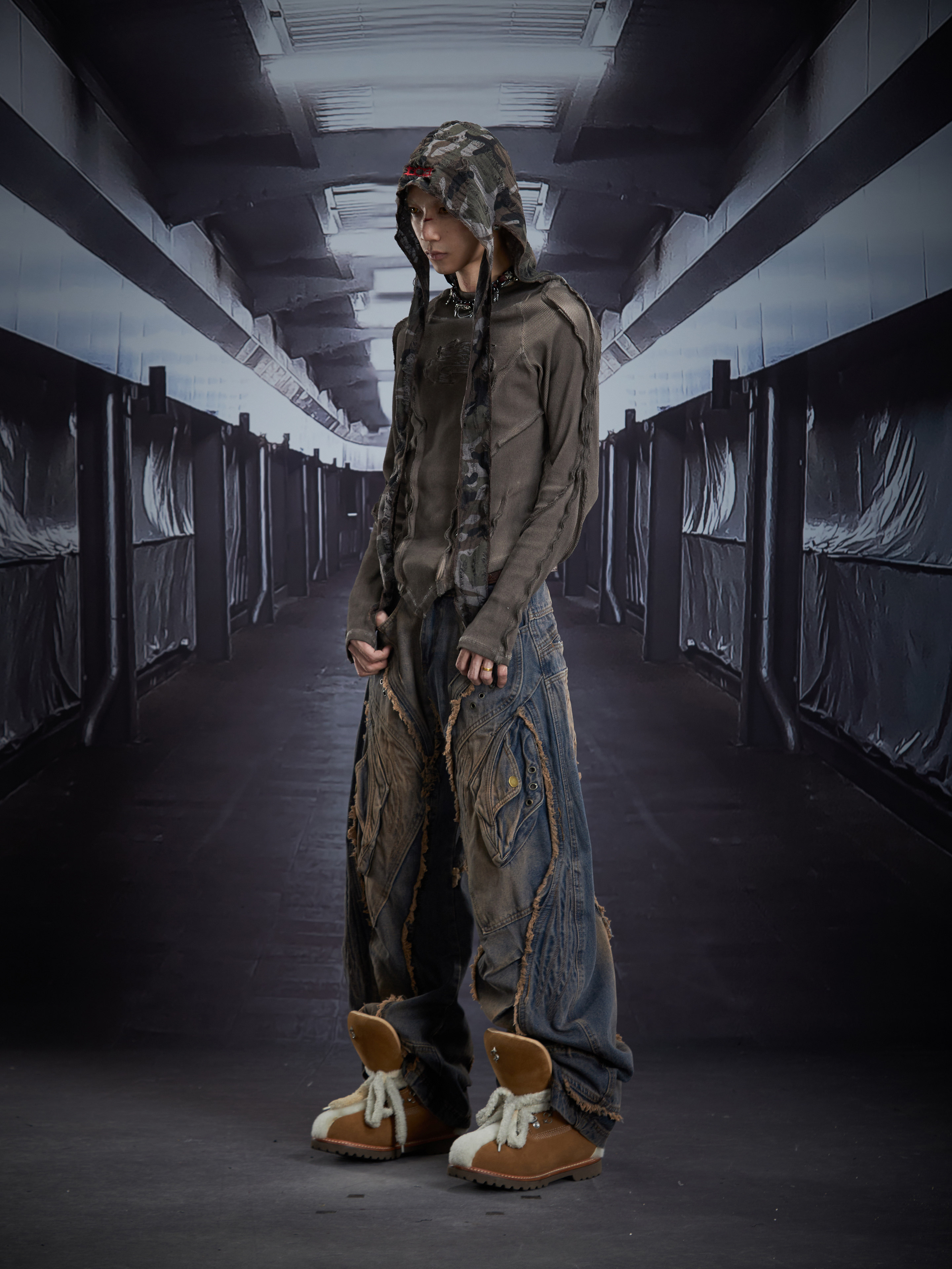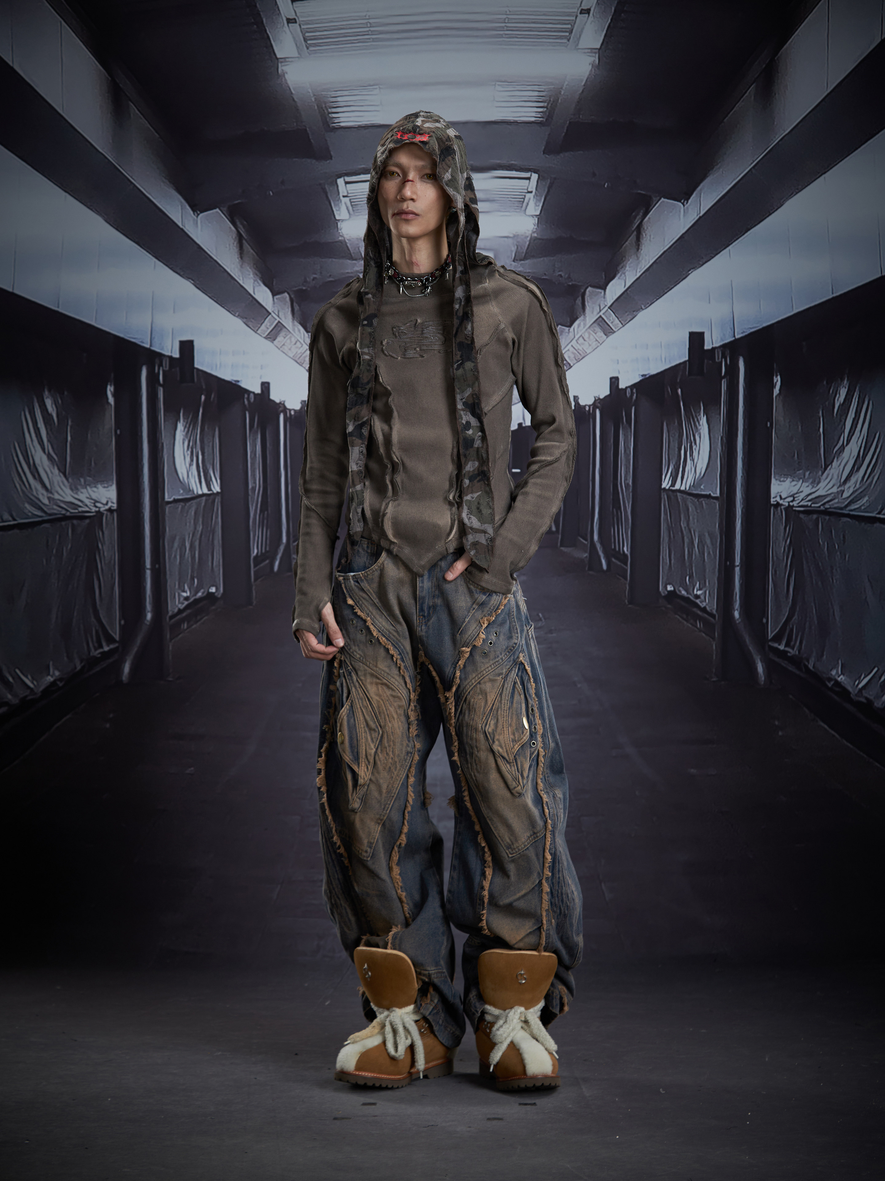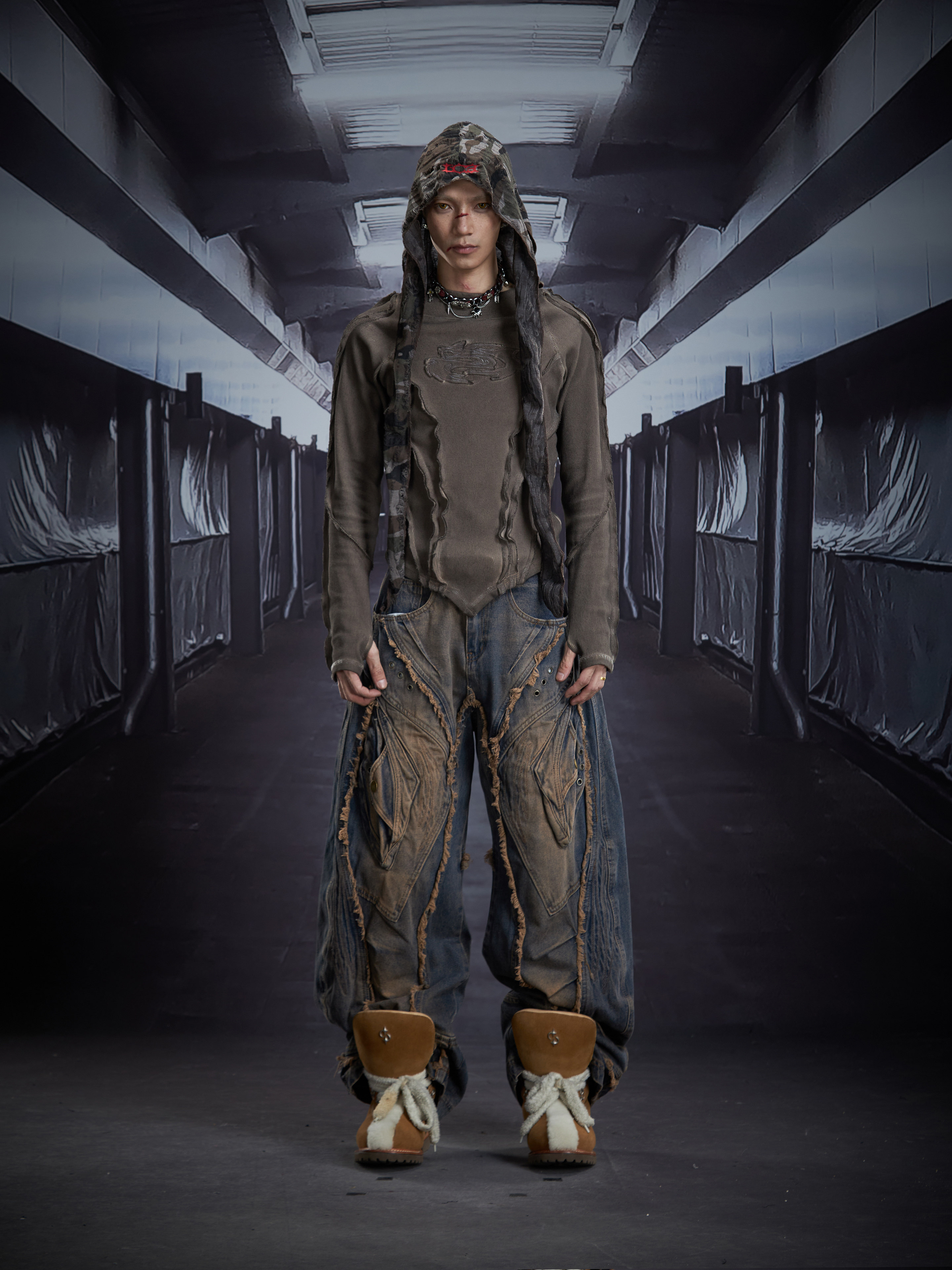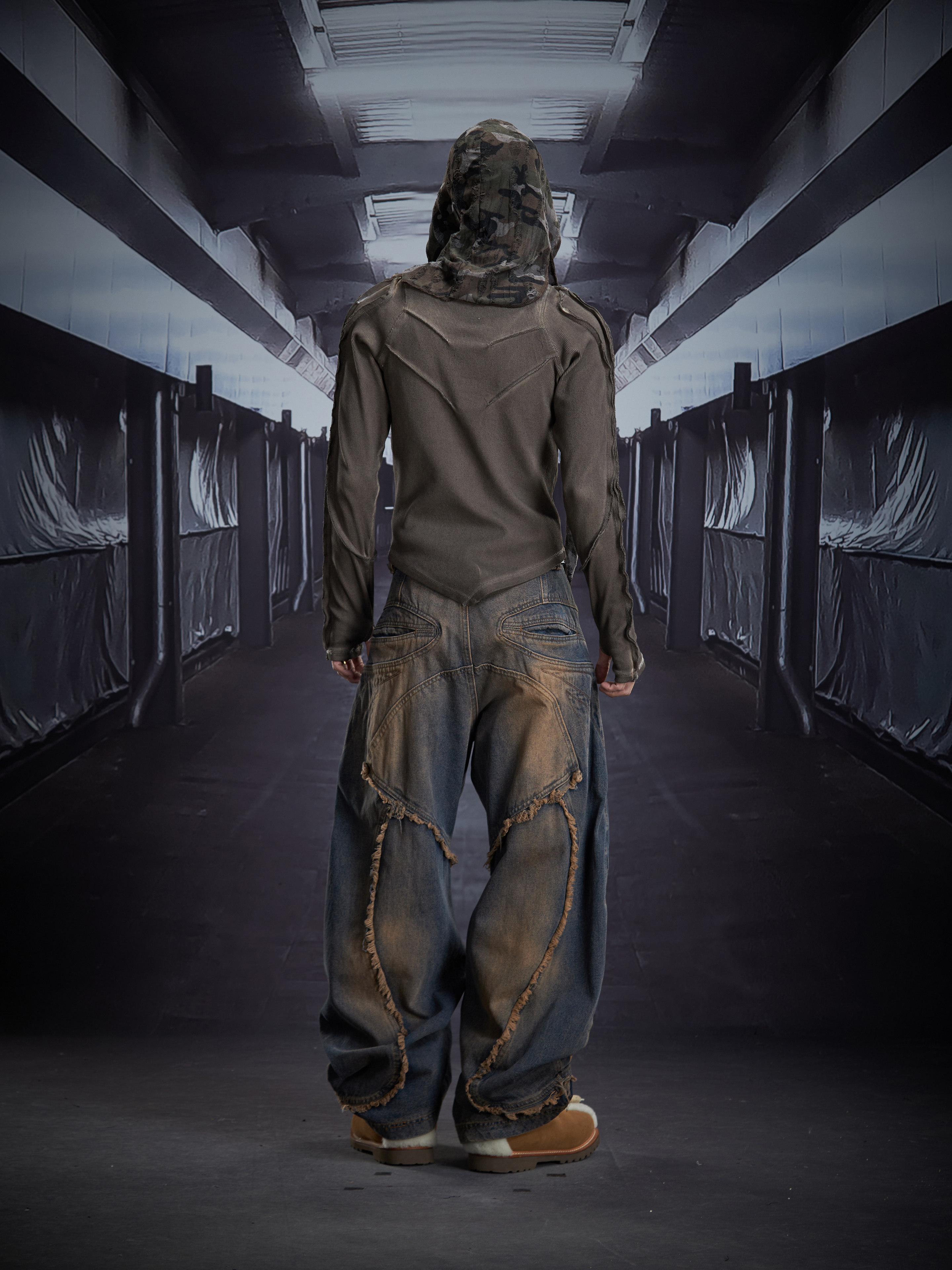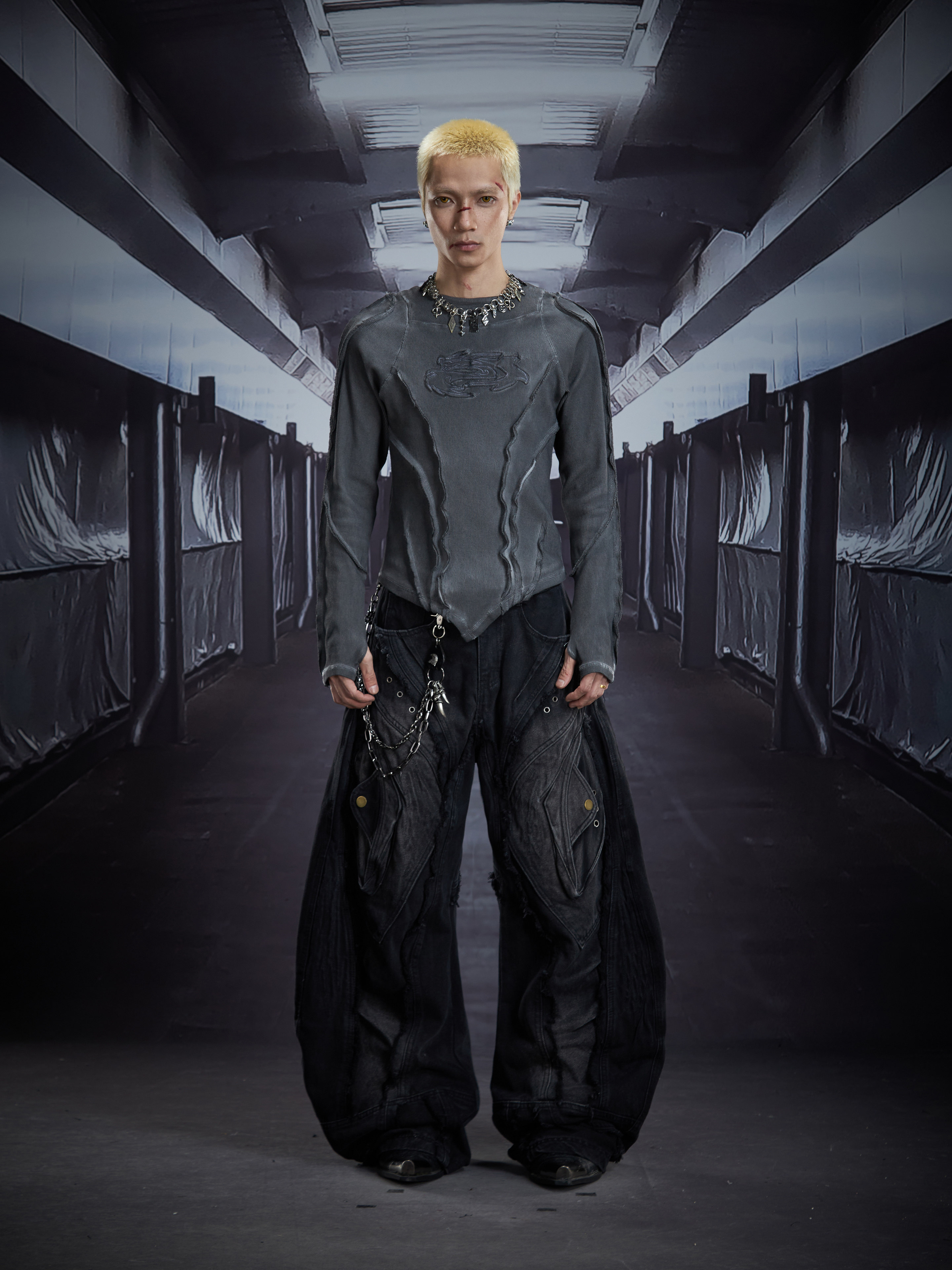 Deconstruct V-Hem Wash Damage High Elastic Long Sleeve T-Shirt WN22876