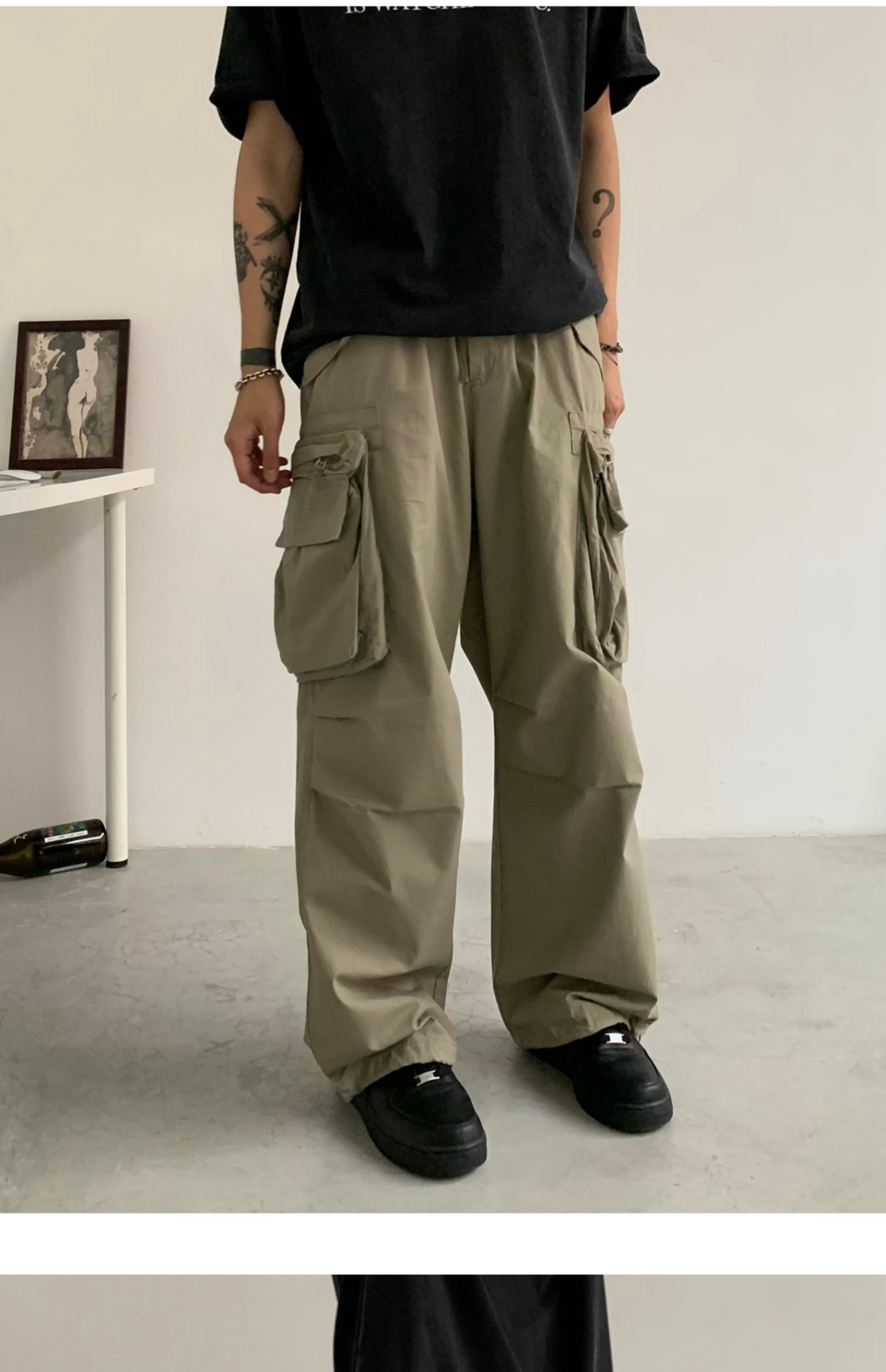 Wide-leg Straight Cargo Pants WN4731