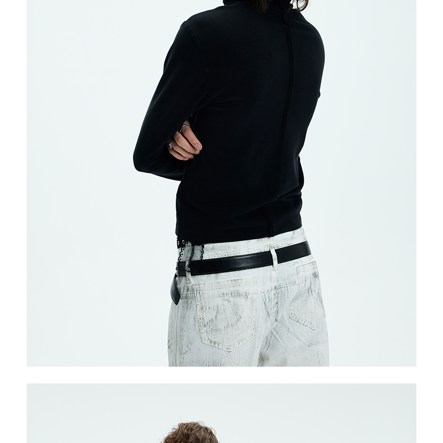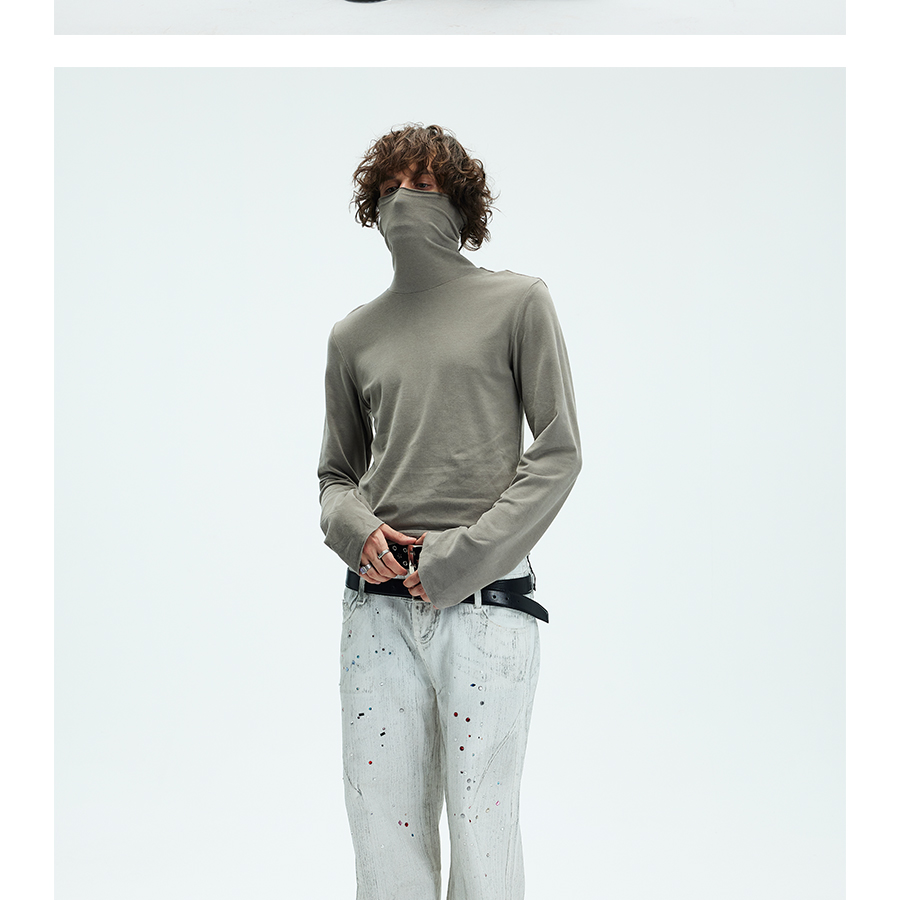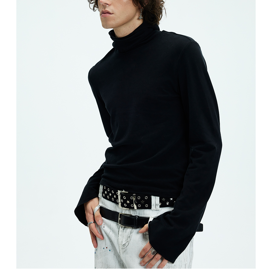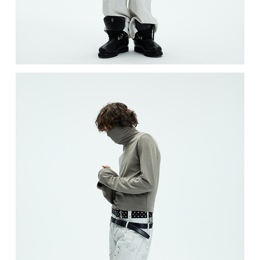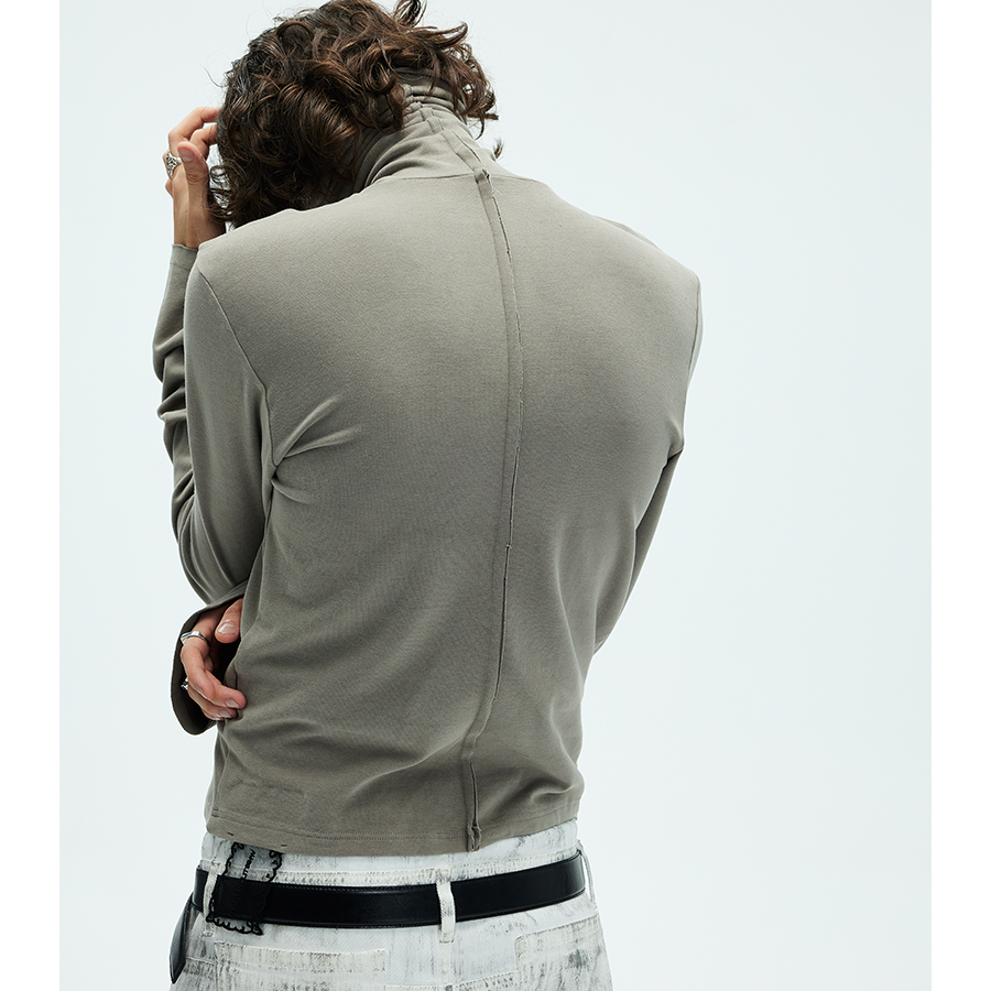 Stand Neck Skin Friendly Suede Tight Fitting Long Sleeve T-Shirt WN9070