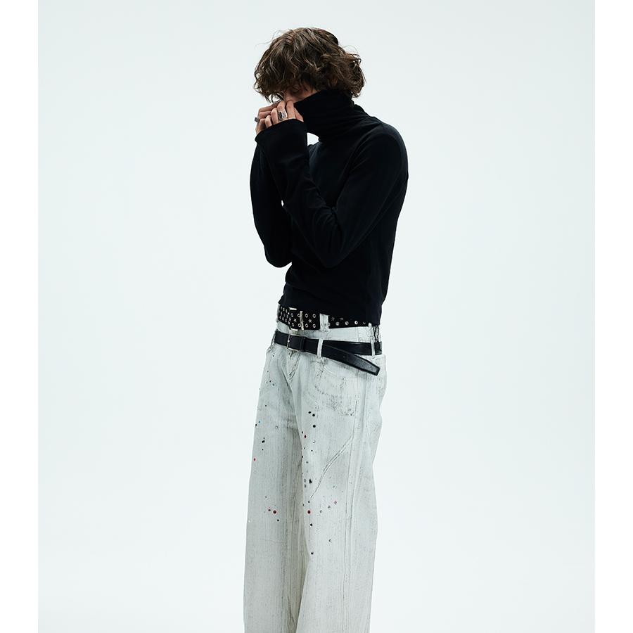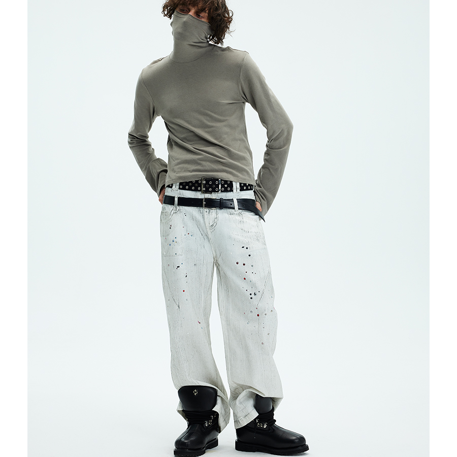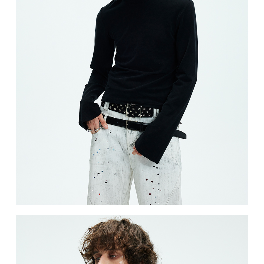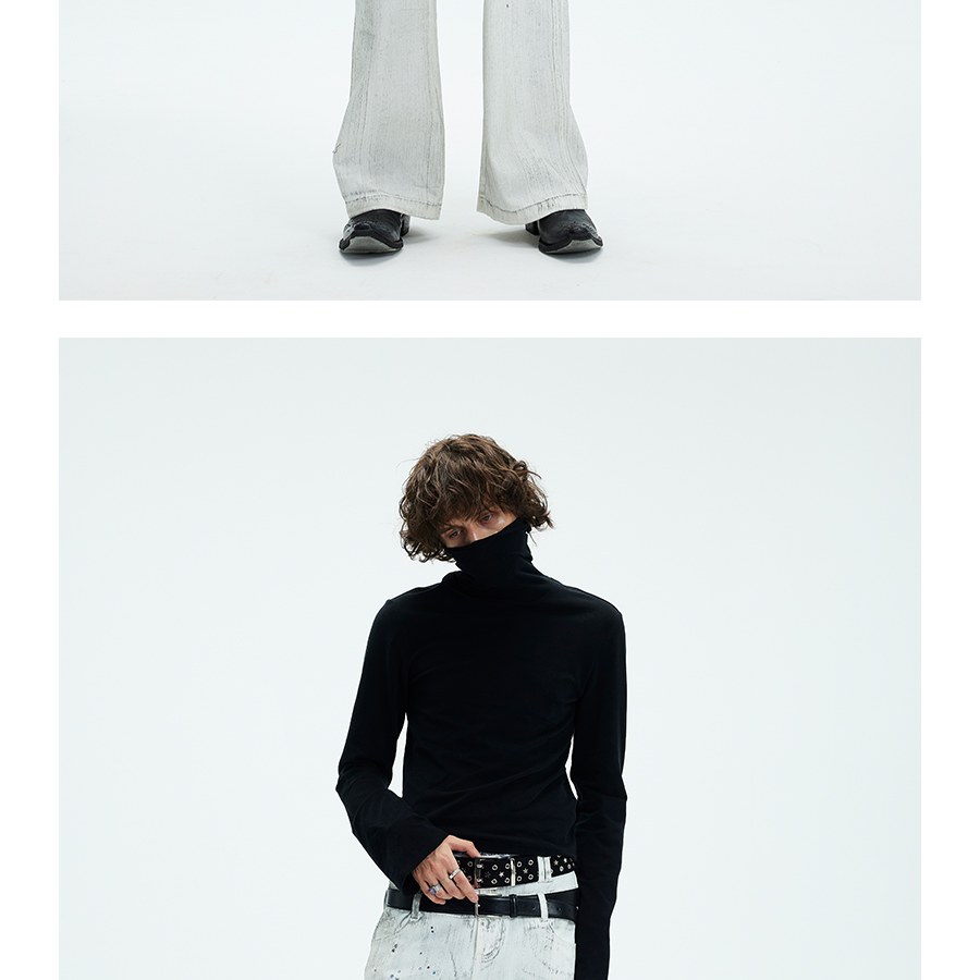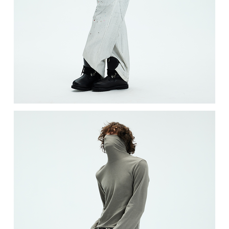 Stand Neck Skin Friendly Suede Tight Fitting Long Sleeve T-Shirt WN9070