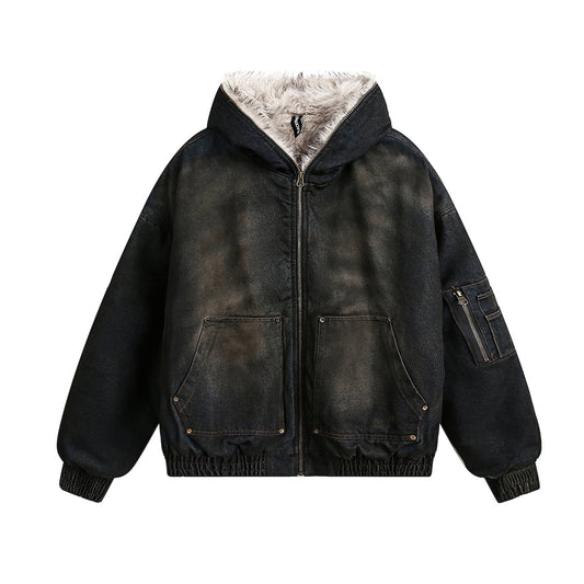 Washed Denim Sherpa-Lining Padded Jacket WN11357