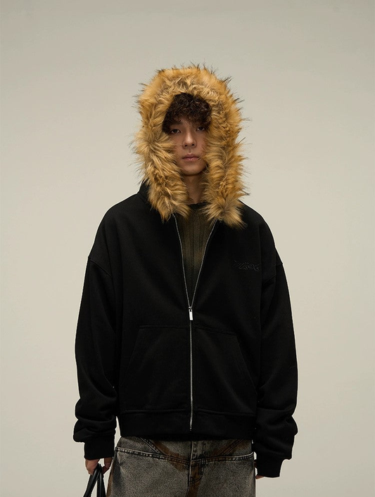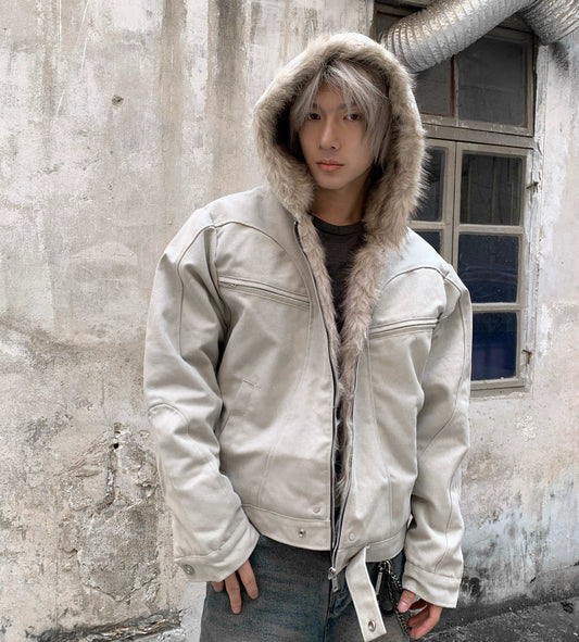 Hooded Fake Fur Plush Padded Jacket WN22191