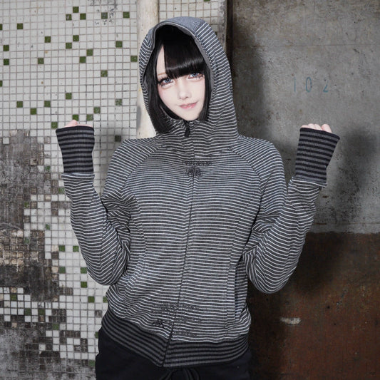 Embroidery Stripe Colorblock Zipper Hoodie WN22190