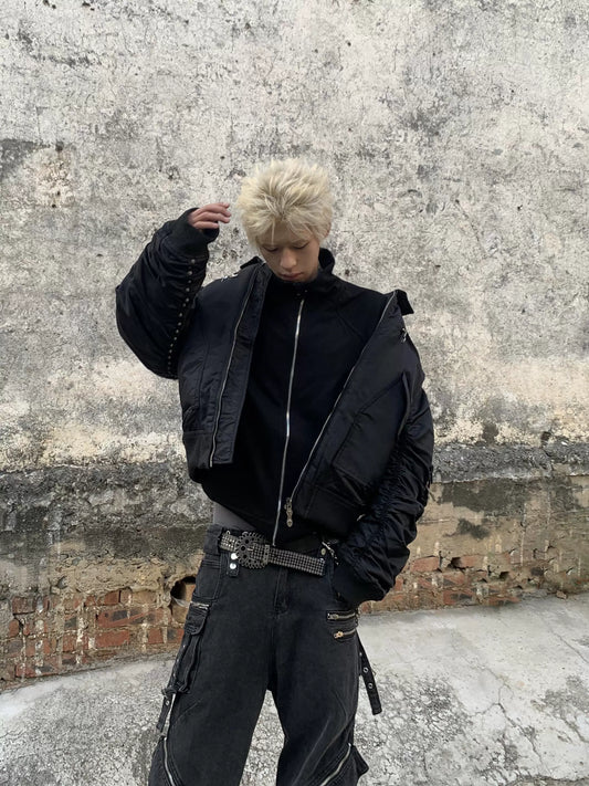 Fake Fur-Collar Rivet Zipper Bomber Jacket WN22206