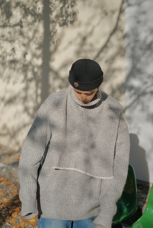 Turtleneck Knit Vest & Oversize Knit Sweater WN10021