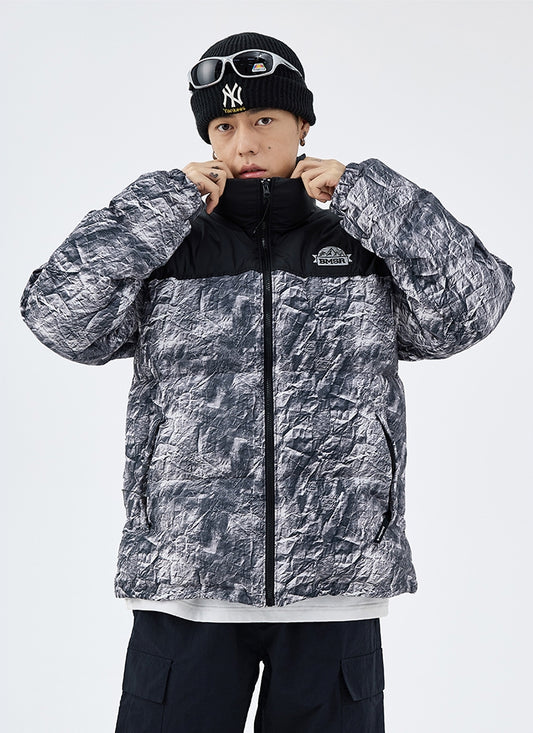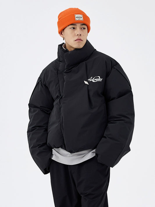 Embroidery Panel Stand Neck Puffer Jacket WN8603