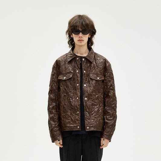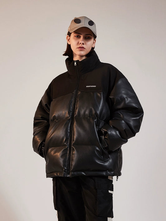 Stand Neck Thickened PU Leather PufferJacket WN8596