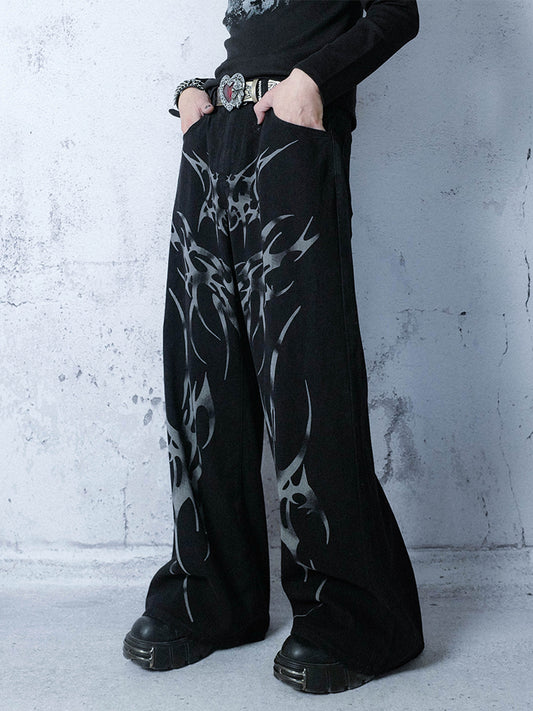 Draping Feel Graphic Design Wide Leg Denim Jeans WN15987