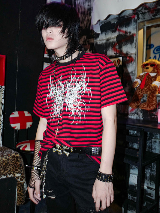 Graphic Design Stripe Short Sleeve T-Shirt WN15960
