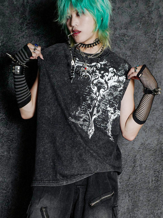 Graphic Print Sleeveless T-Shirt WN16001