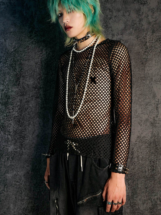 Mesh Fabric Layering Style Long Sleeve T-Shirt WN15999