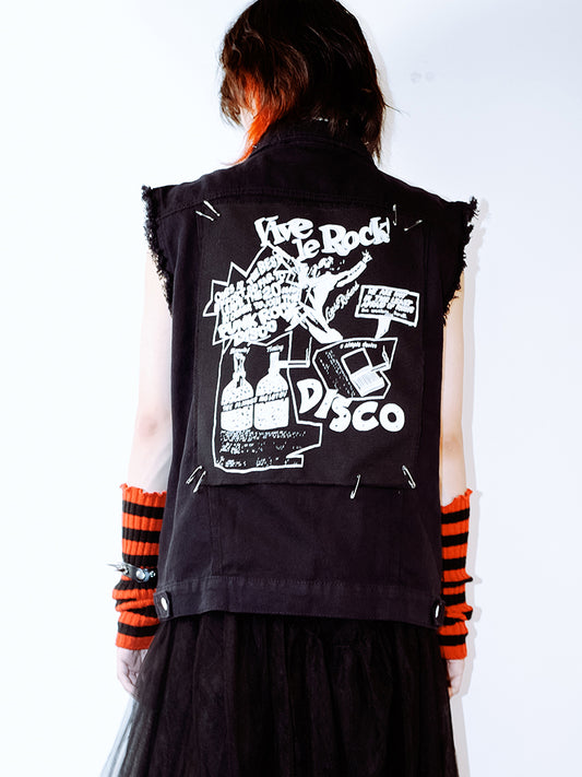 Graphic Design Metal Detail Sleeveless Denim Jacket WN15992