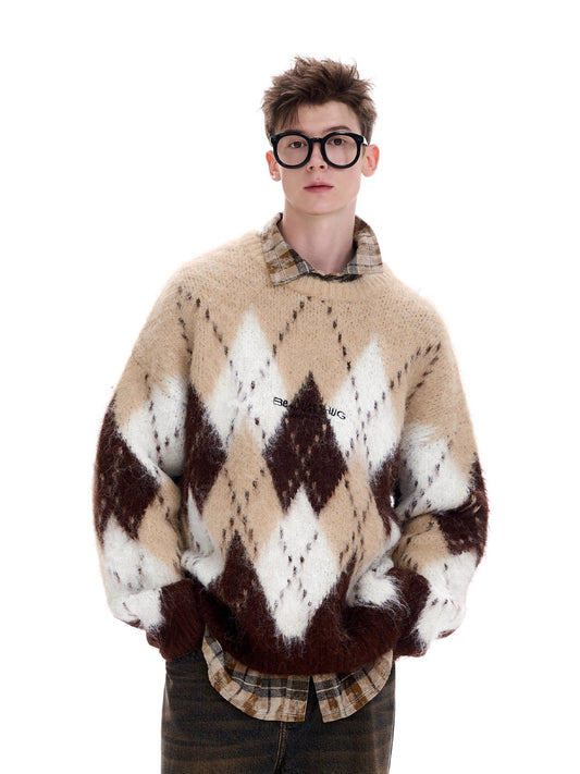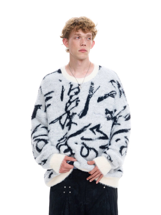 Fake Fur Jacquard Round Neck Knit Sweater WN9850