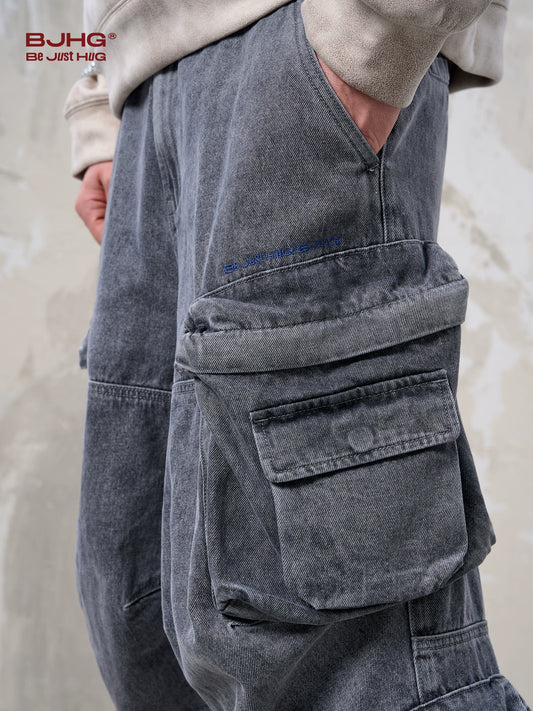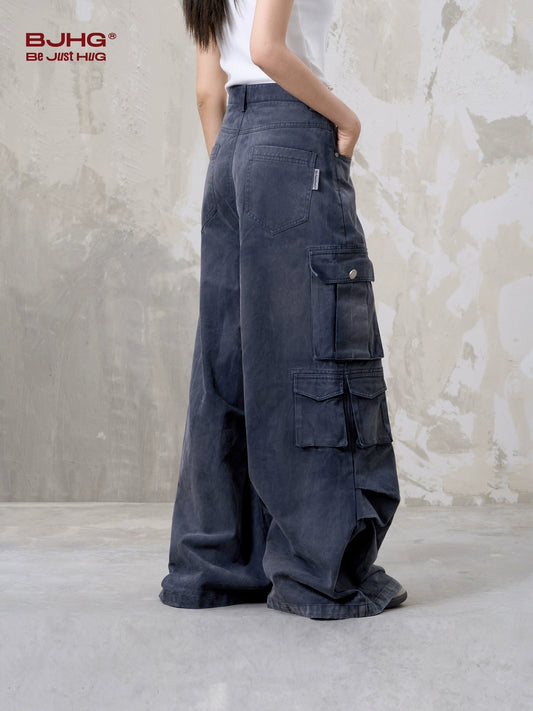 Washed Wide-Leg Multi-Pocket Cargo Pants WN13202