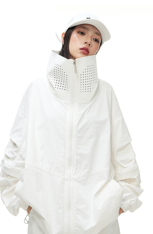 High-neck Detachable Sleeve Sporty Jacket & Wide Leg Sporty Cargo Pants Setup WN9716