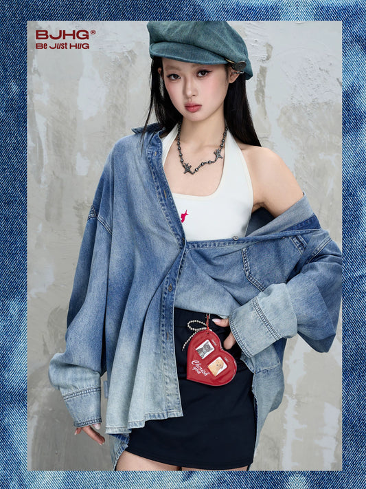 Washed Wide-Leg Cargo Denim Jeans WN13201