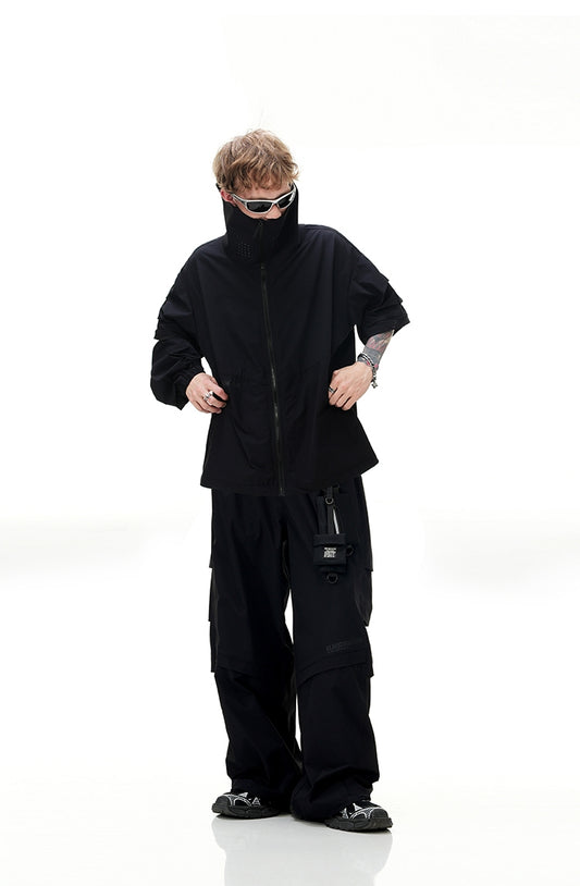 High-neck Detachable Sleeve Sporty Jacket & Wide Leg Sporty Cargo Pants Setup WN9716-K