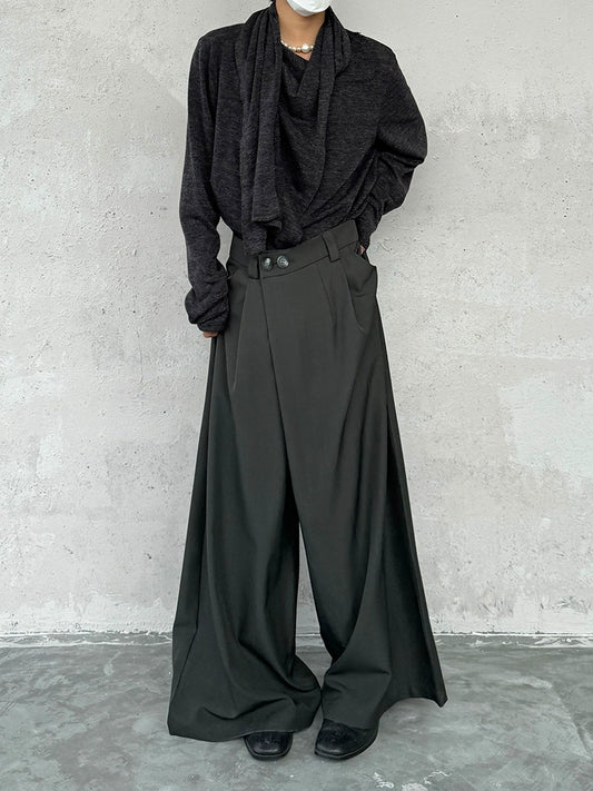 Draped Fake Layered Wide Leg Cropped Trousers WN22402